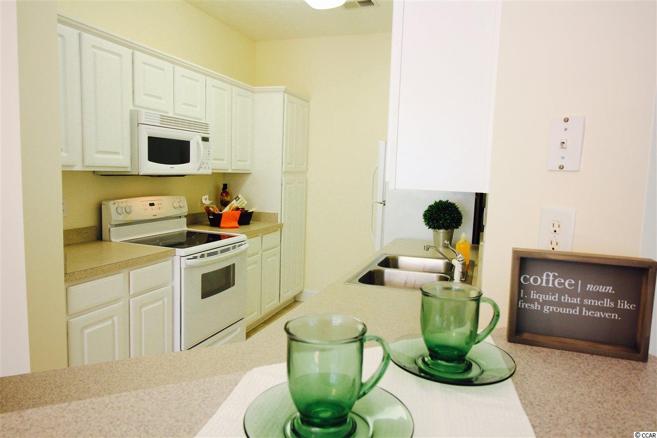 Three bedrooms, two baths, spacious, open and updated. Top floor, corner condo with vaulted ceilings, extra windows and quiet with no one over you! Bright and cheery, immaculately kept with wood floors in dining/great room. Master bedroom has his and hers closets and a spacious master bath with garden tub and vanity. Private and relaxing views from your large screened porch. All window treatments and appliances convey. HVAC handler was replaced in 2013. Fabulous gated community. Close to Brookgreen Gardens, Huntington Beach State Park and all highways and shopping. A perfect place to call home!