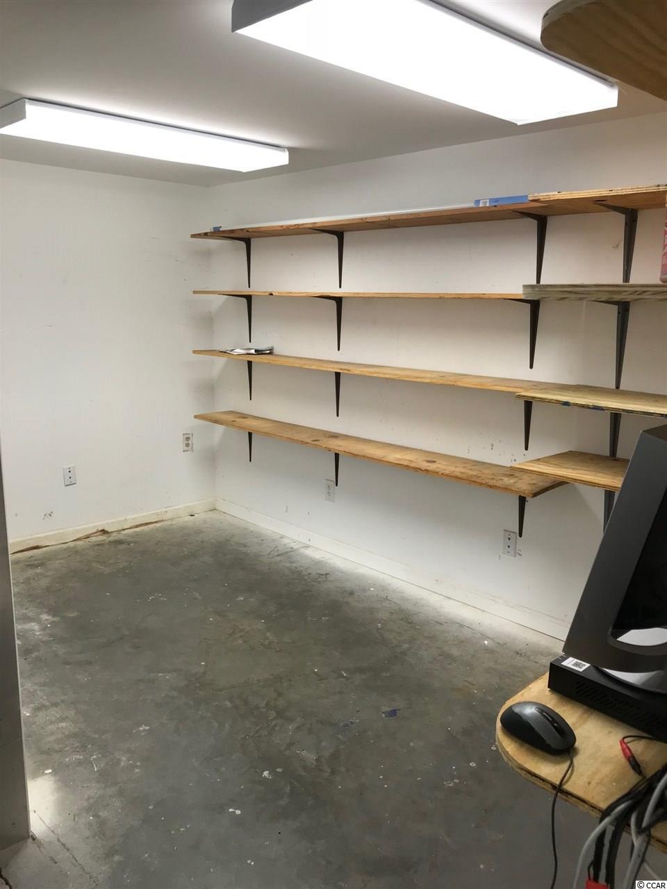 This commercial/office/warehouse space is approximately 2300 sq. ft.; fully heated and cooled. A prime location in the heart of Myrtle Beach. The building includes: a receptionist's office, 2 private offices, a lobby, 2 bathrooms, 2 rooms with warehouse storage space, an open warehouse, fenced yard, ample parking and outdoor storage space. The large, sliding door allows easy access to the warehouse. The storage shelving and 8 security cameras will convey. The interior contains a utility sink, mezzanine for additional storage and built in shelving in the receptionist's office. You don't want to miss this one!