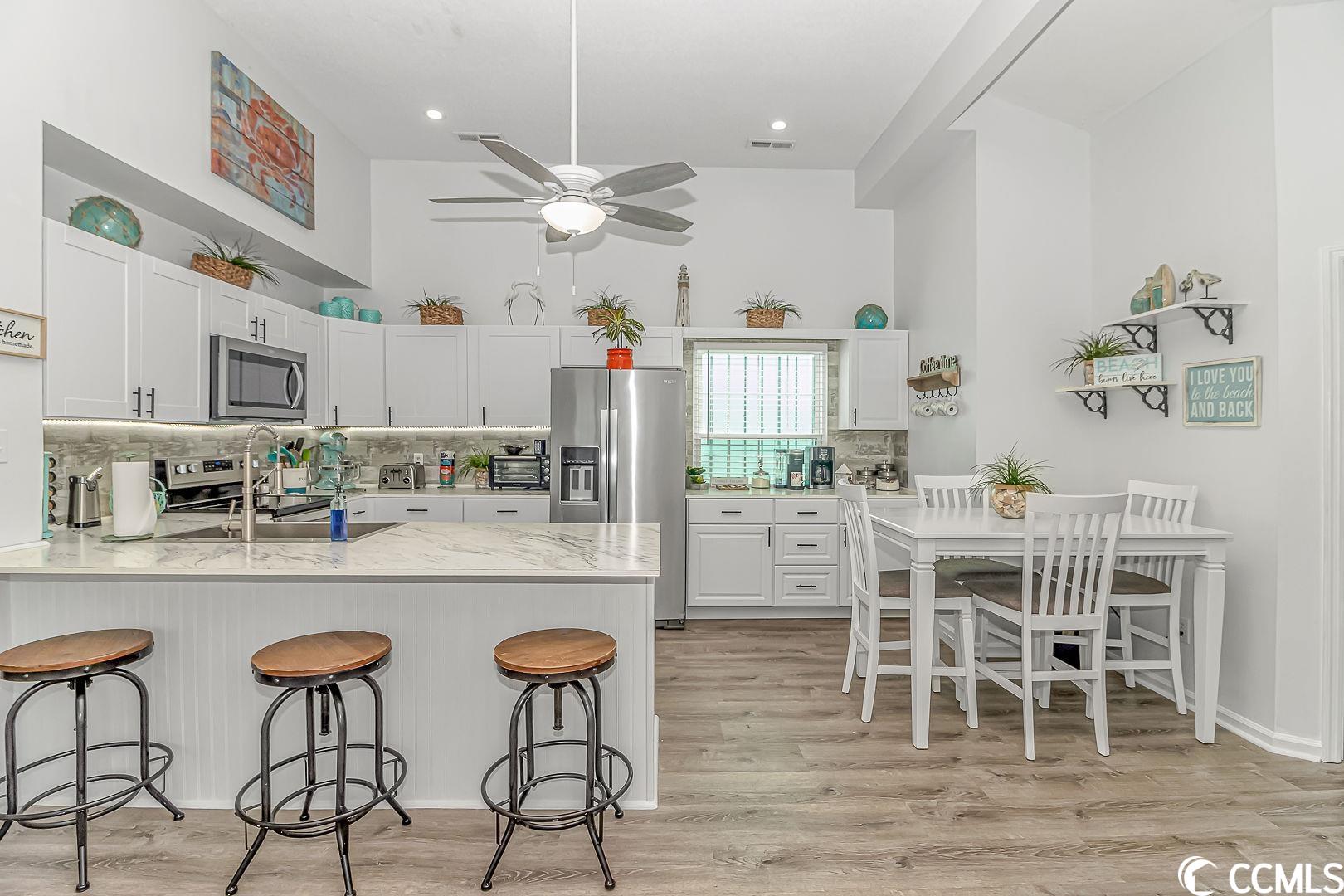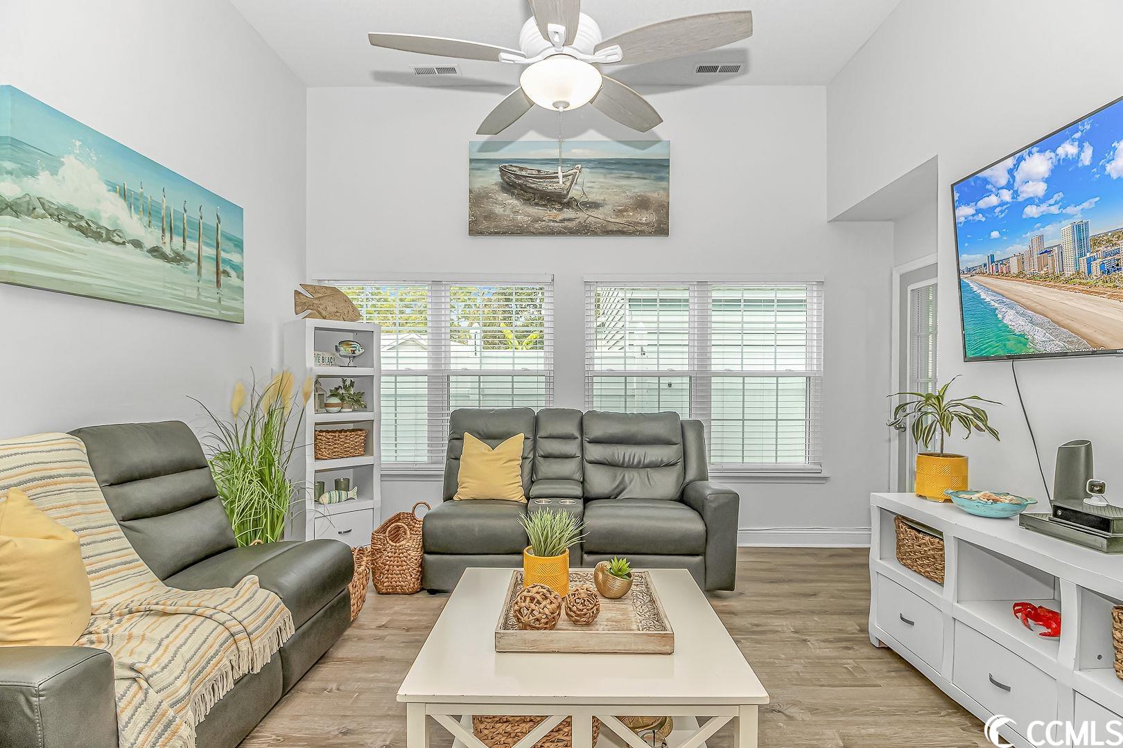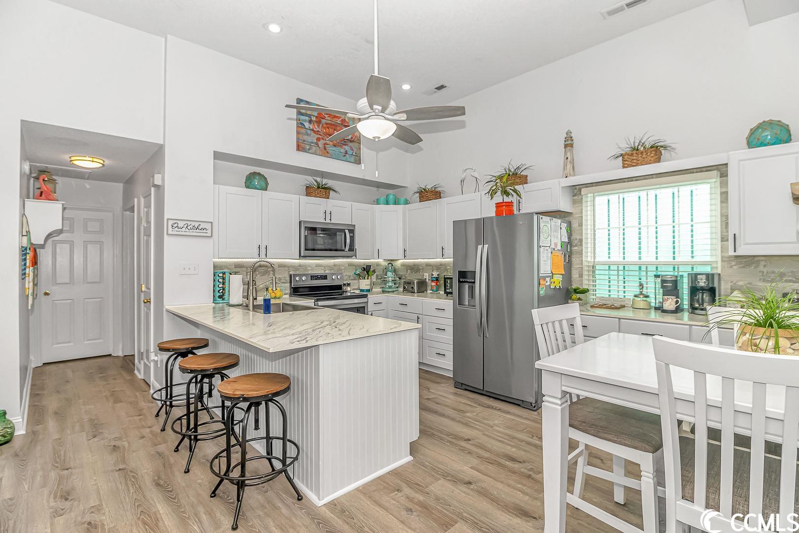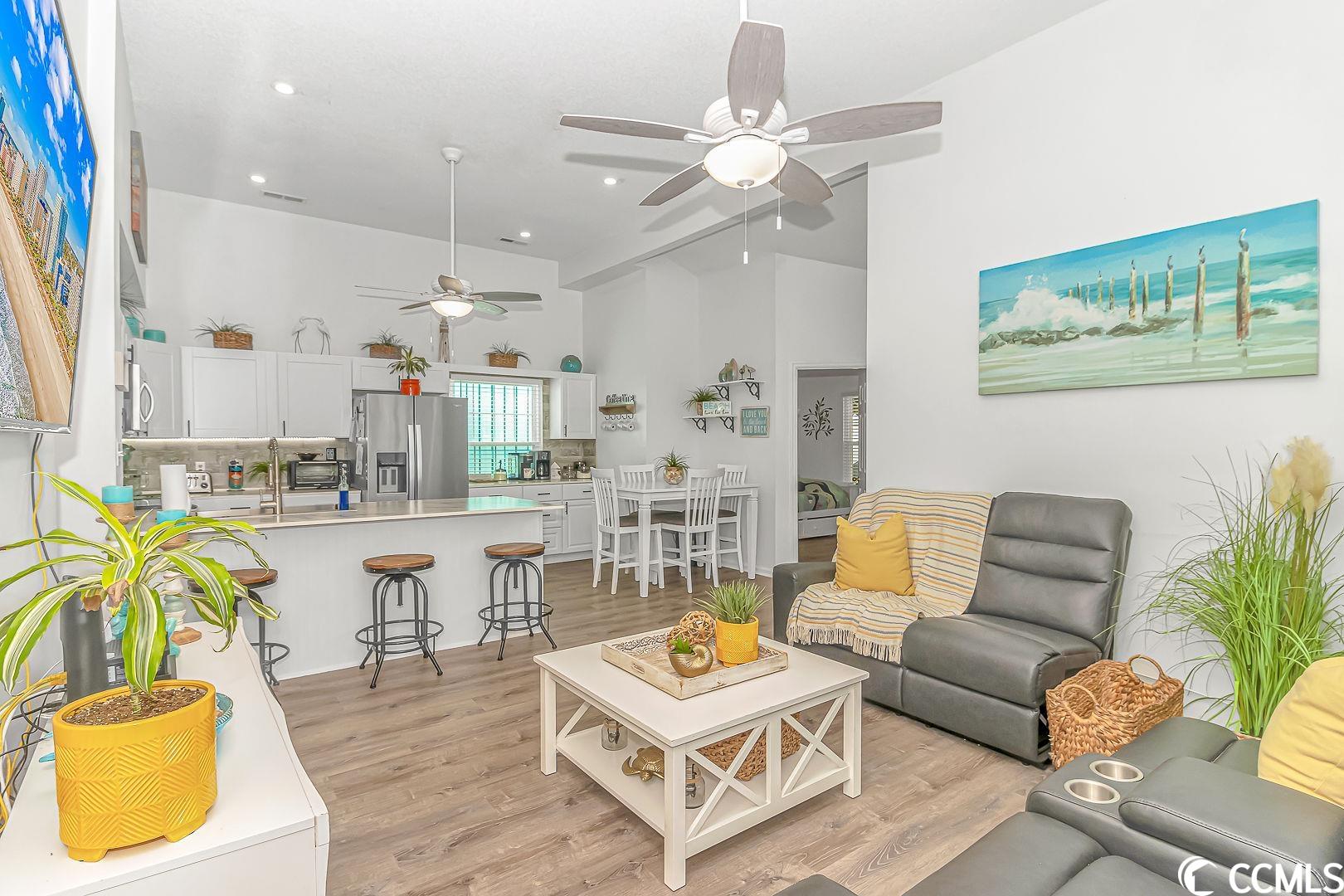 Welcome to your dream home in North Myrtle Beach! This completely remodeled 2-bedroom, 2-bathroom patio home with a 1-car garage offers the perfect blend of style, comfort, and convenience. As you enter through the main door, you'll be greeted by a bright and spacious living room with vaulted ceilings that create an airy and open atmosphere, along with the LVP flooring throughout the home. The living room seamlessly flows into the updated kitchen, which boasts stainless steel appliances, ample white cabinetry, and plenty of counter space. A custom coffee bar adjacent to the dining area adds a touch of luxury to your morning routine. The primary suite is generously sized and features a large closet, with a barn door-style entry into the remodeled ensuite bathroom, providing both privacy and a touch of contemporary design. The guest room is equally spacious and conveniently offers access to the guest bathroom, making it ideal for visitors. One standout feature of this home is the bonus area, which can be used as an office or a cozy sitting area, offering flexibility for your lifestyle. A loft with ladder access provides additional storage space for your convenience. Step out onto the back patio to the stunning outdoor oasis and unwind after a day at the beach, or simply curl up with a good book. The 1-car garage is perfect for storing your golf cart, a must-have for exploring the charming neighborhood. Nestled in the heart of North Myrtle Beach, this home is just a short drive away from Main Street, where you can explore local eateries, enjoy vibrant nightlife, and indulge in shopping. Additionally, you can take a leisurely ride to the beach on your golf cart or make a quick trip to the grocery store. With easy access to US 17 Business, this home is conveniently located near shopping centers, dining options, schools, and all the area's fantastic attractions. Don't miss this opportunity to make this beautifully remodeled and well-appointed home in North Myrtle Beach your own. It offers a perfect combination of modern living and coastal charm, all in an unbeatable location. Make it yours today! Measurements are not guaranteed, buyer is responsible for verifying.