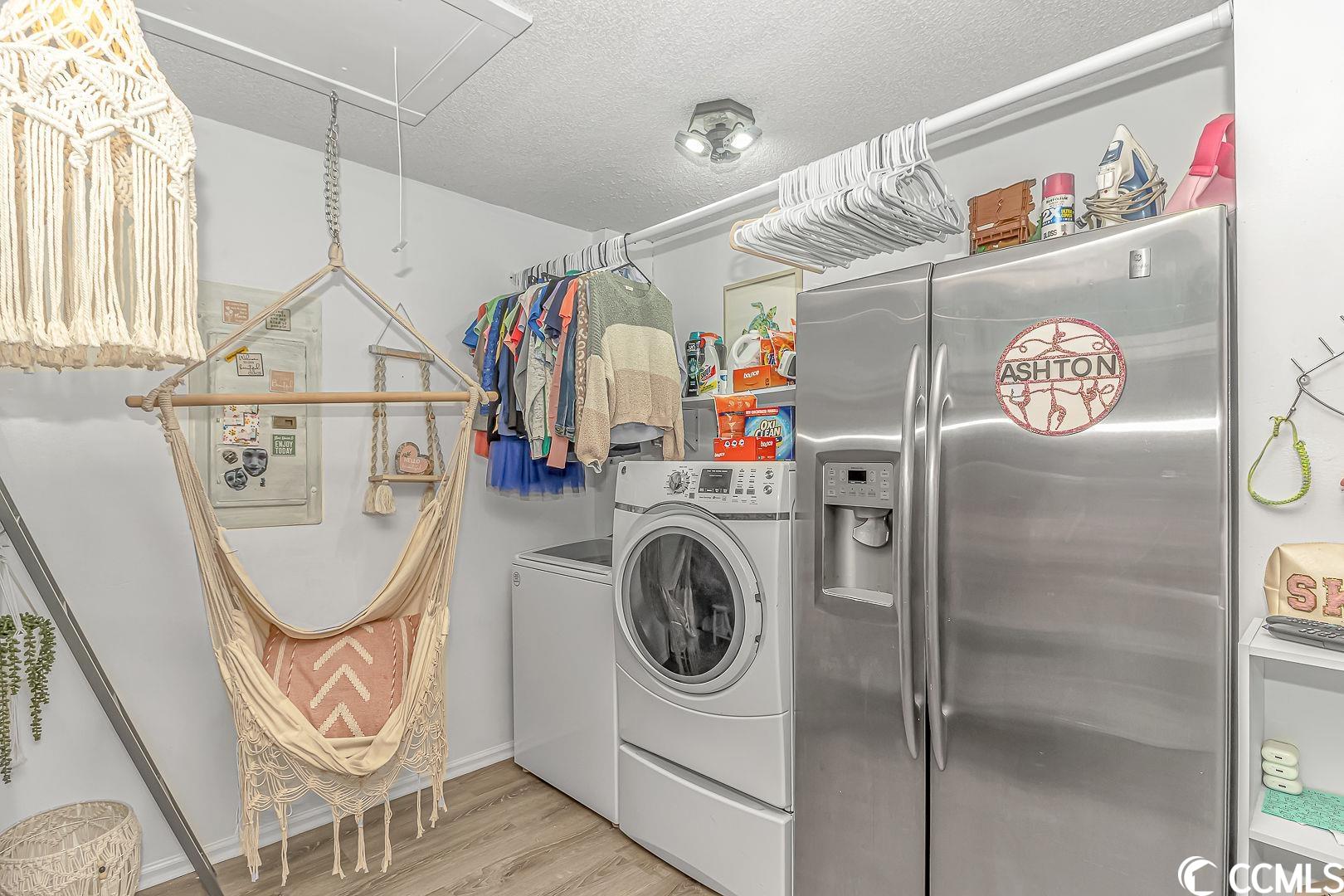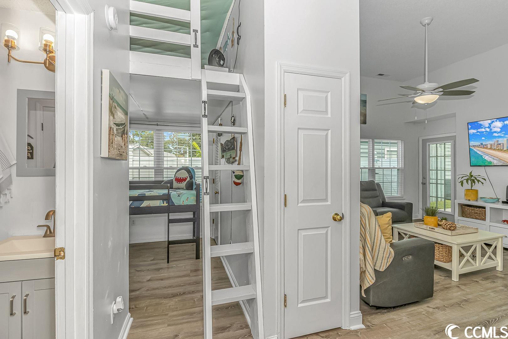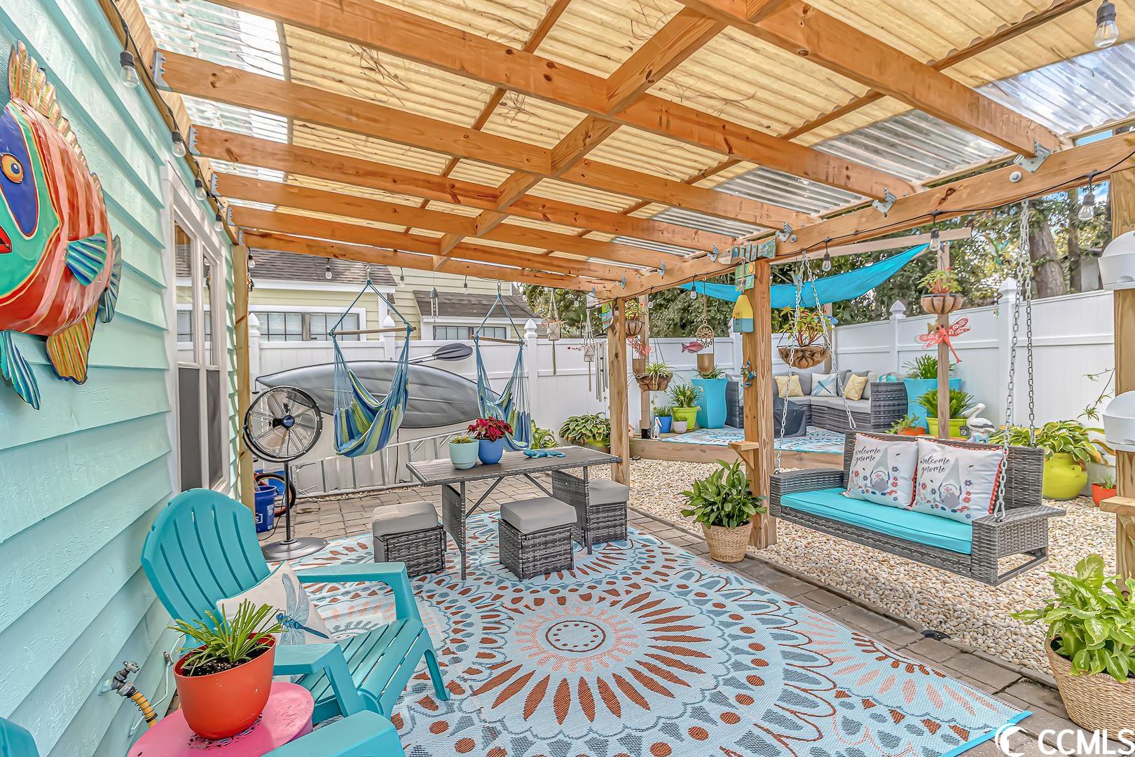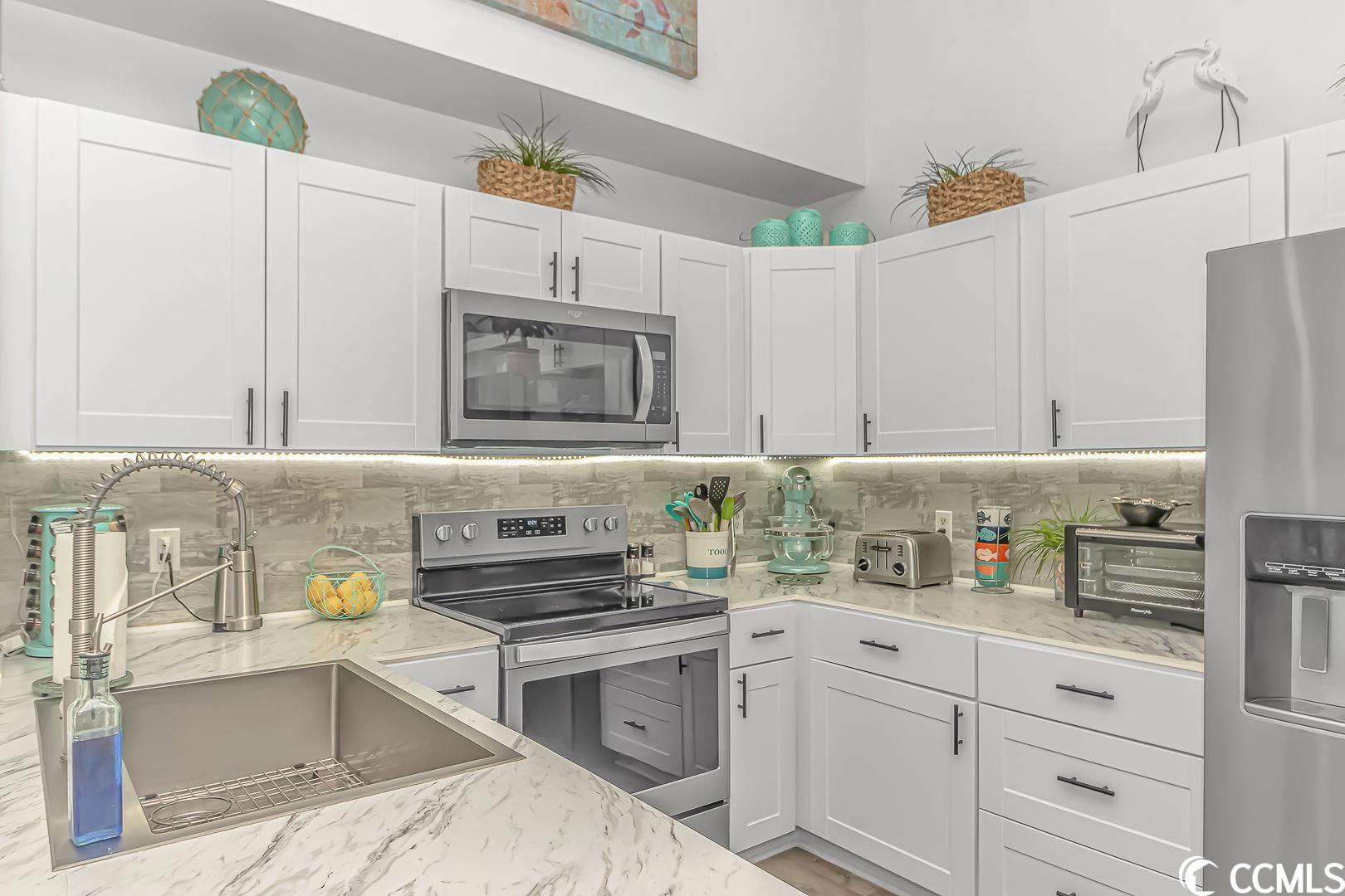 Welcome to your dream home in North Myrtle Beach! This completely remodeled 2-bedroom, 2-bathroom patio home with a 1-car garage offers the perfect blend of style, comfort, and convenience. As you enter through the main door, you'll be greeted by a bright and spacious living room with vaulted ceilings that create an airy and open atmosphere, along with the LVP flooring throughout the home. The living room seamlessly flows into the updated kitchen, which boasts stainless steel appliances, ample white cabinetry, and plenty of counter space. A custom coffee bar adjacent to the dining area adds a touch of luxury to your morning routine. The primary suite is generously sized and features a large closet, with a barn door-style entry into the remodeled ensuite bathroom, providing both privacy and a touch of contemporary design. The guest room is equally spacious and conveniently offers access to the guest bathroom, making it ideal for visitors. One standout feature of this home is the bonus area, which can be used as an office or a cozy sitting area, offering flexibility for your lifestyle. A loft with ladder access provides additional storage space for your convenience. Step out onto the back patio to the stunning outdoor oasis and unwind after a day at the beach, or simply curl up with a good book. The 1-car garage is perfect for storing your golf cart, a must-have for exploring the charming neighborhood. Nestled in the heart of North Myrtle Beach, this home is just a short drive away from Main Street, where you can explore local eateries, enjoy vibrant nightlife, and indulge in shopping. Additionally, you can take a leisurely ride to the beach on your golf cart or make a quick trip to the grocery store. With easy access to US 17 Business, this home is conveniently located near shopping centers, dining options, schools, and all the area's fantastic attractions. Don't miss this opportunity to make this beautifully remodeled and well-appointed home in North Myrtle Beach your own. It offers a perfect combination of modern living and coastal charm, all in an unbeatable location. Make it yours today! Measurements are not guaranteed, buyer is responsible for verifying.