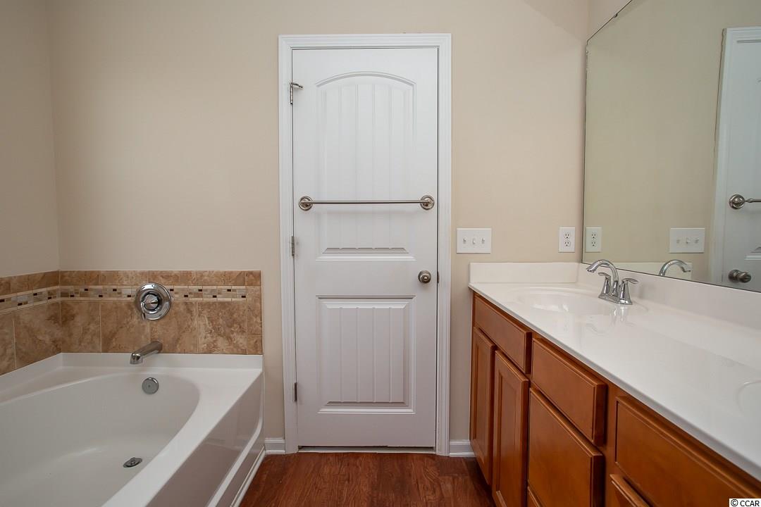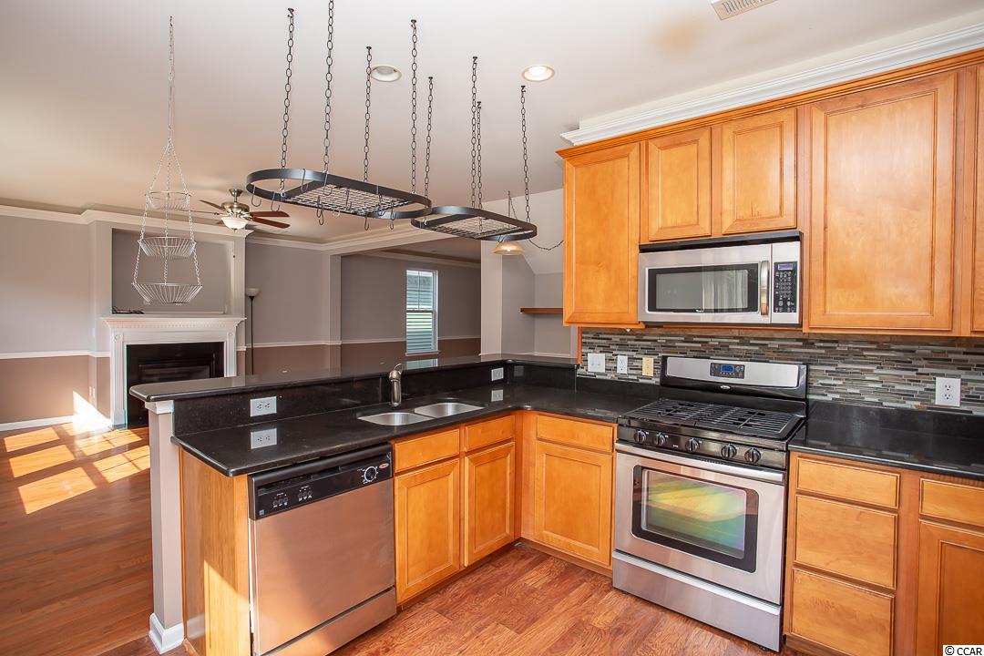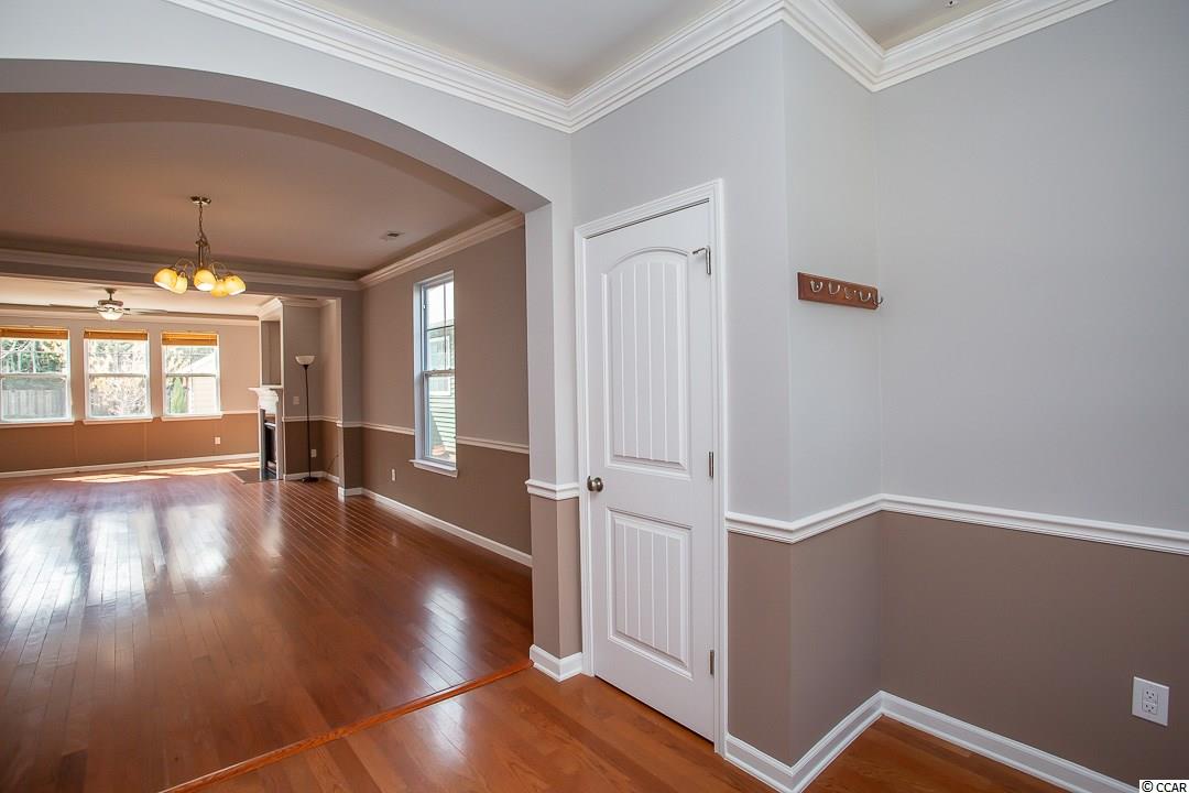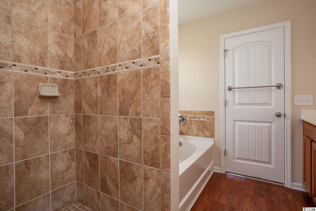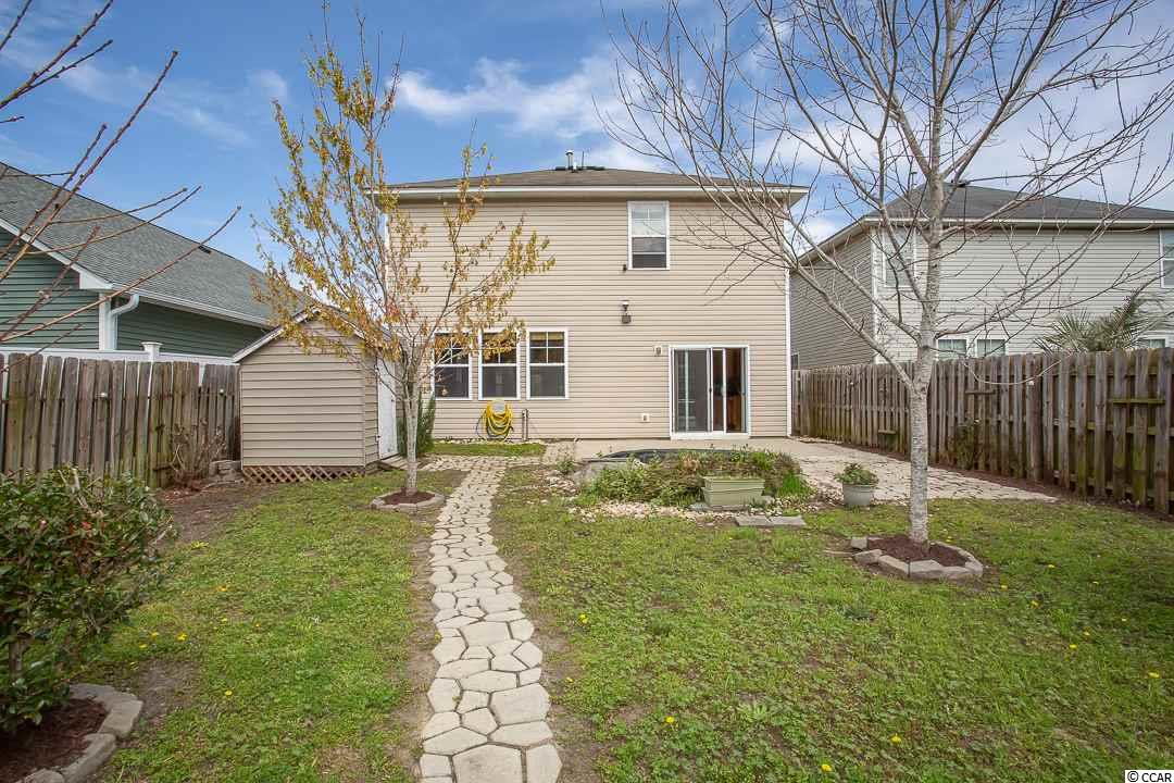 4 bedroom 3 full bath home in Forest Glen with a large open floor plan on the first level. Great Room is freshly painted and features gas fireplace, chair rail and lighted crown molding. Formal dining room and breakfast bar. Nice kitchen with stainless appliances, granite counters and maple cabinets. Slider from kitchen gives access to private fenced back yard with stone walkways and flowering trees. 1 bedroom and full bath on the the first floor with 3 bedrooms and 2 full baths on the second floor. Master suite with tiled walk-in shower, separate garden tub with tile accents, and large master closet. Convenient upstairs laundry. Bamboo blinds throughout the home. Two car attached garage with attic storage. Irrigation system. Close to shopping, and easy access to the beach and all the Grand Strand has to offer.