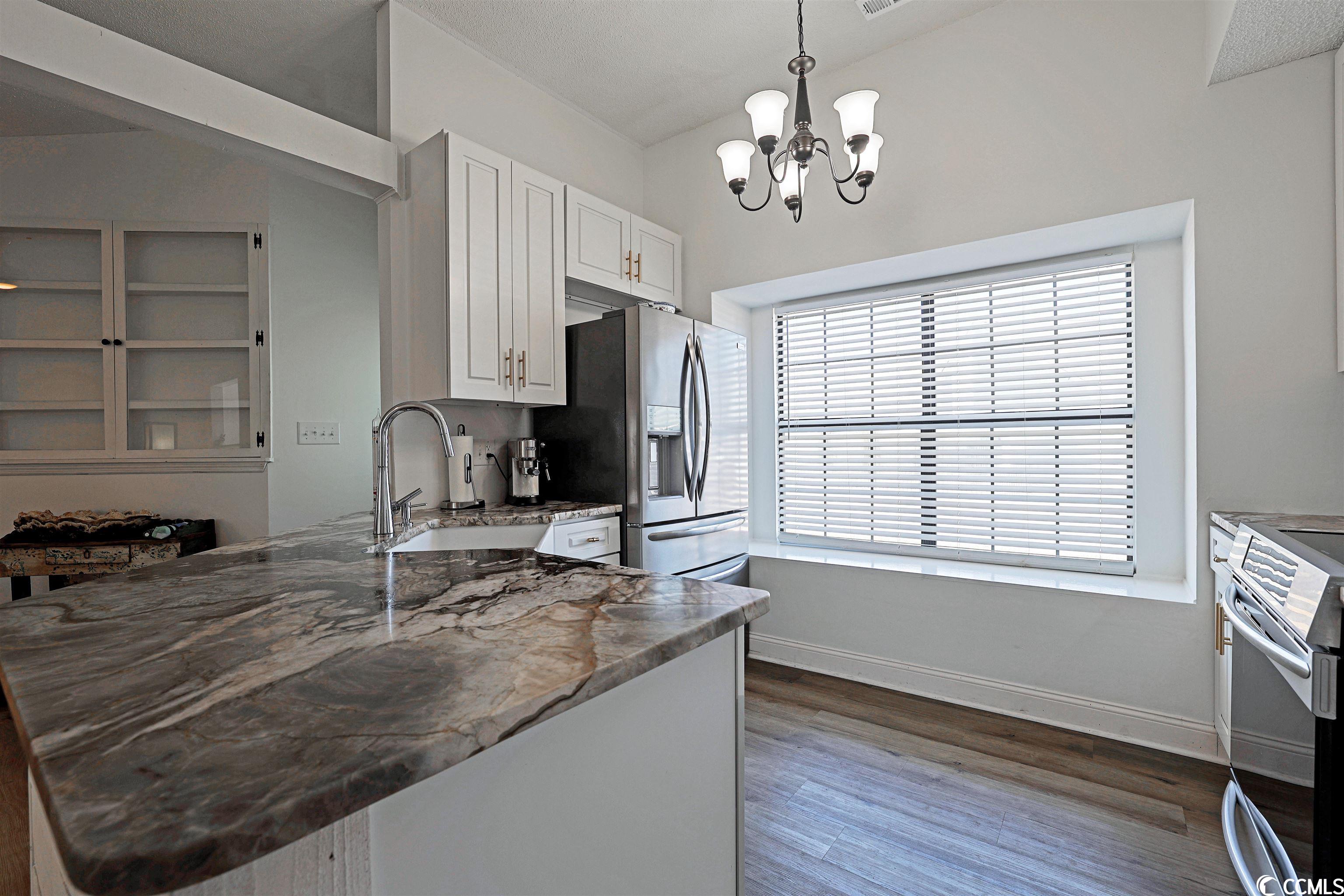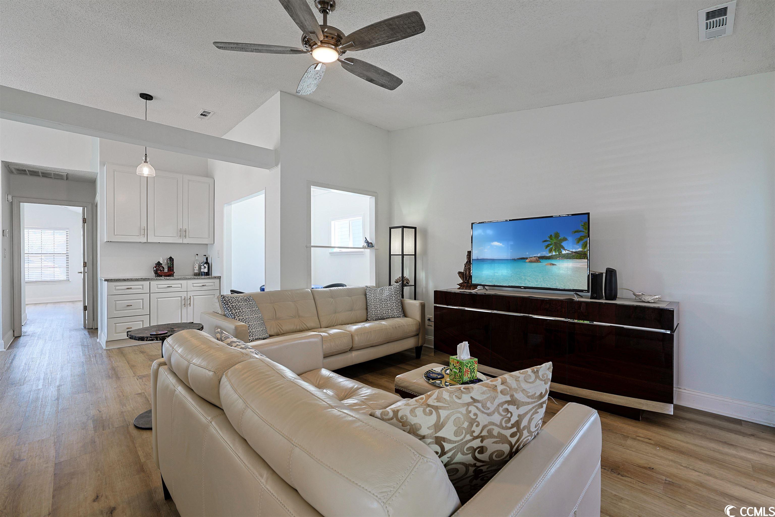 Introducing this adorable 3 bedroom 2 bath home situated on the tranquil lake in the peaceful Lake Homes community. This home features wood look LVP & tile flooring, a fresh coat of paint, ceiling fans, formal dining room, a comfortable living room, and a garage that has been converted into a classic family room. The family friendly kitchen is equipped with a new stainless steel appliance package, granite counter tops, a breakfast bar, a practical pantry, along with ample kitchen cabinet spaces. The master bedroom is open and bright with a vaulted ceiling, double bi-fold door closet, private access to the master bath offering a stand alone vanity with a single sink, a comfort station, and classic tub/shower combo. This piece of paradise is completed with two additional bedrooms, a full guest bath, an ideal laundry room, a relaxing sunroom, detached storage shed, and a delightful covered back deck. This home affords you easy access to the beach and golfing along with all of the other activities and happenings in North Myrtle Beach & Myrtle Beach including fun eateries, award winning off-Broadway shows, public fishing piers, and intriguing shopping adventures along the Grand Strand. Conveniently located to your everyday needs, including grocery stores, banks, post offices, medical centers, doctors offices, and pharmacies. Check out our state of the art 3-D Virtual Tour.