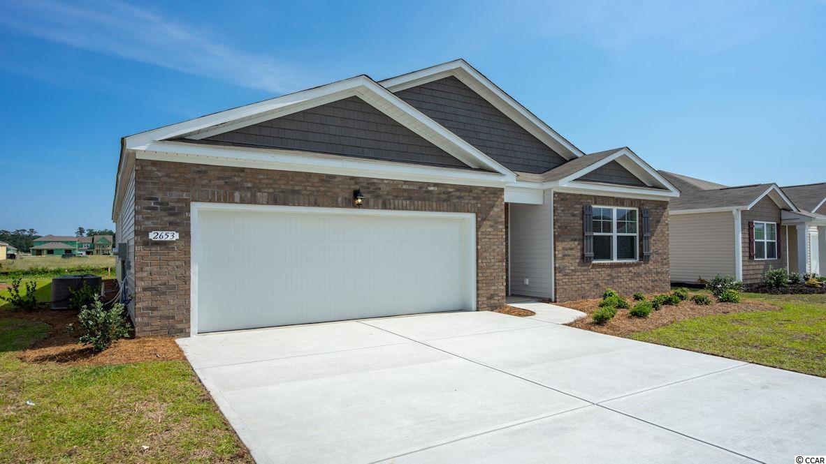 Our Cali plan with brick elevation is the perfect one level home with a beautiful, open concept living area for entertaining. The kitchen features granite countertops, an oversized island, white painted cabinets, a walk-in pantry, and stainless Whirlpool appliances with a gas range. The large primary bedroom is tucked away at the back of the home, separated from the other bedrooms, with double vanity and 5' shower in the private en suite bath. Low maintenance laminate flooring in the main areas gives the look of wood with easy care and cleanup with tile in both bathrooms and the laundry room. Spacious rear covered porch adds great outdoor living space. This is America's Smart Home! All of our homes come with an industry leading smart home package that allows our homeowners to stay connected with the people and place they value most. *Photos are of a similar Cali plan. (Home and community information, including pricing, included features, terms, availability and amenities, are subject to change prior to sale at any time without notice or obligation. Square footages are approximate. Pictures, photographs, colors, features, and sizes are for illustration purposes only and will vary from the homes as built. Equal housing opportunity builder.)