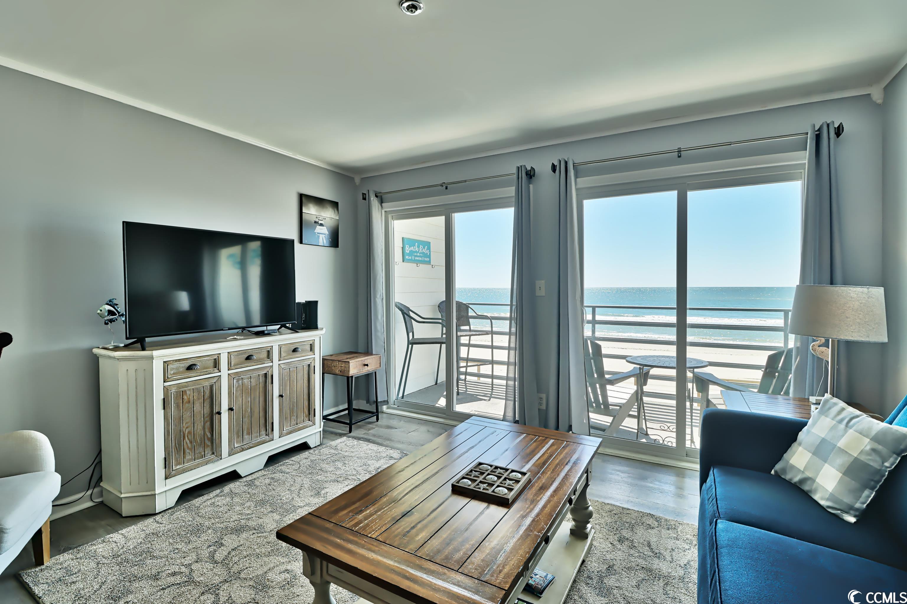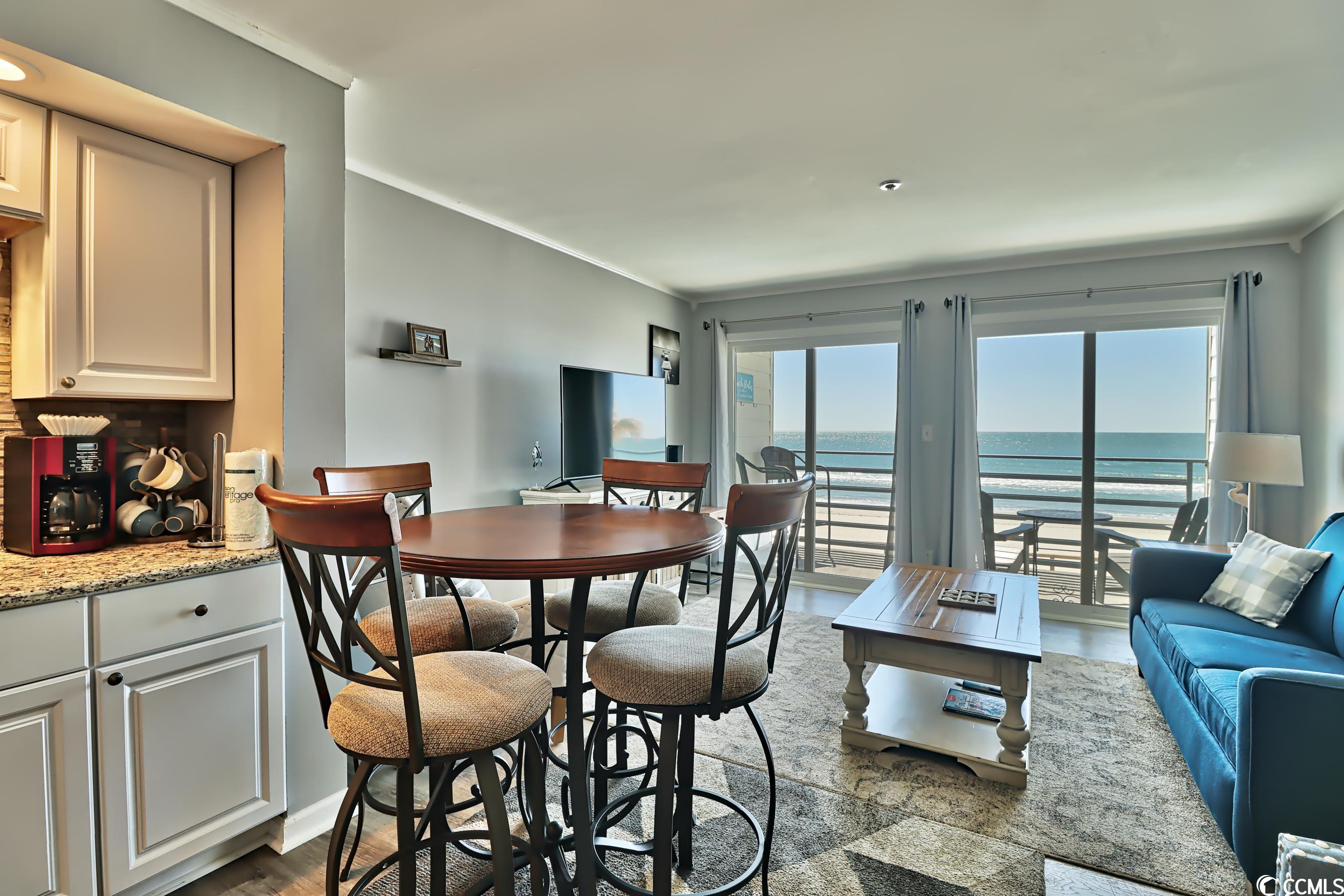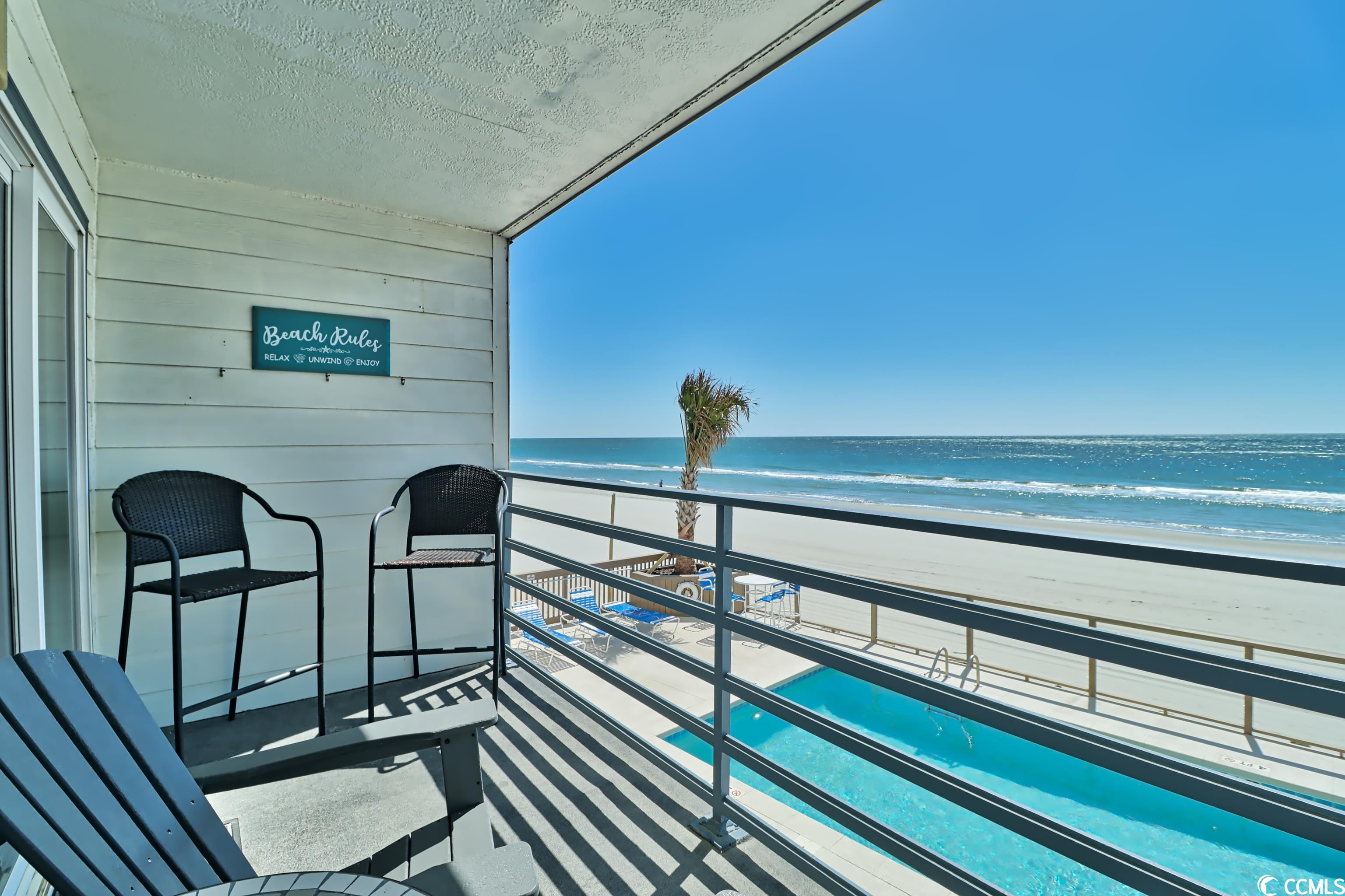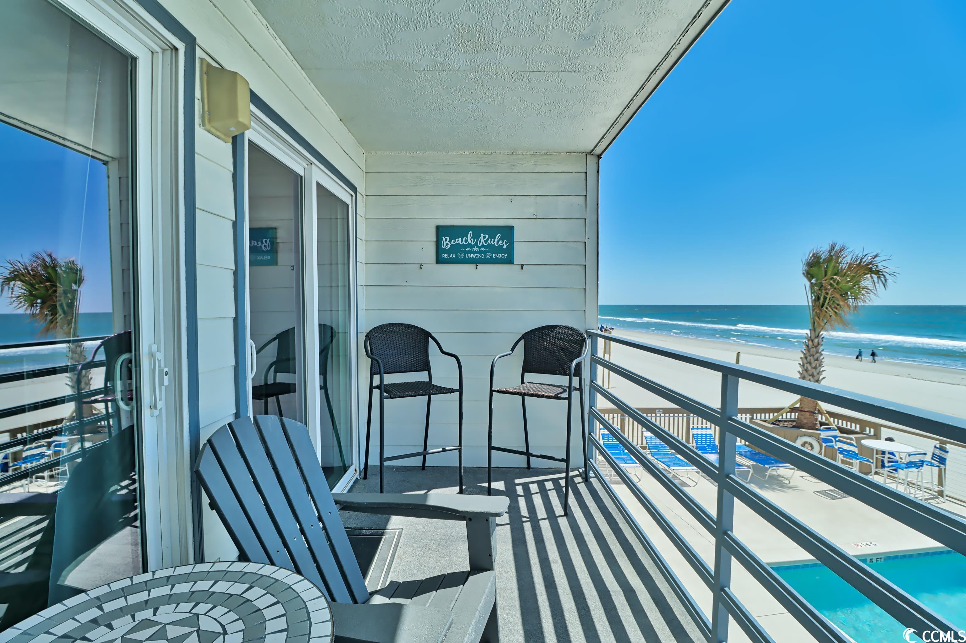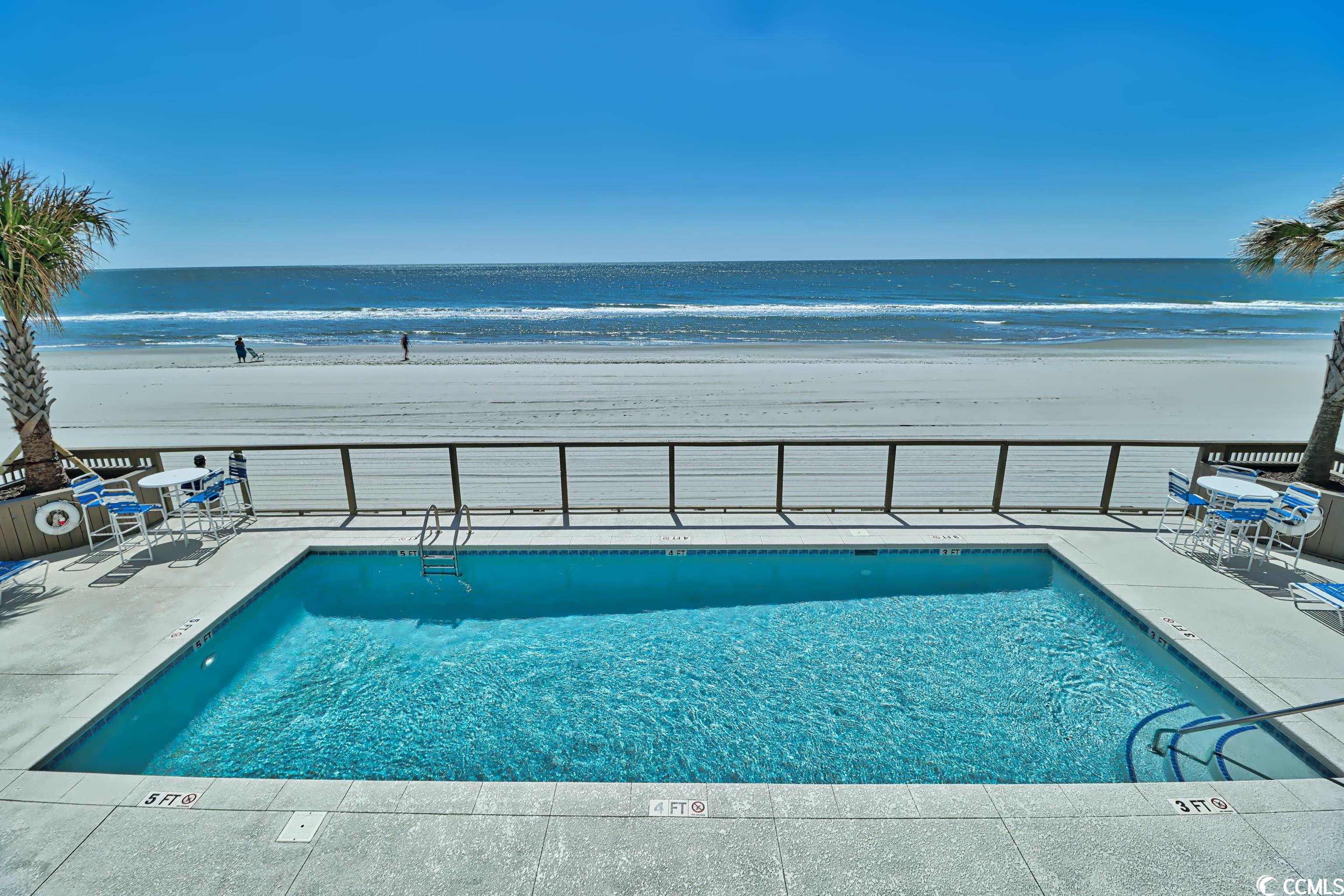 Oceanfront vacations await you in this renovated one bedroom one bath unit! The kitchen has been updated with solid surface countertops, stainless steel appliances and tile backsplash. The private bedroom is separate from the main living which also contains a pullout couch in the living area and another day bed that can be turned into a trundle. One of the best features in my opinion are the smooth ceilings! NO POPCORN! There is an updated full bath and a great storage area in the hall of the unit. Of course the views from the unit and balcony are the reason why this is a great place to vacation or rent out during the season! First floor means a quick walk to the beach but there is also an elevator for your convenience and for your heavy items or groceries. Approximately 9 blocks to the Garden City Pier and various entertainment! Square footage is approximate and not guaranteed. Buyer is responsible for verification.