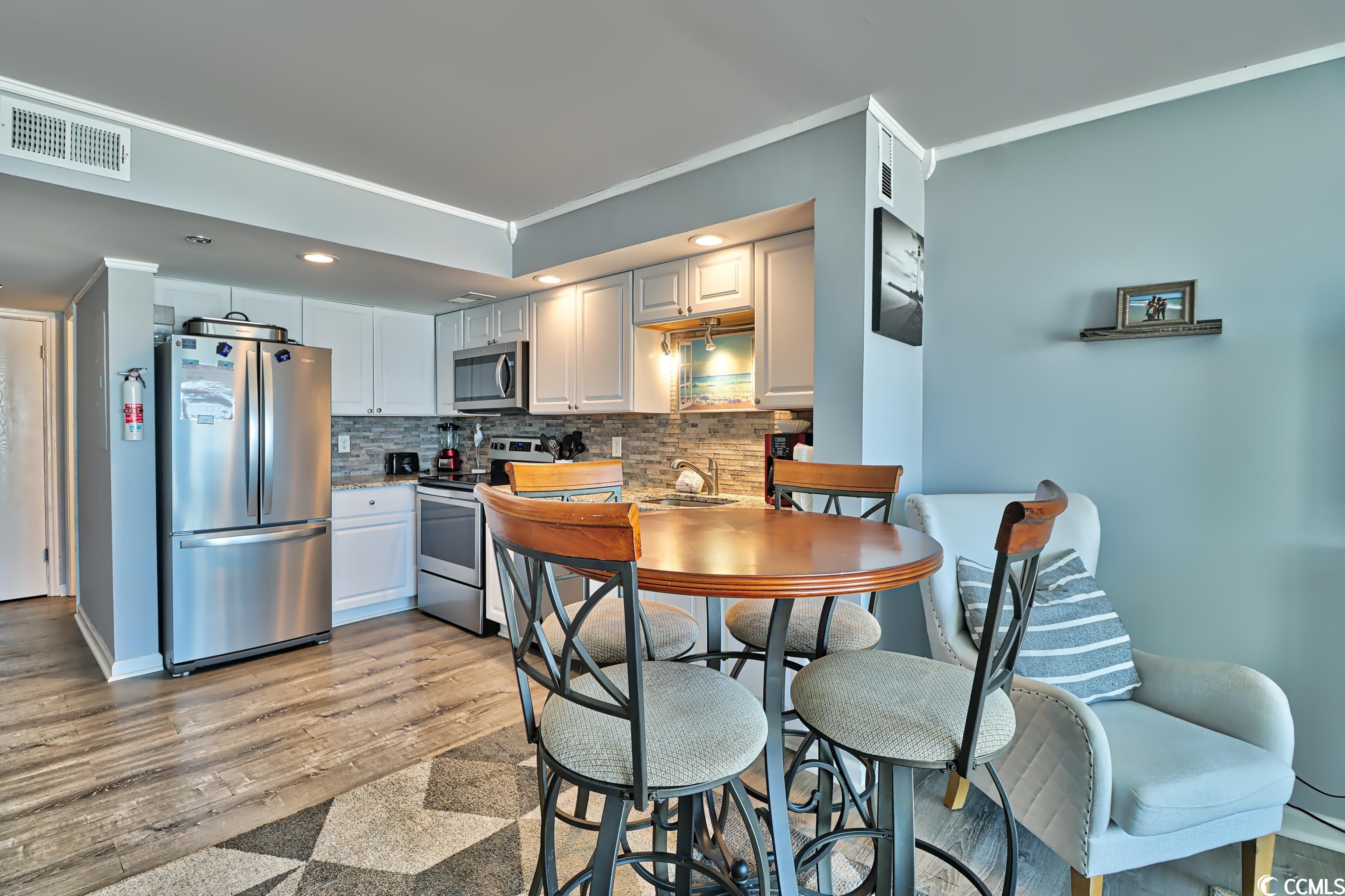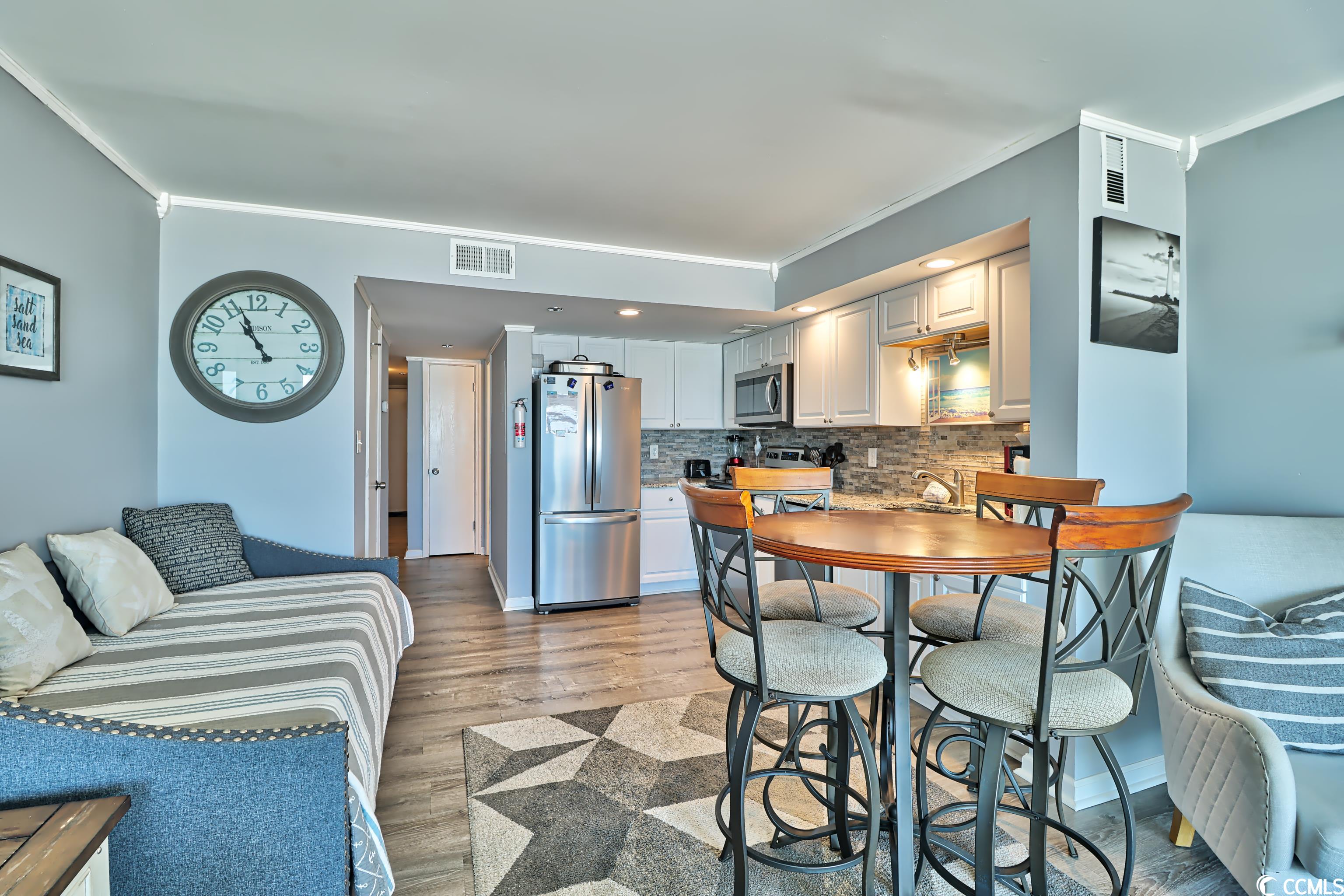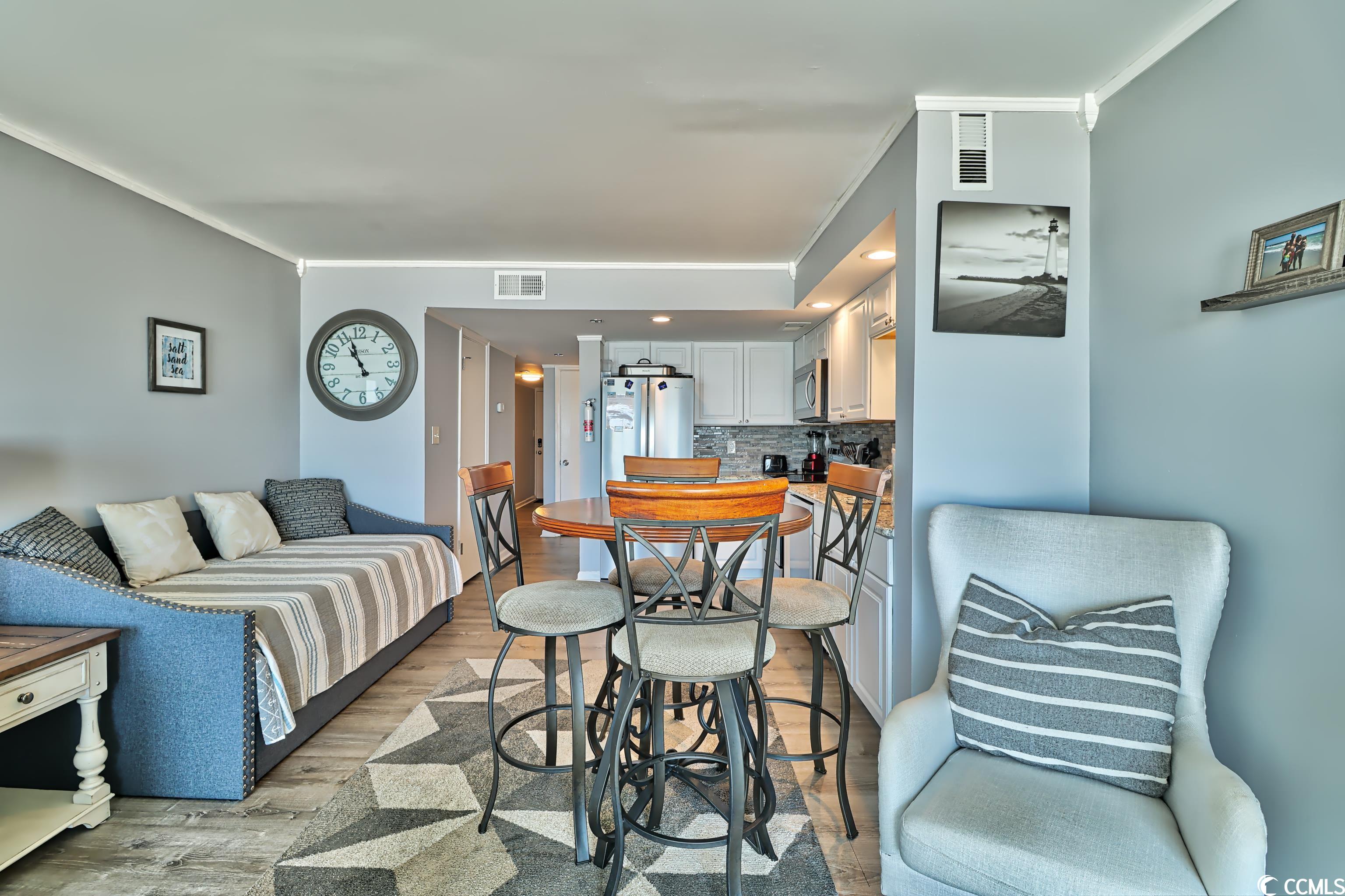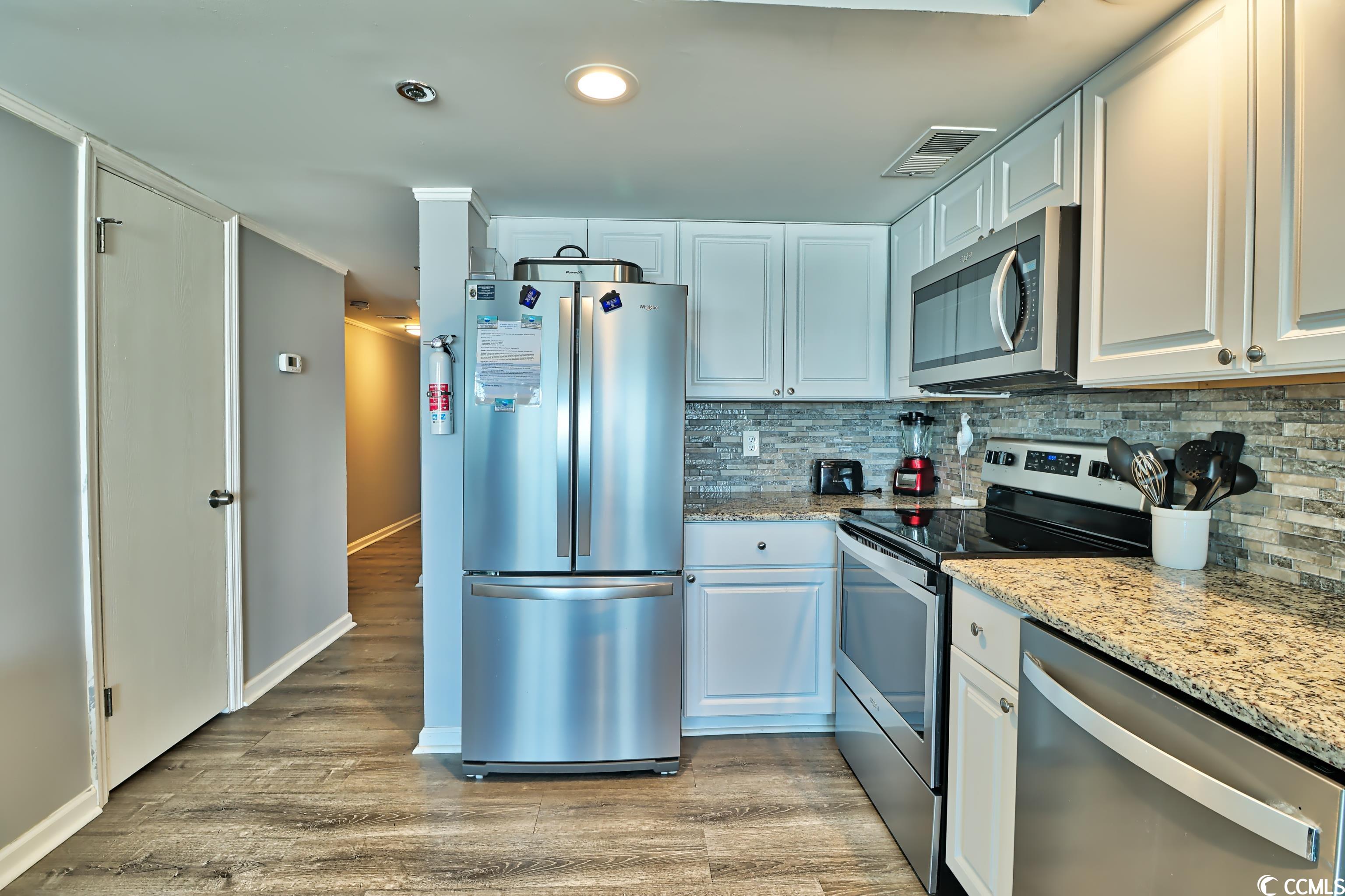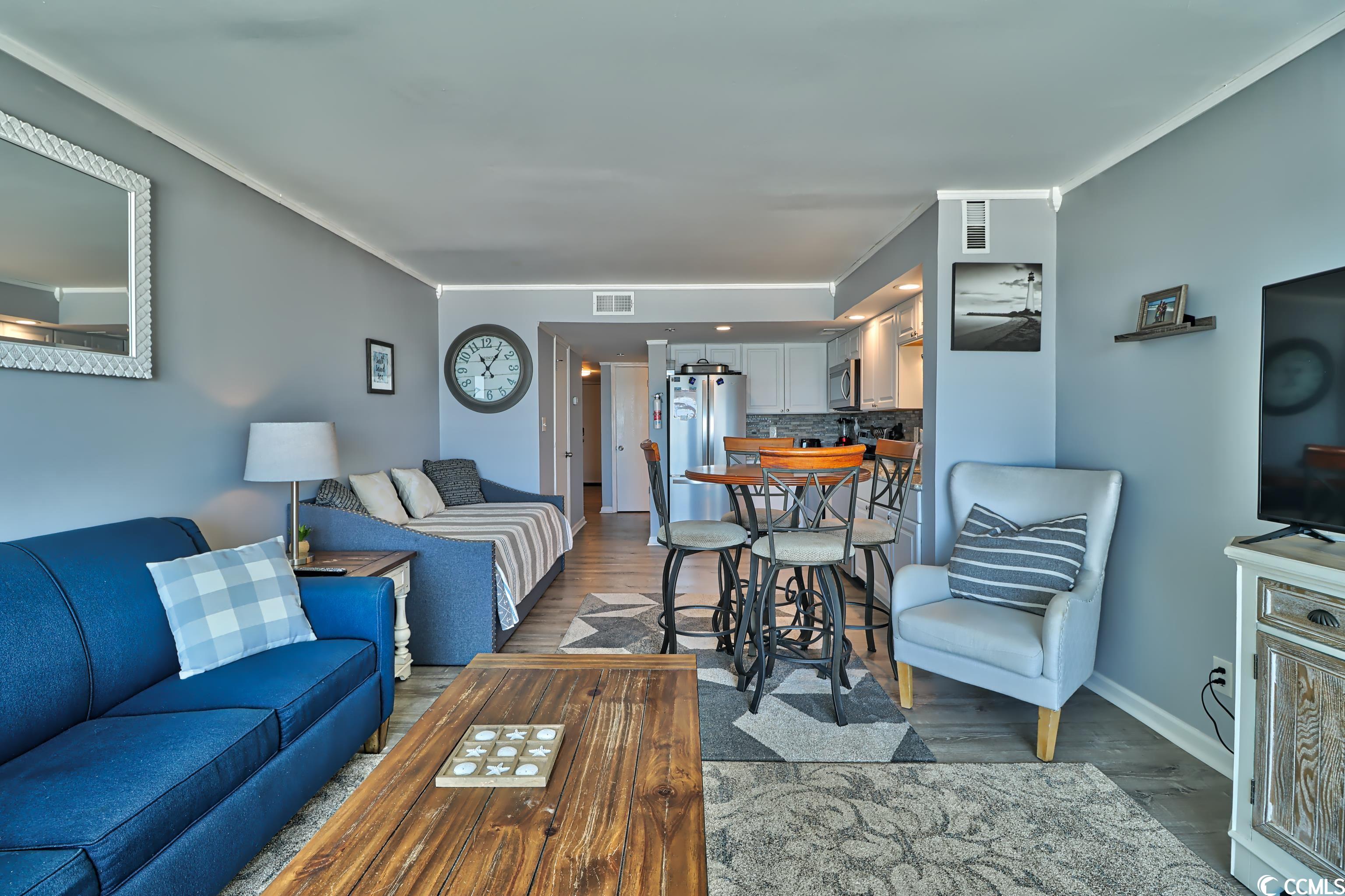 Oceanfront vacations await you in this renovated one bedroom one bath unit! The kitchen has been updated with solid surface countertops, stainless steel appliances and tile backsplash. The private bedroom is separate from the main living which also contains a pullout couch in the living area and another day bed that can be turned into a trundle. One of the best features in my opinion are the smooth ceilings! NO POPCORN! There is an updated full bath and a great storage area in the hall of the unit. Of course the views from the unit and balcony are the reason why this is a great place to vacation or rent out during the season! First floor means a quick walk to the beach but there is also an elevator for your convenience and for your heavy items or groceries. Approximately 9 blocks to the Garden City Pier and various entertainment! Square footage is approximate and not guaranteed. Buyer is responsible for verification.