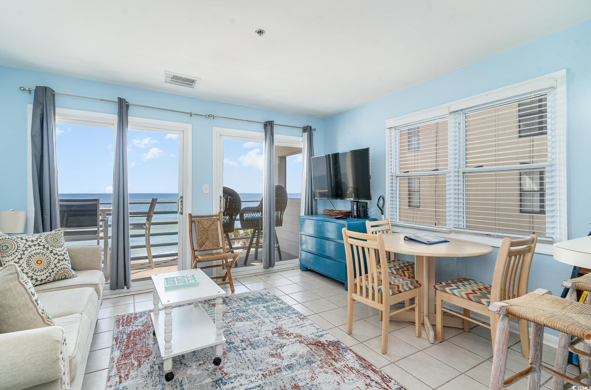 Welcome to paradise! The views are spectacular from this delightful 1 bed 1 bath oceanfront end unit condo located in Carolina Shores! Updated with a new HVAC in May 2023 and new hot water heater in 2024, this furnished turnkey unit sleeps four and has features your whole family will enjoy! Great floor plan includes an extended foyer with a board and batten wall rack for sunhats and jackets, a cozy living room and dining area with direct ocean views, built in bunk beds just off the living room for additional sleeping options and a fully equipped kitchen with abundant cabinet and counter space, a double sink, and a breakfast bar. The nice sized private bedroom has plenty of closet space and the full bathroom just off the hallway has a vanity and tub/shower. Double sliding doors lead to the expansive balcony with room for everyone to gather and relax while savoring those warm ocean breezes and wonderful views. Carolina Shores amenities include an outdoor pool and onsite laundry facility. Fantastic central location close to so many award-winning restaurant options, golf, fishing, Garden City Pier, Marlin Quay Marina, The MarshWalk at Murrells Inlet, Brookgreen Gardens, and just a short drive to Market Common, the airport, Broadway at the Beach and all the attractions and entertainment that Myrtle Beach has to offer. Whether you are looking for the perfect beach getaway or an investment property, don't miss this wonderful opportunity! Make an appointment to view this fabulous condo today!