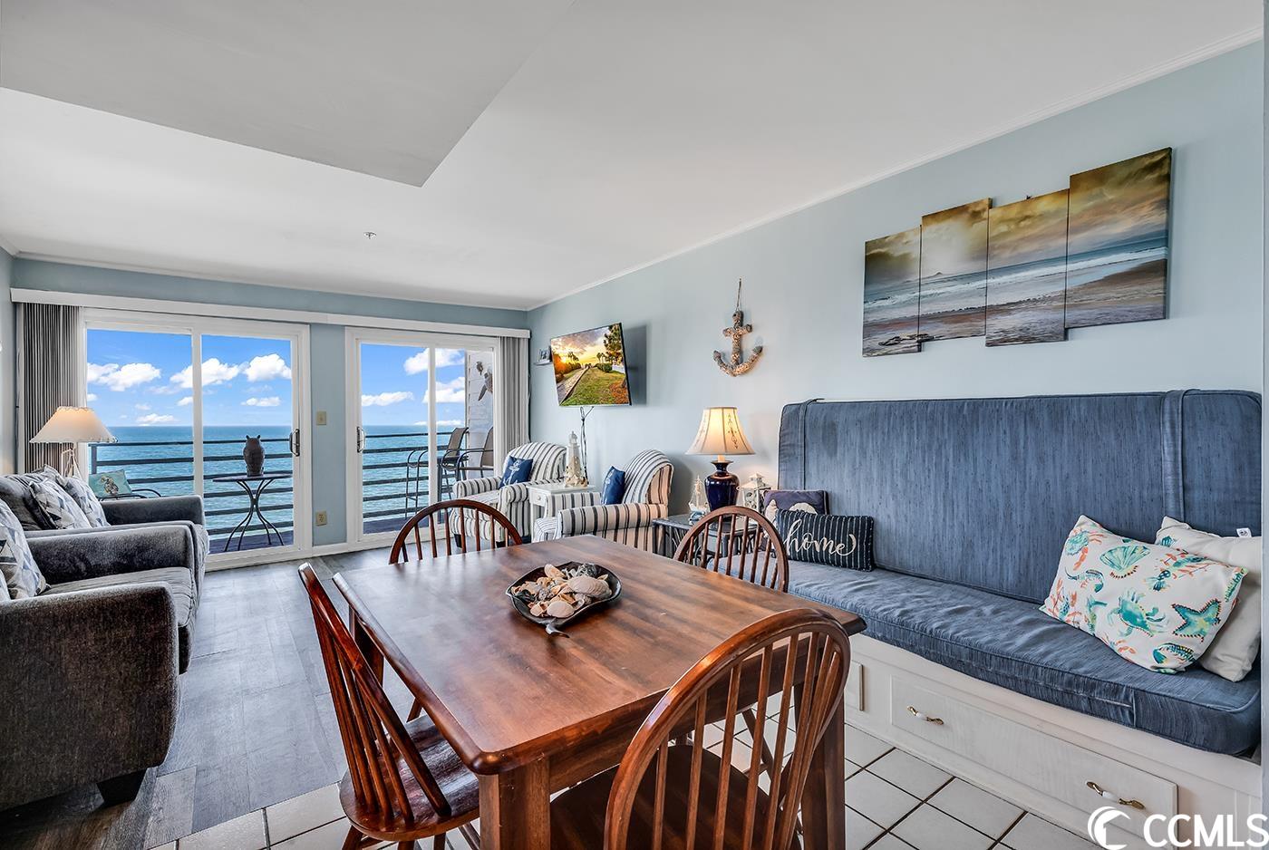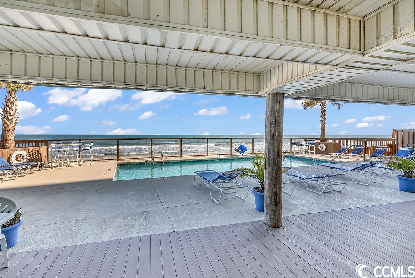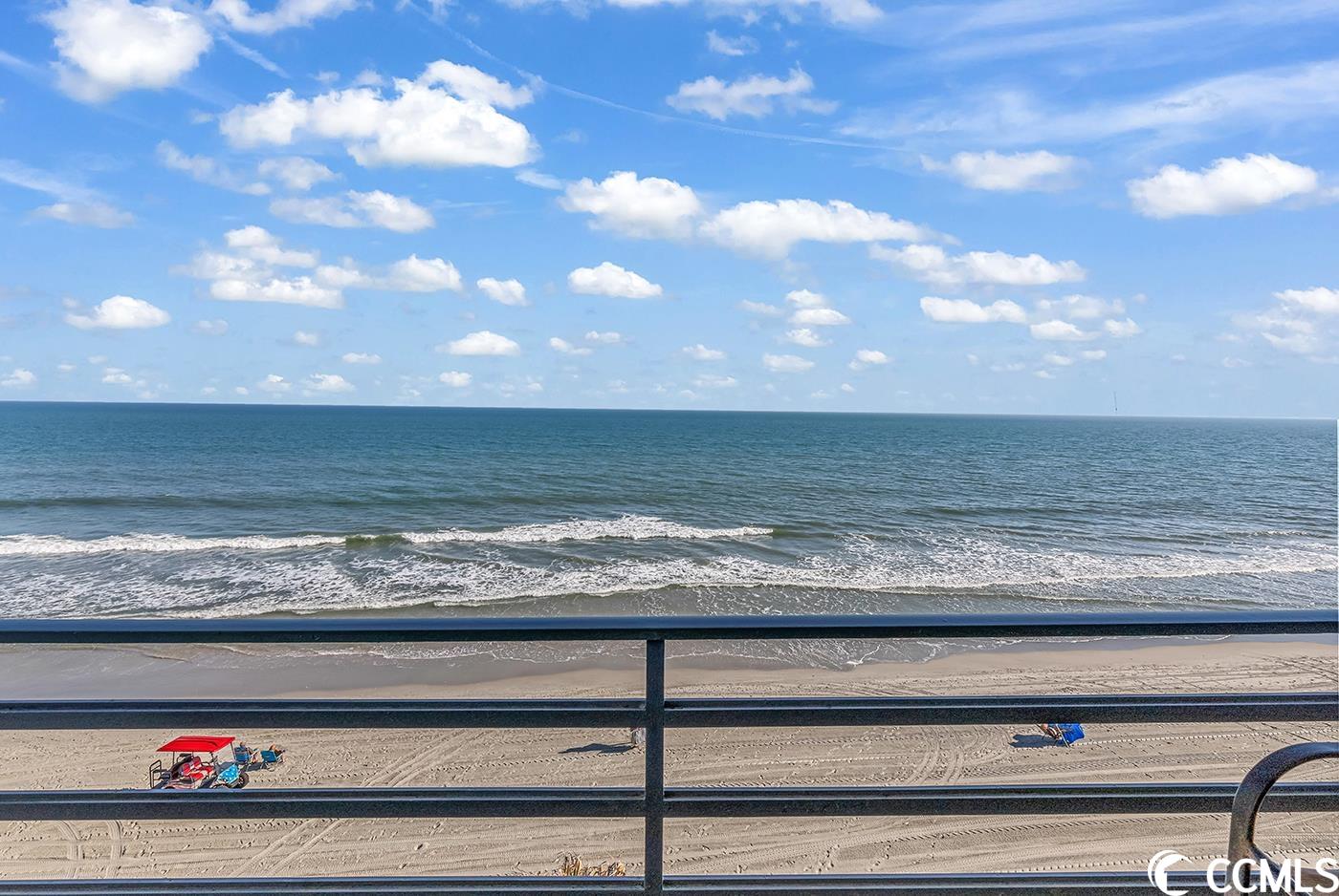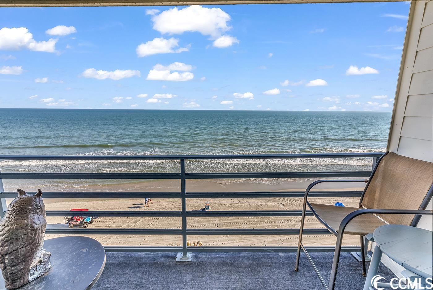 Come experience the epitome of coastal living in this top floor, end unit, 1-bedroom, fully furnished condo. The top-floor positioning offers panoramic views of the sparkling Atlantic Ocean inviting you to savor stunning sunrises. This thoughtfully designed unit features a true 1 bedroom with amble closet, a cozy living area with sleeper chairs, remodeled bathroom and a fully equipped kitchen adorned with appliances and a pantry. Enjoy the convenience of a private balcony where you can unwind while taking in the salt-kissed breeze and the soothing sound of waves crashing against the shore. You have direct access to the beach, allowing for leisurely strolls along the sand or choose to relax by the community pool. Nestled near Murrells Inlet, renowned for its fresh seafood, vibrant local culture, and charming waterfront atmosphere, this unit offers proximity to a myriad of dining, entertainment, and recreational options.