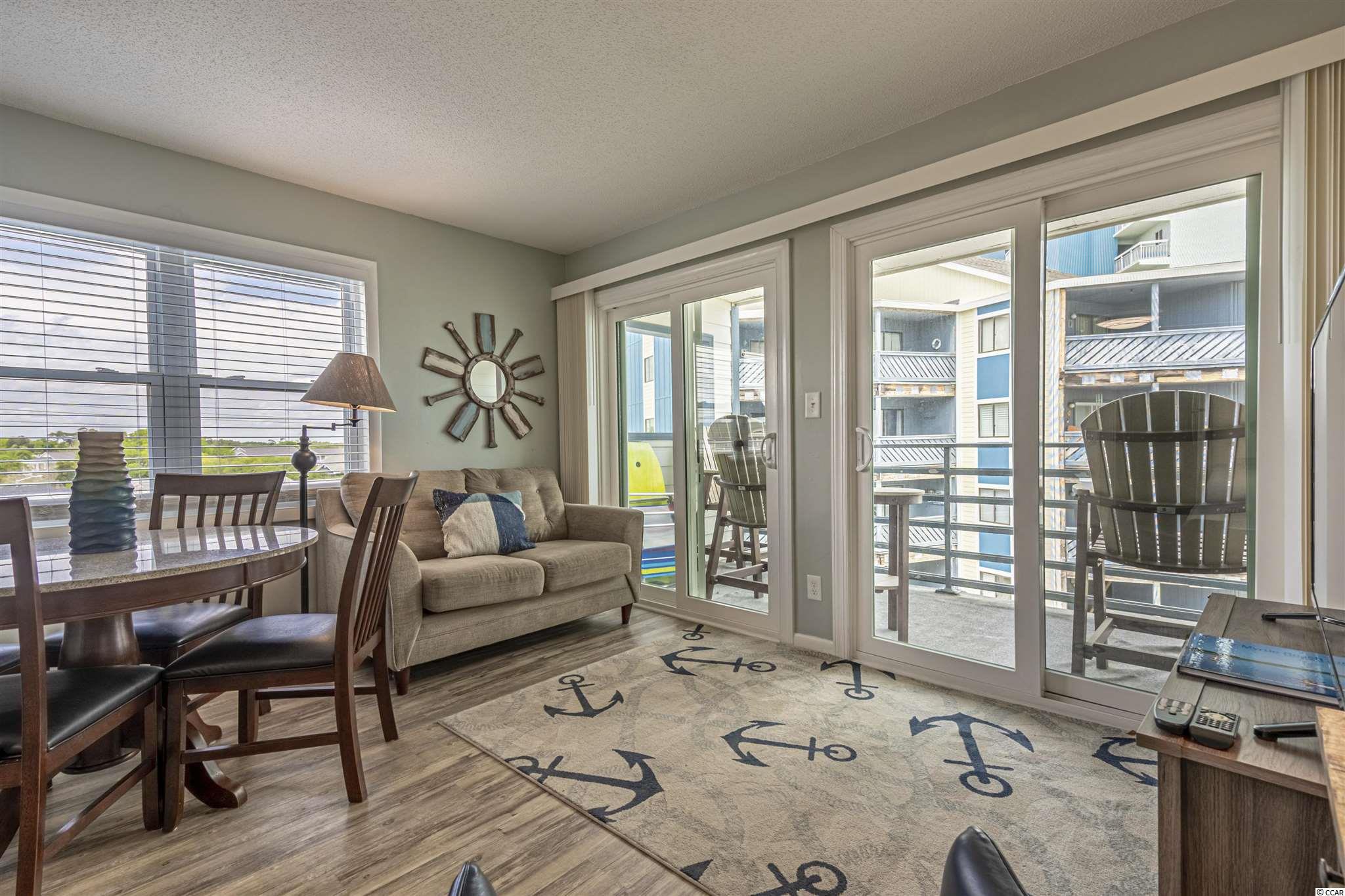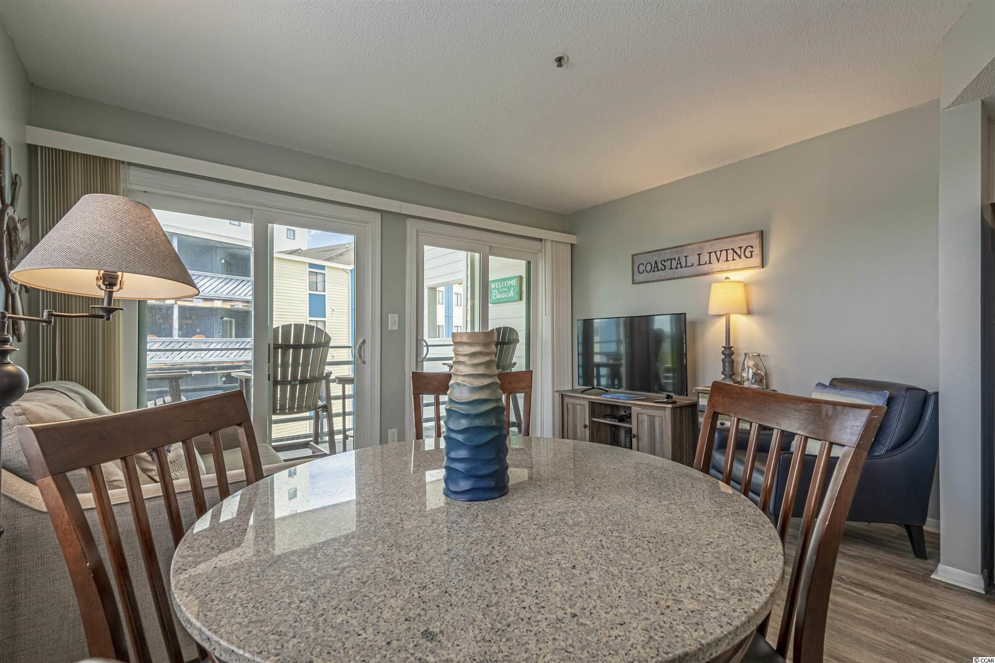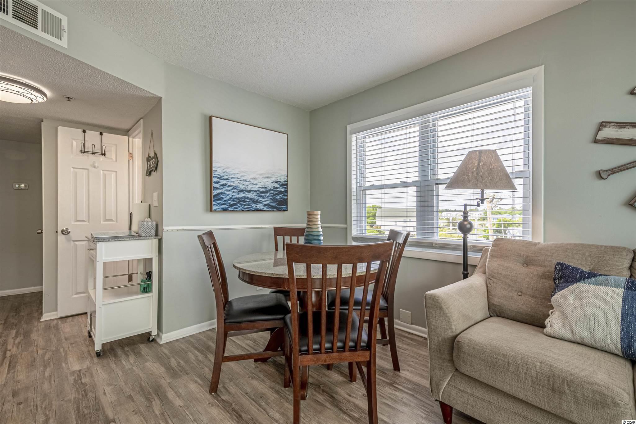 This beautiful fully furnished, 2 bedroom, 1 bath end unit condo located in the highly desirable area of Garden City is totally turnkey. The HVAC was replaced in 2019. The balcony off the living area is a perfect place to sit outside and enjoy a morning cup of coffee or evening cocktail, with beautiful ocean views and new patio furniture. This unit has a full kitchen with granite countertops and stainless steel appliances. The full bathroom is also updated and has a double vanity and a large shower. This unit would make a perfect primary residence, 2nd home or investment property. Carolina Shores II is a beachfront property featuring a pool, direct beach access, elevator, and on-site laundry facilities. This condo is located in the heart of Garden City within walking distance to the Garden City Pier and near plenty of additional dining and entertainment. Call today this one won't last long.