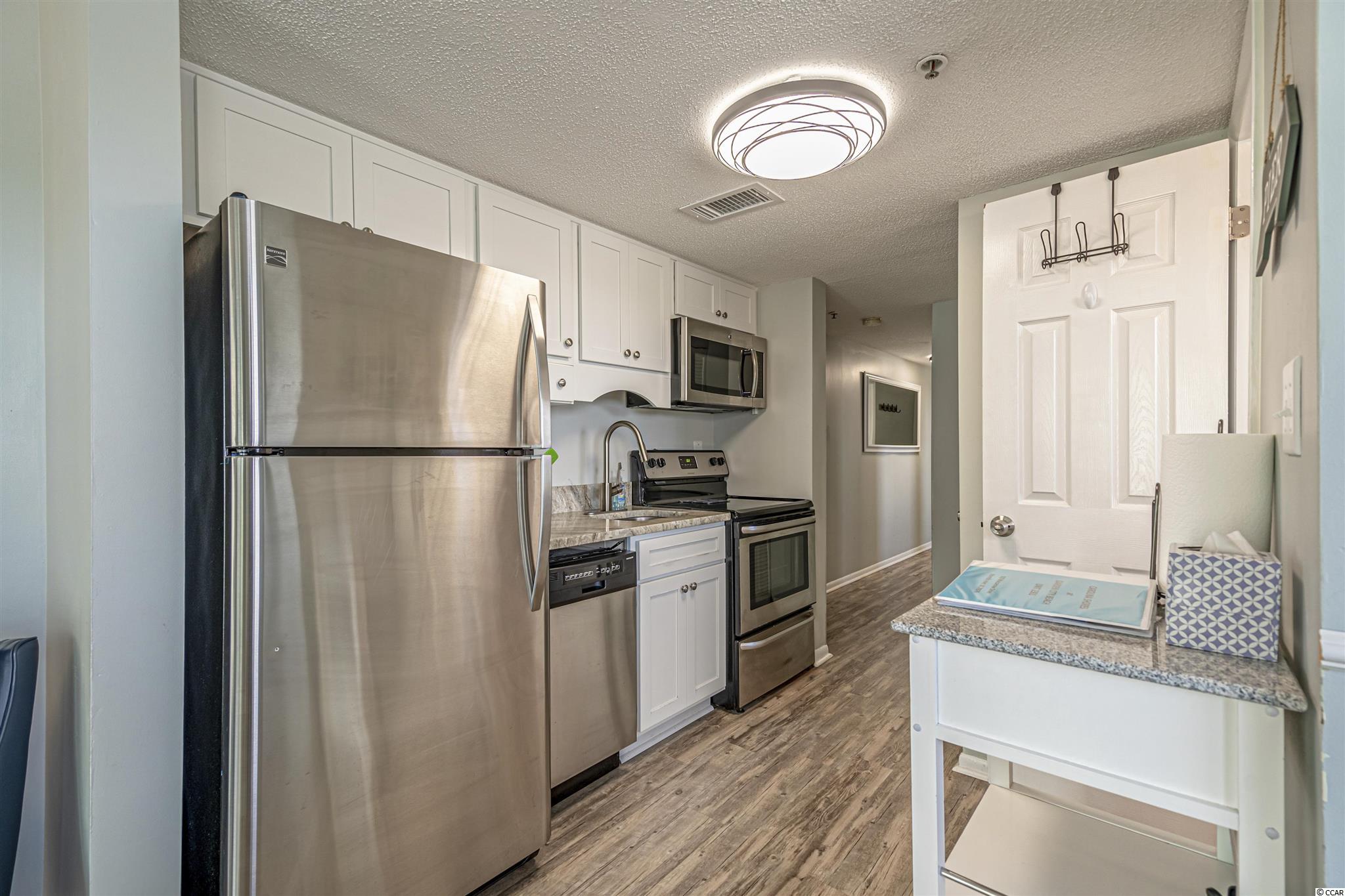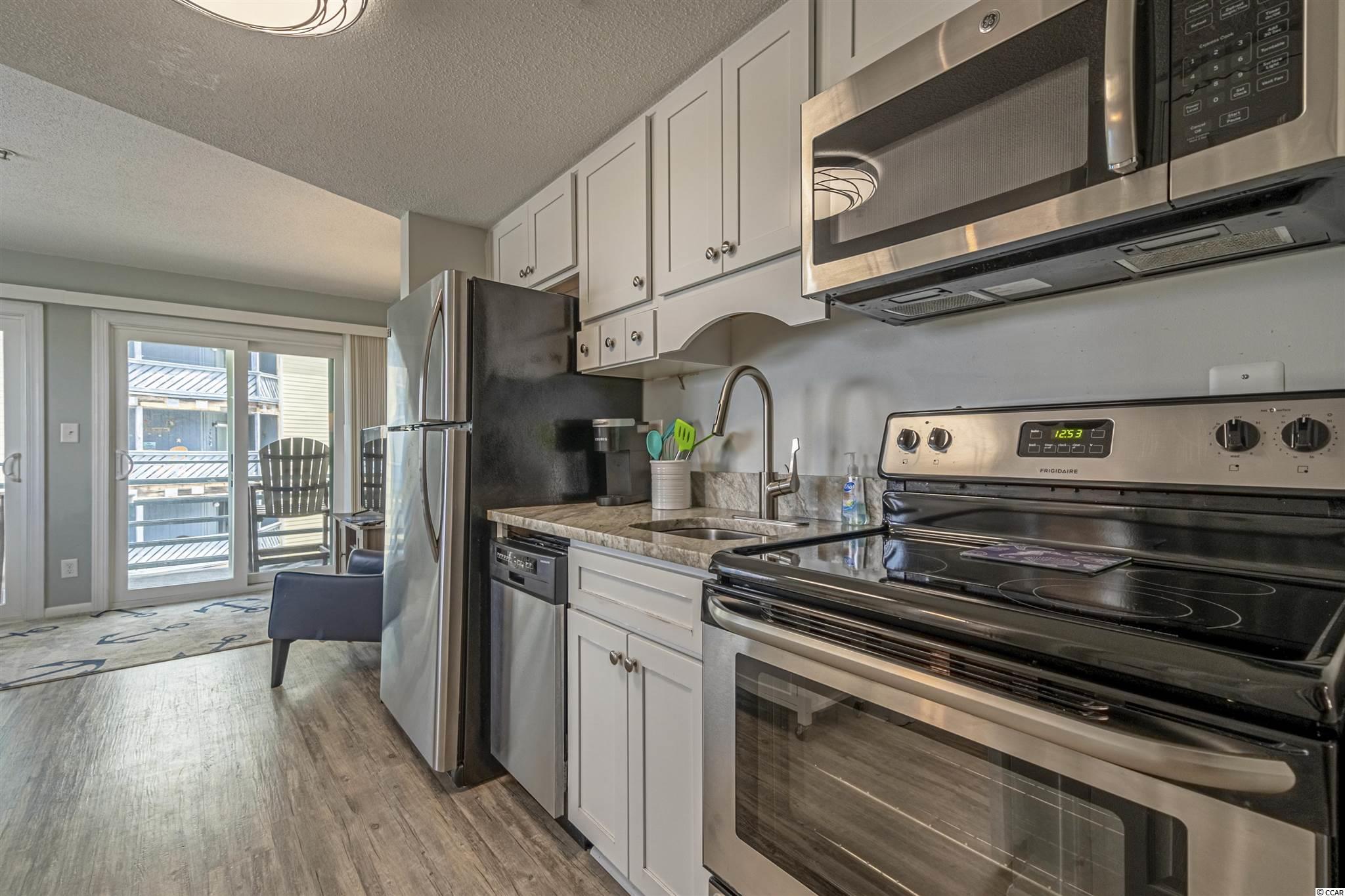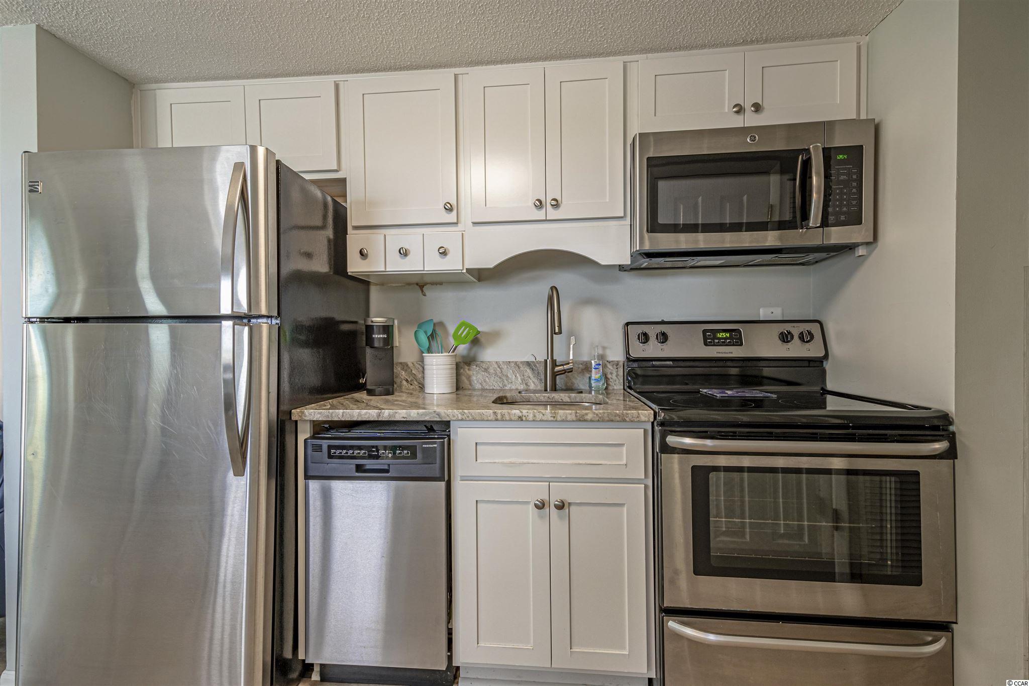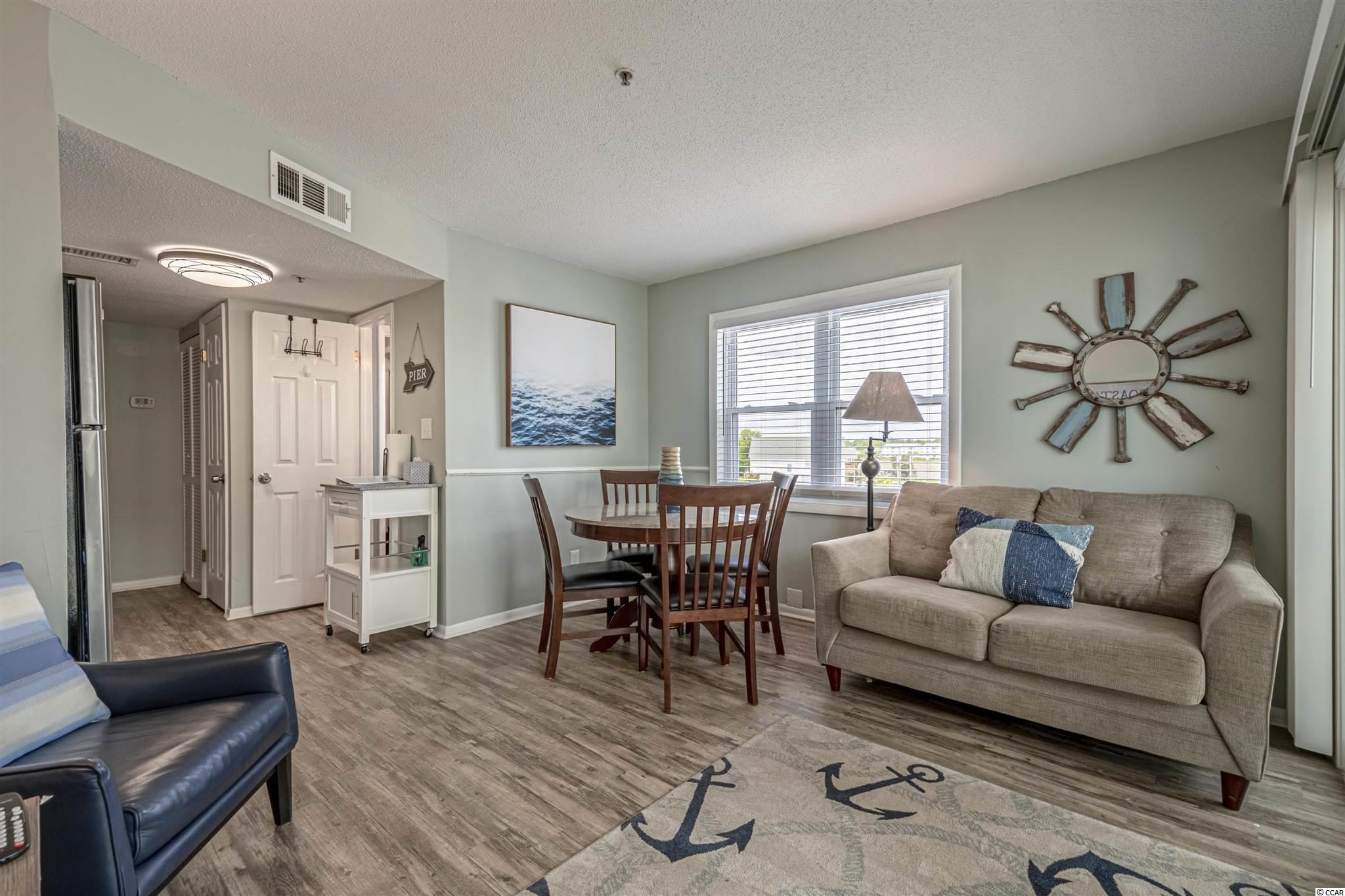This beautiful fully furnished, 2 bedroom, 1 bath end unit condo located in the highly desirable area of Garden City is totally turnkey. The HVAC was replaced in 2019. The balcony off the living area is a perfect place to sit outside and enjoy a morning cup of coffee or evening cocktail, with beautiful ocean views and new patio furniture. This unit has a full kitchen with granite countertops and stainless steel appliances. The full bathroom is also updated and has a double vanity and a large shower. This unit would make a perfect primary residence, 2nd home or investment property. Carolina Shores II is a beachfront property featuring a pool, direct beach access, elevator, and on-site laundry facilities. This condo is located in the heart of Garden City within walking distance to the Garden City Pier and near plenty of additional dining and entertainment. Call today this one won't last long.