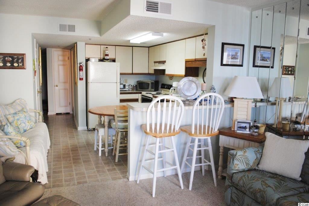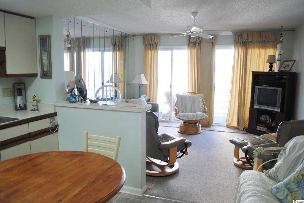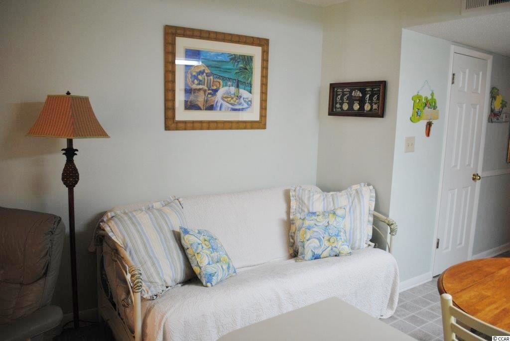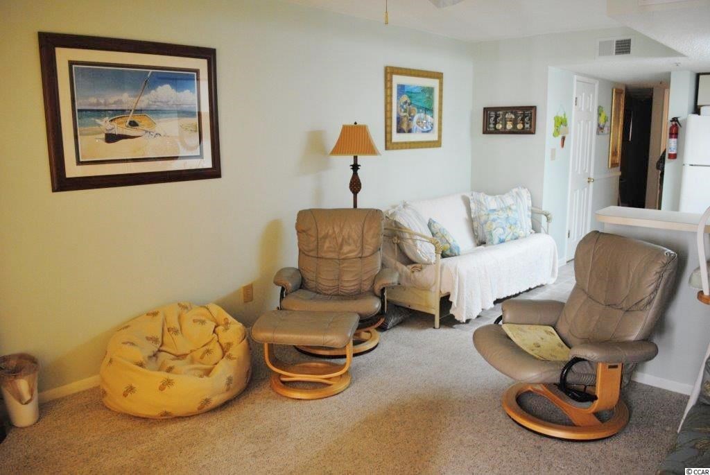 Looking for a condo in an oceanfront complex with magnificent ocean views, an oceanfront pool, an elevator, covered parking at an affordable price, you have found it! 2405 Carolina Shores' top floor location ensures privacy and quiet enjoyment. This 1 bedroom, 1 bath villa is selling furnished with a fully equipped kitchen complete with dishes, pots and pans! Fabulous ocean views can be enjoyed from the condos covered, private balcony as well as from the units comfy living room, kitchen, dining area and the front entry. The master bedroom with plenty of closet space is tucked away from the main living area providing a quite spot during the day or a restful sleep at night. Additional storage is offered by two storage closets in the hallway. Need more room for guest, a futon and a sleeper sofa are available if needed. Whether you decide to play on the beach, sit on your balcony, enjoy the pool, walk to the Garden City Pier, take a nap or take a walk, you can enjoy it all at 2405 Carolina Shores II! All measurements are approximate and the responsibility of buyer's agent and buyer to confirm.