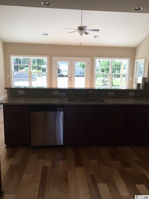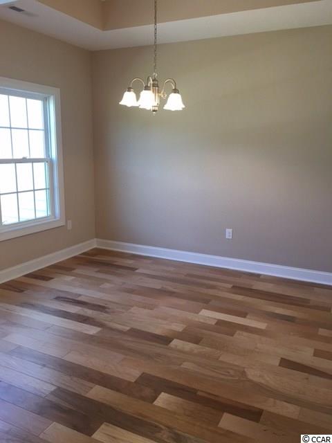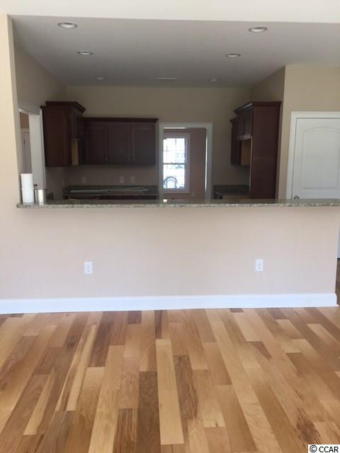 This Crape Myrtle has a relaxing 20 ft long front porch, a formal entry foyer, large dining room with tray ceiling. Hardwood floors in foyer, dining room, and great room. A very spacious and open living area with vaulted ceiling, a wall of windows and glass doors overlooking the 22 x 10 rear patio and back yard, adjacent to the 11 x 14 screen porch. Well equipped kitchen has solid wood cabinets with crown molding and pulls, stainless steel appliances, granite countertops, pantry and a breakfast bar open to the living room. Tile flooring in laundry, kitchen, and baths. Private master bedroom retreat with tray ceiling, ceiling fan with light, huge walk in closet, double sinks, garden tub plus separate walk in shower. Oversized fully finished 22 x 22 garage with door opener and pull down stairs to attic storage, and gutters. Builder was voted 2014 AND 2015 Best NEW HOME BUILDER! Established community with Owners pool, clubhouse, mature trees and landscaping. Convenient to the beach. Square footage is approximate and not guaranteed. Buyer is responsible for verification. Listing Agent is related to Seller.