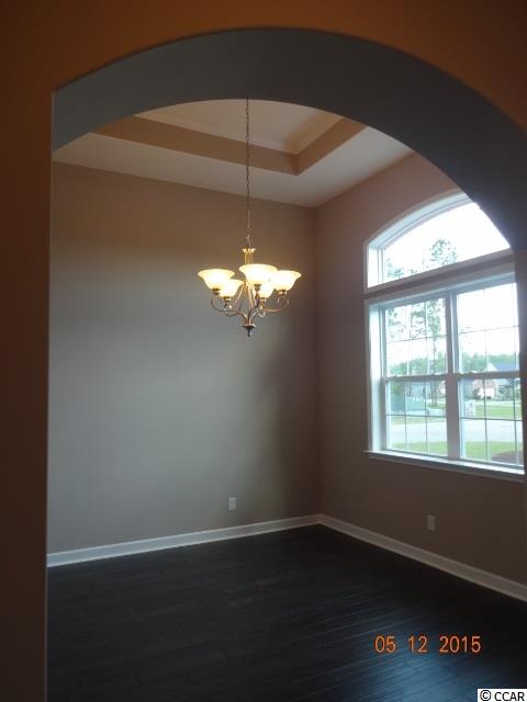Plan: Somerset - Newly completed and move in ready. This home has 3 bedrooms, 2 baths, 2 car garage with large covered veranda. 12' ceilings welcome you in a formal foyer which opens to a large open great room. Open kitchen and dining room. Large bedrooms all with plenty of closets. Upgraded trim package, brushed nickel lighting. Moen brushed nickel plumbing fixtures. The kitchen is fully equipped with Stainless steel appliances, butlers station with walk in pantry, 42"" Graphite cabinetry, granite counter tops. Ceramic tile is included in all wet areas of the home with hardwood and carpet in the balance of the home. Home sites come with landscaping, irrigation, and gutters on the front of the home. The home is prewired for the taexx pest control system. Carolina Forest is centrally located to shopping, hospitals, restaurants, and minutes to the beach. Call or visit our model for more information on our home plans and monthly incentives. RS Parker Homes is an Environmental for Living energy builder. This program is now standard in all RS Parker Homes and includes a eco valuation of your home plan, tight construction with sealed ducts, fresh air ventilation, combustion safety, air pressure balancing, internal moisture control, low e windows, right sized HVAC unit and improved thermal systems. This program has a limited heating, cooling and comfort guarantee for 2 years. Photo's are for representation purposes only. Subject to ARB approval.