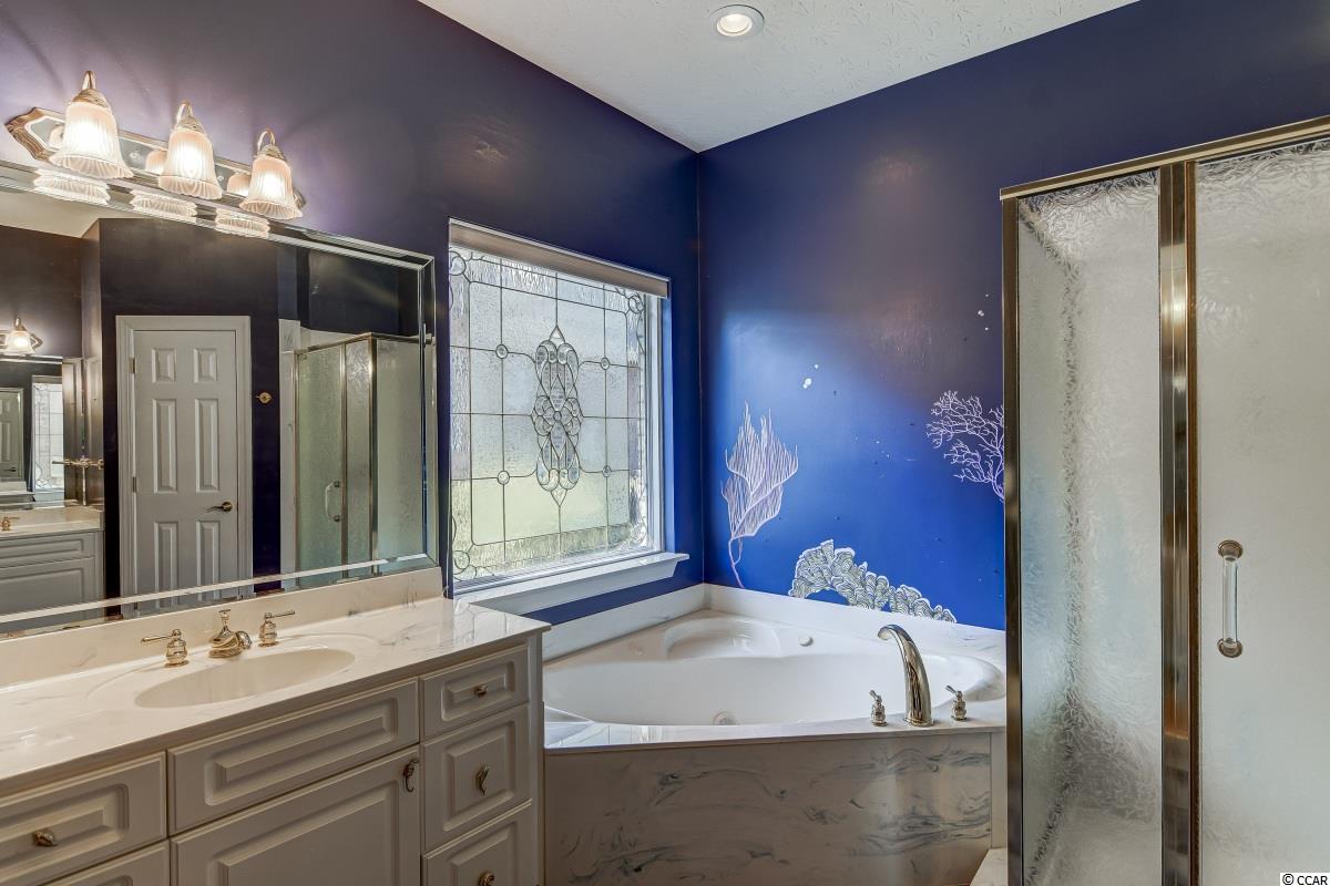 Beautiful 4 bedroom 3.5 bath custom all brick home in the very desirable Tidewater Plantation community of North Myrtle Beach! As soon as you walk up to the front door you can see the character of this home with the etched glass design on the door and the large arched window above. Inside, the spacious living room features a cathedral ceiling, real hardwood floors, a cozy fireplace, and 2 magnificent stained glass windows above the mantel! In the kitchen you will find tile floors, granite countertops, custom tile backsplash, a breakfast bar, plenty of cabinet space, a pantry, and a breakfast nook surrounded by 6 windows letting in lots of natural light! The formal dining room has french doors to the living room and a pocket door into the kitchen as well as charming wainscotting , a double window, and hardwood floors. The master bedroom features more of those lovely hardwood floors, a tray ceiling with a fan, several windows to brighten up the space, and double walk-in closets! In the master bath there are double sinks on separate vanities, a jetted tub, a glass enclosed shower, and a water closet. There are 2 additional bedrooms downstairs both of which have ceiling fans; one of them even has a vaulted ceiling, arched top double window, and 2 separate closets! These 2 bedrooms share a full bath with a glass door shower/tub combo. The first floor also has a powder room for guests and a laundry room with a utility sink! Upstairs is a massive bonus room that can be used as the 4th bedroom and it even has a full bath with a glass door shower! Outback there is a large back deck perfect for entertaining and it looks out to the golf course! This spectacular home is located in Tidewater Plantation which is known for its quiet southern charm and captivating view of tidal marshes & the ICW, as well as the very popular Tidewater Golf Course! Tidewater Plantation offers incredible amenities like 5 pools, tennis courts, an amenity center, a fitness center, and its very own restaurant on site the Tidewater Grille! Another huge perk to being an owner in Tidewater is the access to the oceanfront beach cabana in Cherry Grove! Owners at Tidewater Plantation also have the option to purchase annual memberships for the Tidewater Golf Course! Dont wait, come see this superb home before its gone!
