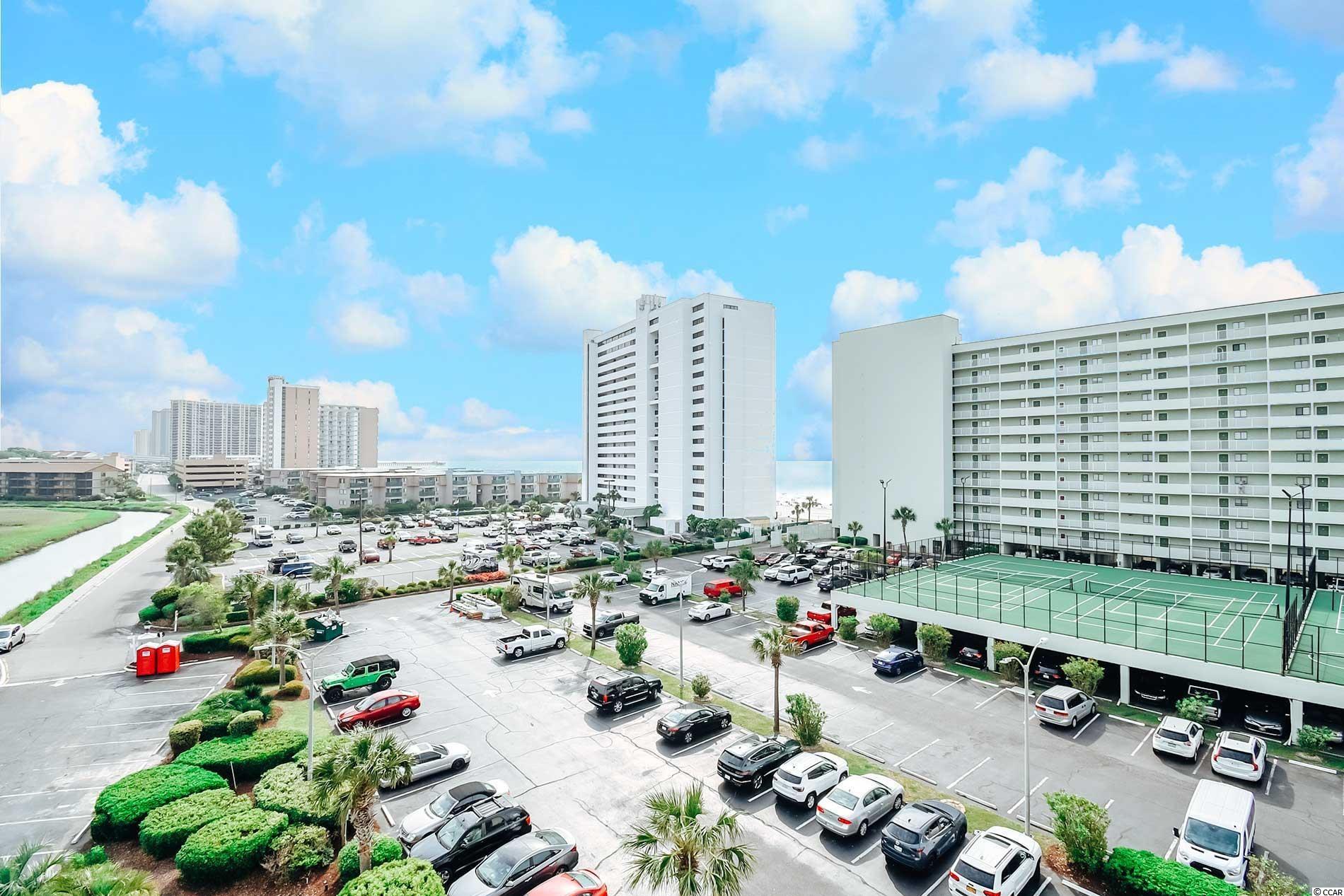 Your new beach paradise retreat is now available and now waiting on you at Sands Beach Club. This two bedroom, two bath end unit (closest to ocean) at Sands Beach Club I features one of the best ocean views in Myrtle Beach. From your private balcony you will enjoy great views of the marsh, ocean, pool, and Dunes Club, While this is privately located at the front end of the building (closest to the ocean) your new beach home is located at the very end of Shore Drive where the only sounds you hear will be the birds and fauna of the marsh and the ocean waves lapping out front yet, you are just steps away from onsite fine dining, activities, and entertainment up and down Shore Drive, Restaurant Row, and the Arcadian Area. Enjoy the secluded pool and hot tub below that overlooks the marsh and ocean or step just twenty yards away to sun and swim at the large pool deck that also connects to an indoor pool for the winter months which also connects to Sands Beach Club II. For your recreation and physical activity, you have tennis courts, basketball court, and exercise room to enjoy. After activities of the day, take the elevator back up to your beach condo where you will take in the sea breeze and enjoy some of the most magnificent sunsets that Myrtle Beach has to offer from your south facing private balcony. In this beach retreat, recent renovations and additions include: laminate flooring in living area, kitchen, bedrooms and baths, refrigerator and microwave, ceiling fans, TVs, vanity, tub, and window treatments. A new water heater was installed in 2017 and new HVAC in 2016. This Sands Beach Club I condo for sale also allows you to bring your pet, as an owner, to enjoy your new beach home with your pet by your side.