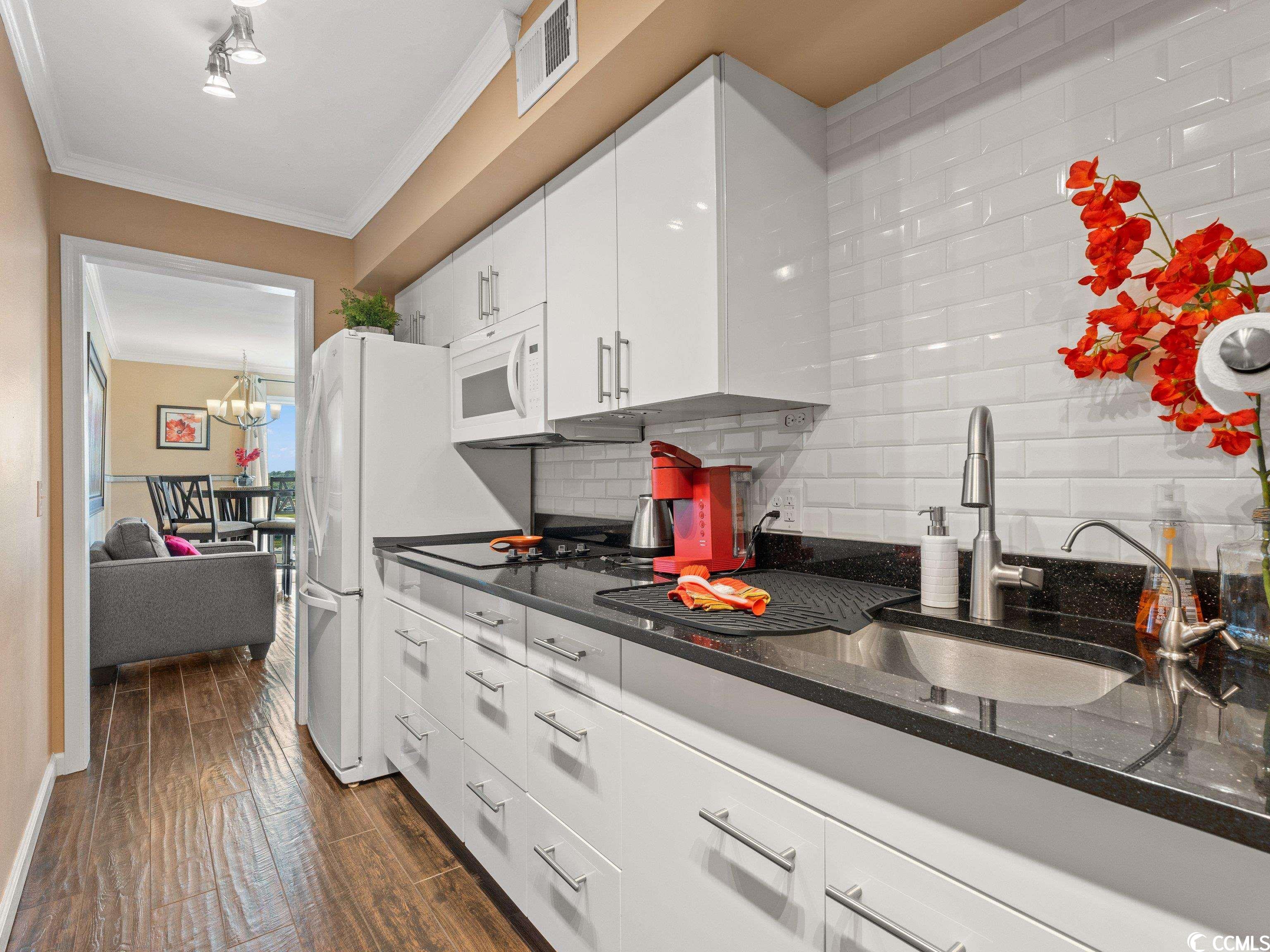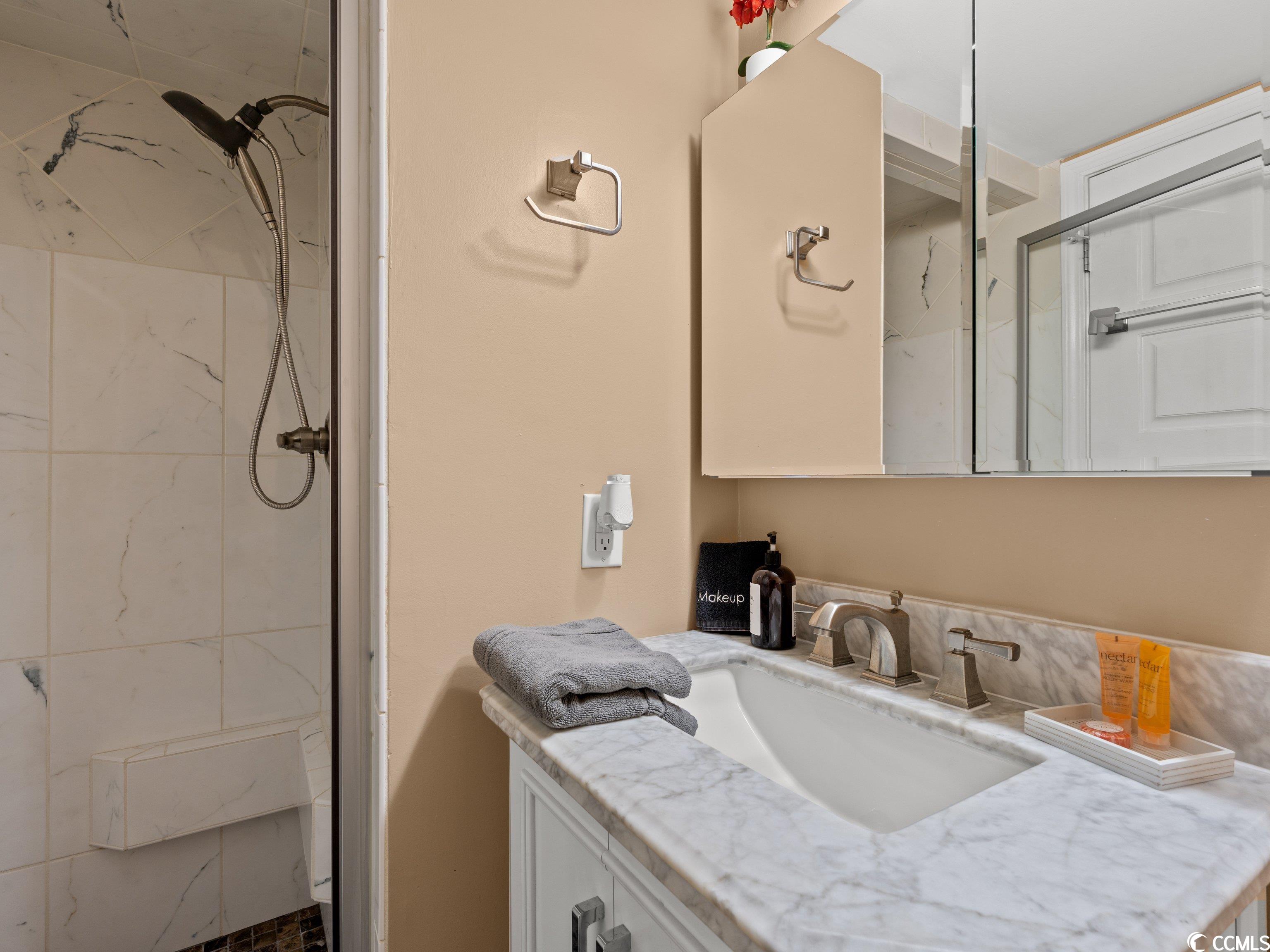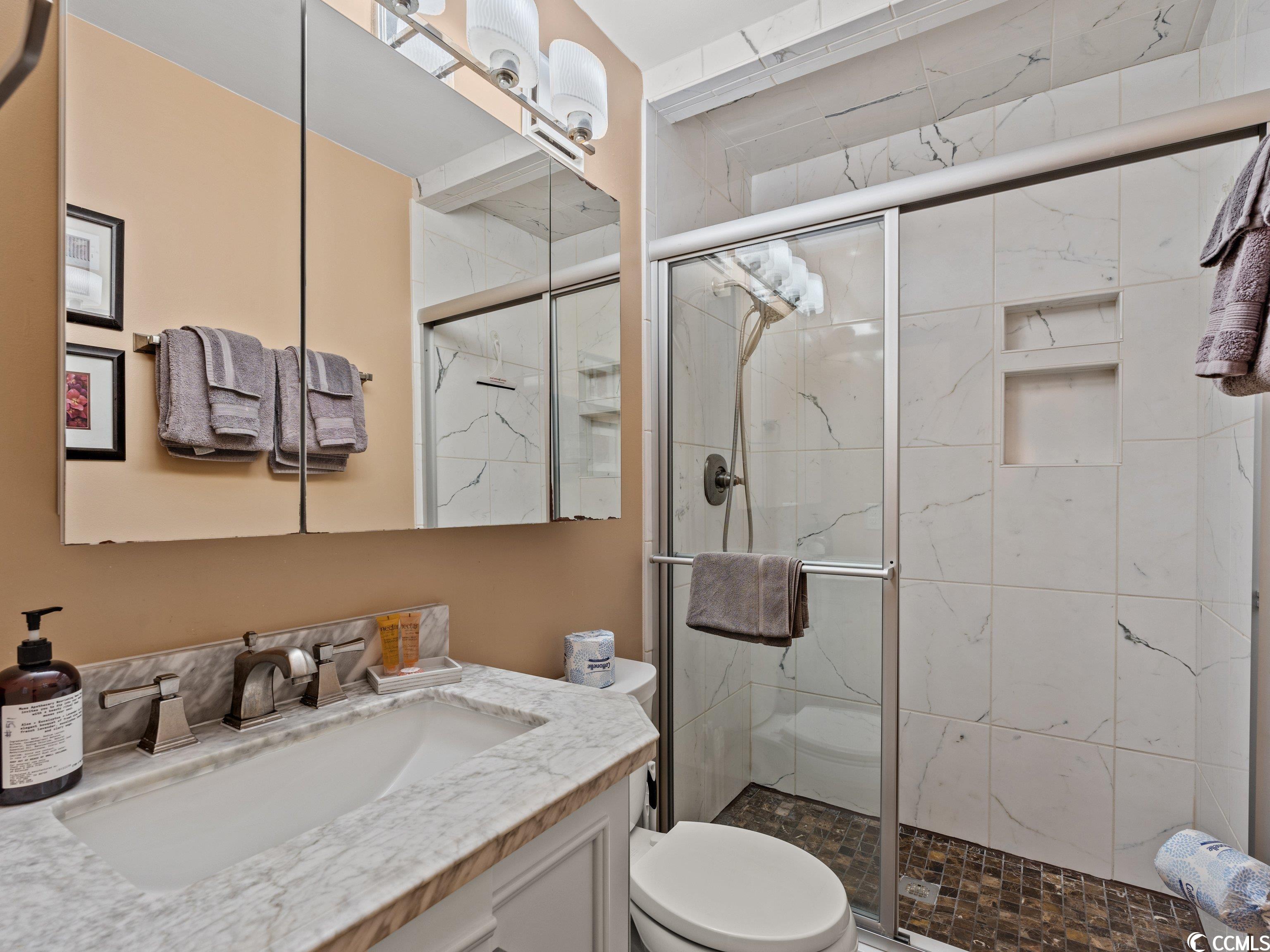 This beautifully updated 2-bedroom, 2-bathroom condo offers the perfect blend of comfort, luxury, and breathtaking natural surroundings. Situated in Sands Beach Club I, this condo boasts stunning ocean and marsh views that will take your breath away. This condo has undergone a complete renovation, to include the ceramic plank floor, granite countertops in the kitchen ,cabinetry and appliances, tile in shower with glass doors and marble top vanities, all to ensure modern and stylish living and renting spaces. From the moment you step inside, you'll be greeted by a fresh and contemporary design. The generously sized master bedroom provide ample space for relaxation after the beach day and en-suite master bath has been tastefully updated with modern fixtures and finishes, providing a spa-like experience. The open-concept living area seamlessly connects the living room, dining area, and kitchen. This layout is perfect for entertaining guests and maximizing the incredible views from every angle. The large windows /sliding door flood the room with natural light and offers serene views of the ocean and marsh. The resort offers 2 outdoor pools, one is heated, one jacuzzi and one kiddy-pool and indoor pool, tennis court, a gym, a restaurant and its a non smoking property. Walking Distance to the Beach: With the beach just a short stroll away, you can relish in the soothing sounds of the waves, sunbathe, build sandcastles, or take long walks along the shoreline of Atlantic Ocean. Don't miss your chance to make this exceptional property your new home or investment opportunity.