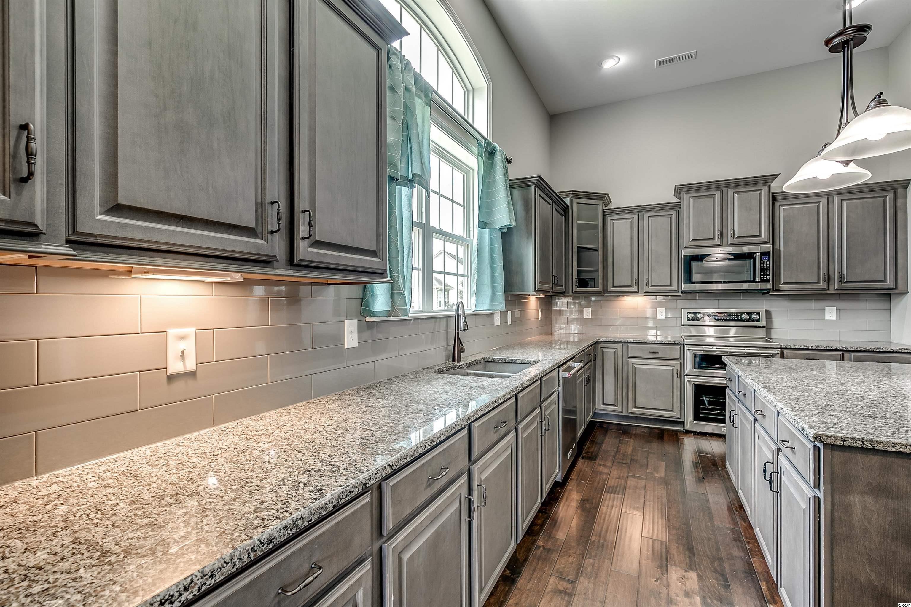 A must see R.S. Parker Home in this most desirable development of Waterford Plantation. This beautiful 4 BR / 3.5 BA features a formal dining room, large great room with gas fireplace and built-in bookcases, large gourmet kitchen with stainless steel appliances, extended island counter, custom cabinets, butler's pantry, and walk-in pantry. The Master bedroom is located on the 1st floor featuring tray ceiling, sitting area and his/her closets, master bath with his/her vanities, walk-in shower & Jacuzzi tub. Additional 2 bedrooms and full bath are also located on the 1st floor. Second floor feature a 4th Bedroom, huge bonus room and a full bath. Additional features include screened in porch, beautiful landscaped and fenced in back yard and a home Generac generator system. Waterford Plantation has great amenities including a community pool and clubhouse. This home is near access to Hwy 501, Hwy 31, hospitals, Coastal Carolina University, and all that the Grand Strand has to offer All measurements and square footage are approximate and not guaranteed. Buyer is responsible for all verification.