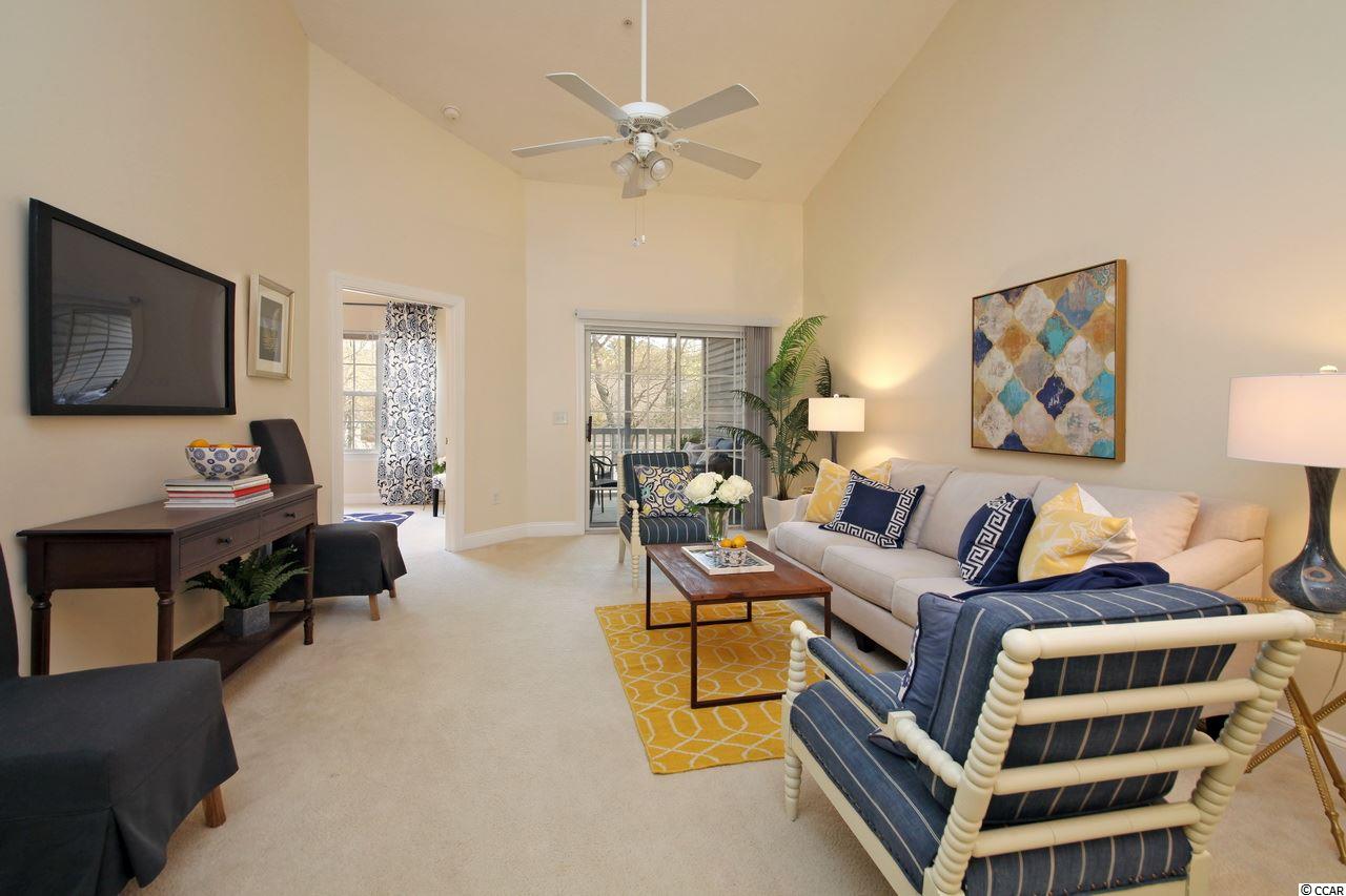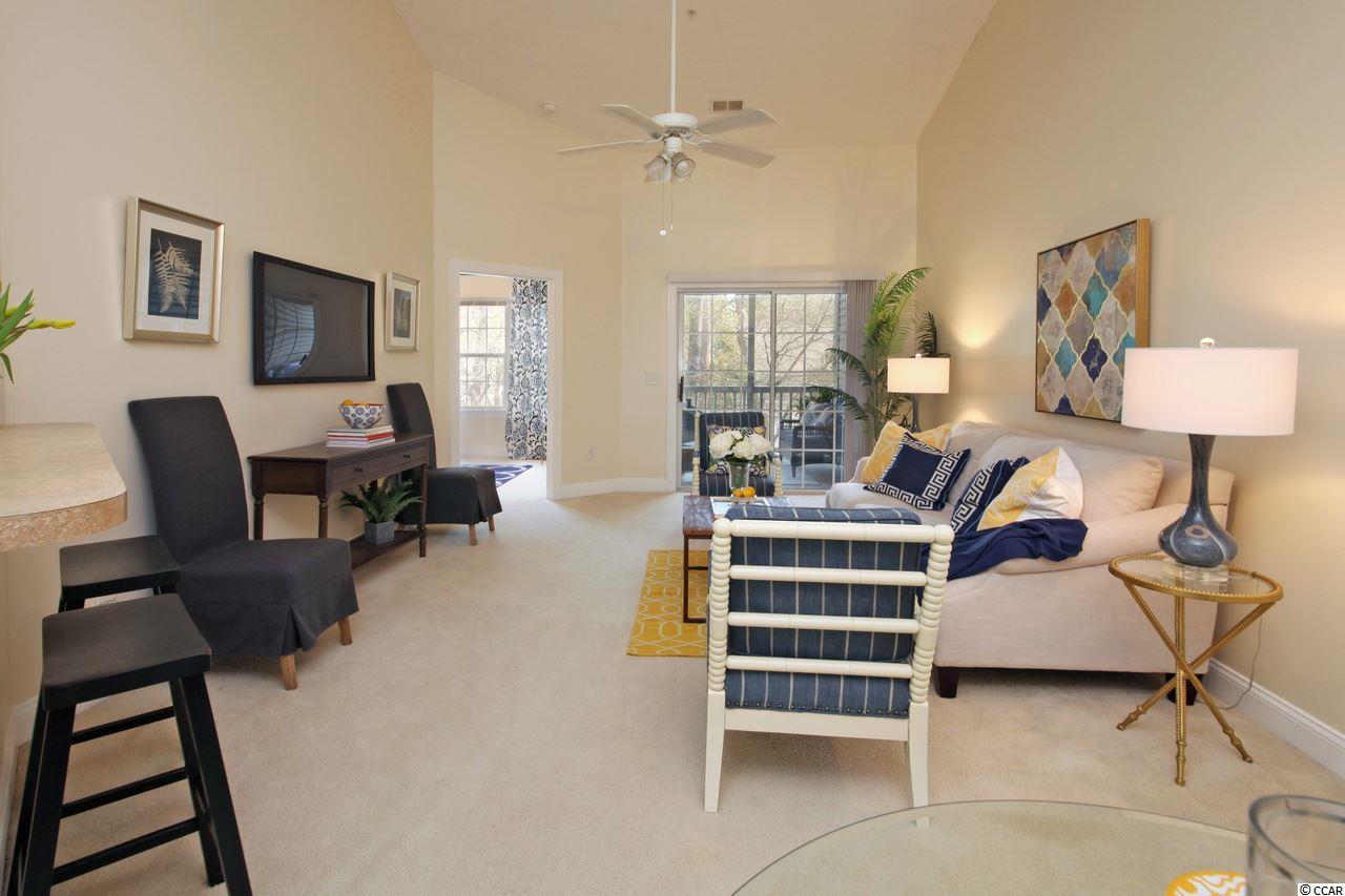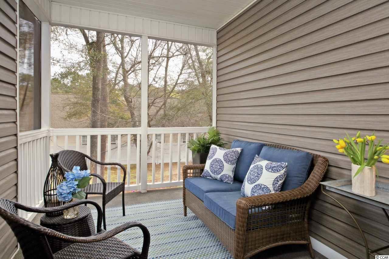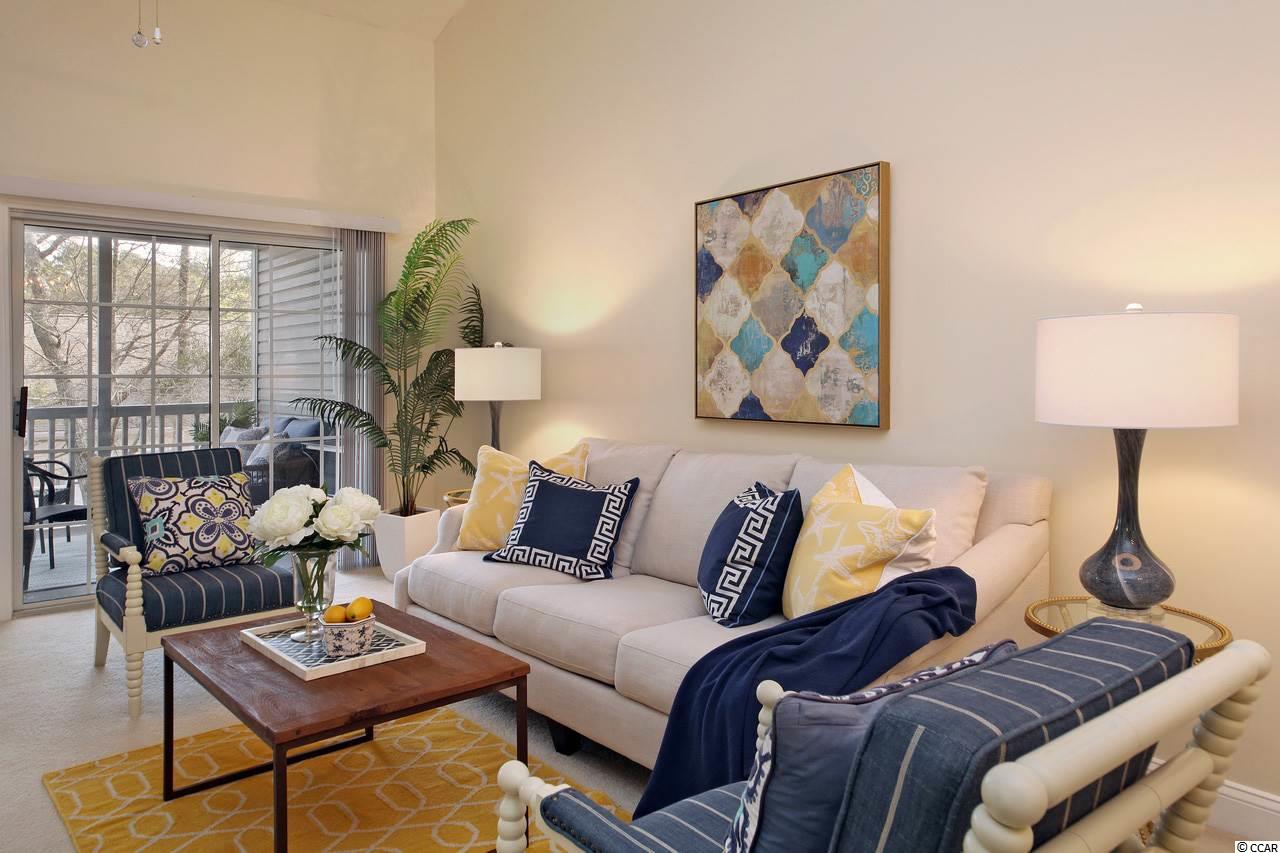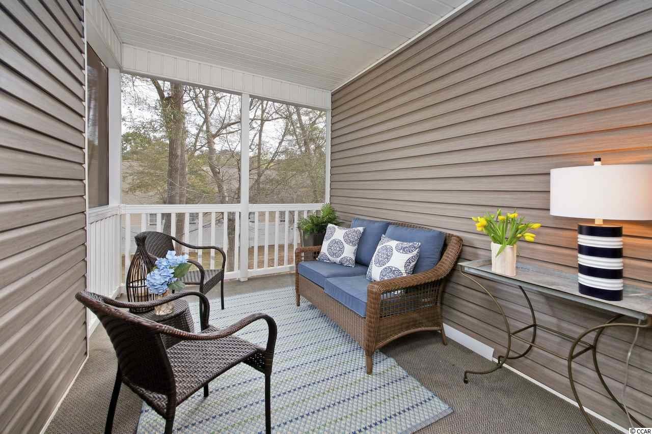 Pretty as a picture; come move right in! LOCATION IS EVERYTHING! Just minutes to beaches, shops, grocery stores, restaurants, golf, marinas and entertainment! Come live at the beach and Always be on vacation! Small private and gated community with great pool! Top floor of two story building located toward the back of the complex near the community park and walking trail. Vaulted ceilings and great private screened porch in the trees! Plenty of private storage on the ground floor for golf clubs and beach chairs! conveniently located. No short term rentals allowed. if square footage is important it is the responsibility of the buyer to verify. Window treatments in master bedroom do not convey.