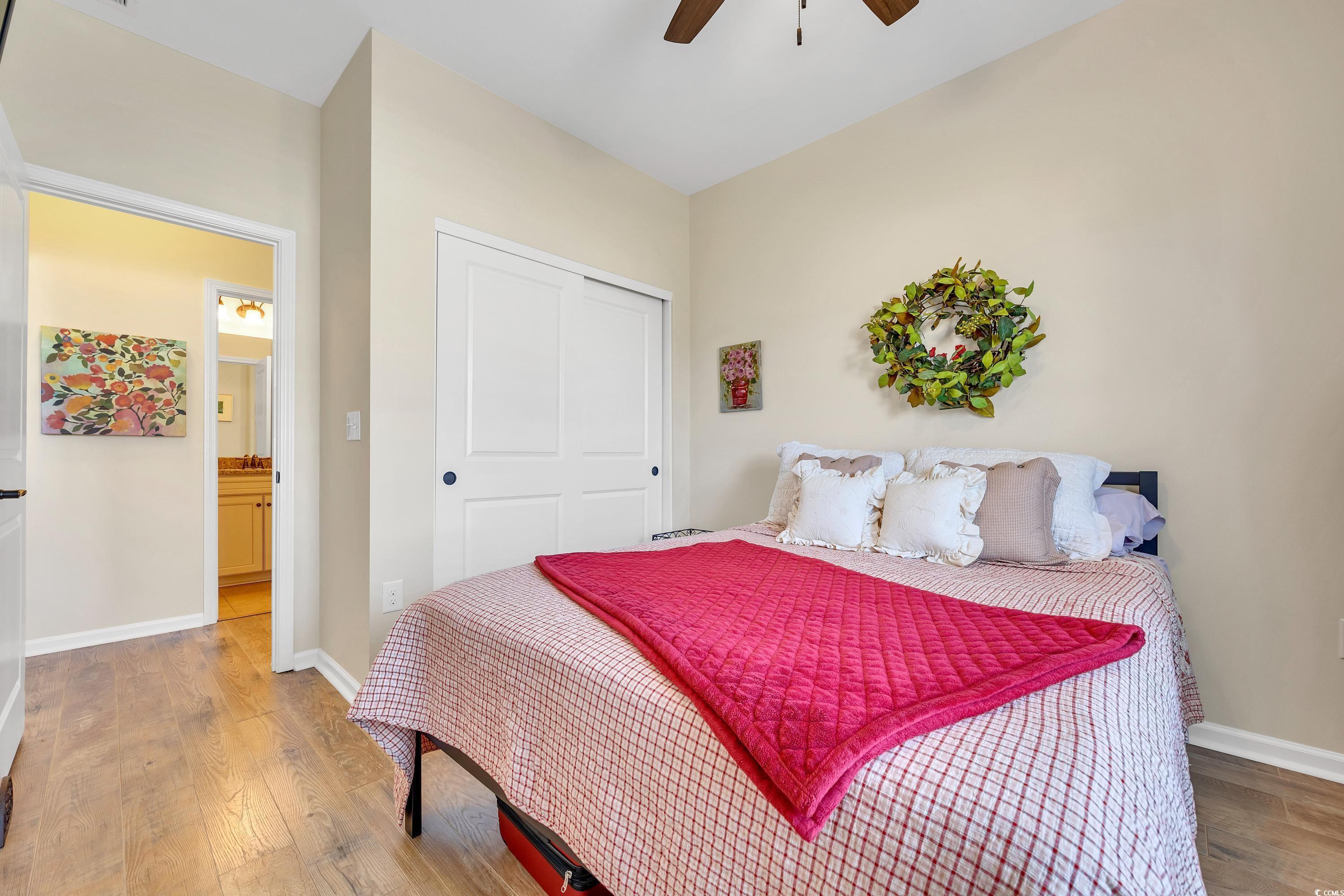 Must see this Hawthorne Duet in Berkshire Forest! It is a dream! Built in 2017, it was used as a second home until a short time ago. Recently painted (2023) gives it a fresh and welcoming feel. The extra square footage in the sunroom is a definite plus and hardwood throughout the house adds an elegant touch. Storage seems to be abundant, with extra shelving in various areas making it perfect to keep things organized. The newer washer and dryer (2022) are another great feature ensuring modern convenience. Central air along with ceiling fans in every room make living comfortable. Having a fenced paver patio makes outdoor gatherings and grilling easy. The easy installation of lightweight hurricane shutters is a significant bonus. They are stored very compactly on the epoxy garage floor. Hawthorne Duets have a private pool as well as enjoying the impeccable amenities of Berkshire Forest such as pools, lazy river, fitness center, bocce, pickleball and a 32-acre lake. Overall, this property is a fantastic find with its combination of comfort and convenience to shopping and beaches. This property is a true lock and leave and is perfect for care-free living or a vacation home. Hurry, this property will not last long.
