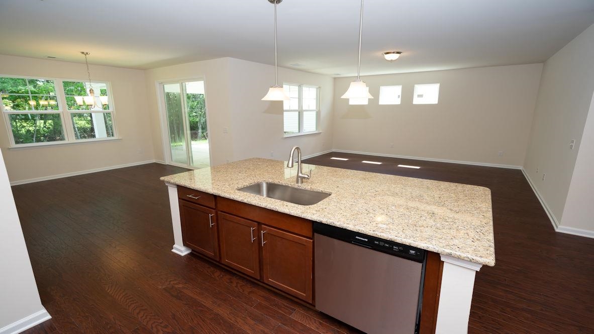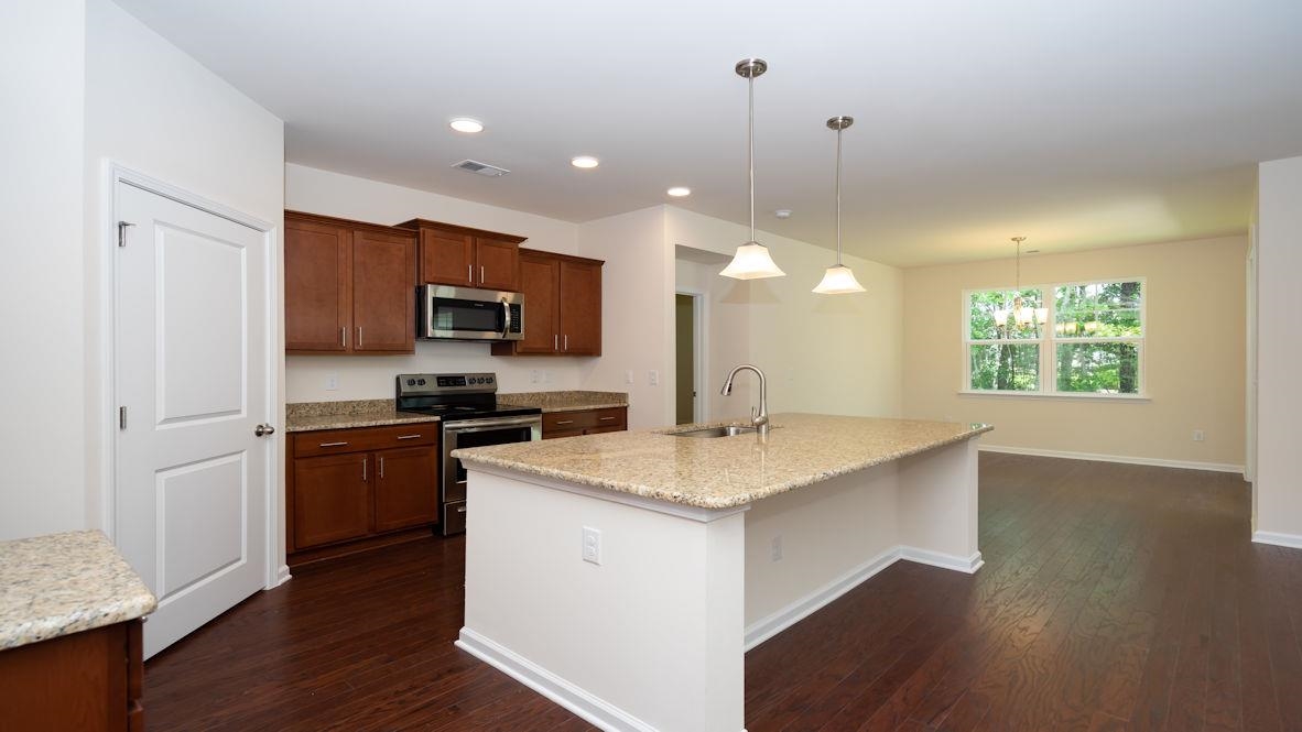 Enter this stunning home from the welcoming front porch through an 8' front door into the large foyer. Split bedroom floorplan with two private guest rooms and full bathroom at the front of the home. The Bradford home offers the popular open-concept kitchen, living and dining rooms! Oversized granite counter height kitchen island, perfect for entertaining, overlook the family room and dining rooms with laminate hardwood floors running throughout the main living areas. The spacious kitchen offers stainless appliances (including gas stove), plenty of cabinet and counter space, and a large walk-in pantry. Huge owners' suite in the back of the home with a great size owners' bath that offers double bowl vanity, 5 ft. tiled shower, and large walk-in closet. Sliding doors off the dining area lead to the 8 x 12 covered porch. This is America's Smart Home! Each of our homes comes with an industry leading smart home technology package that will allow you to control the thermostat, front door light and lock, and video doorbell from your smartphone or with voice commands to Alexa. *Photos are of a similar Bradford home. (Home and community information, including pricing, included features, terms, availability and amenities, are subject to change prior to sale at any time without notice or obligation. Square footages are approximate. Pictures, photographs, colors, features, and sizes are for illustration purposes only and will vary from the homes as built. Equal housing opportunity builder.)
