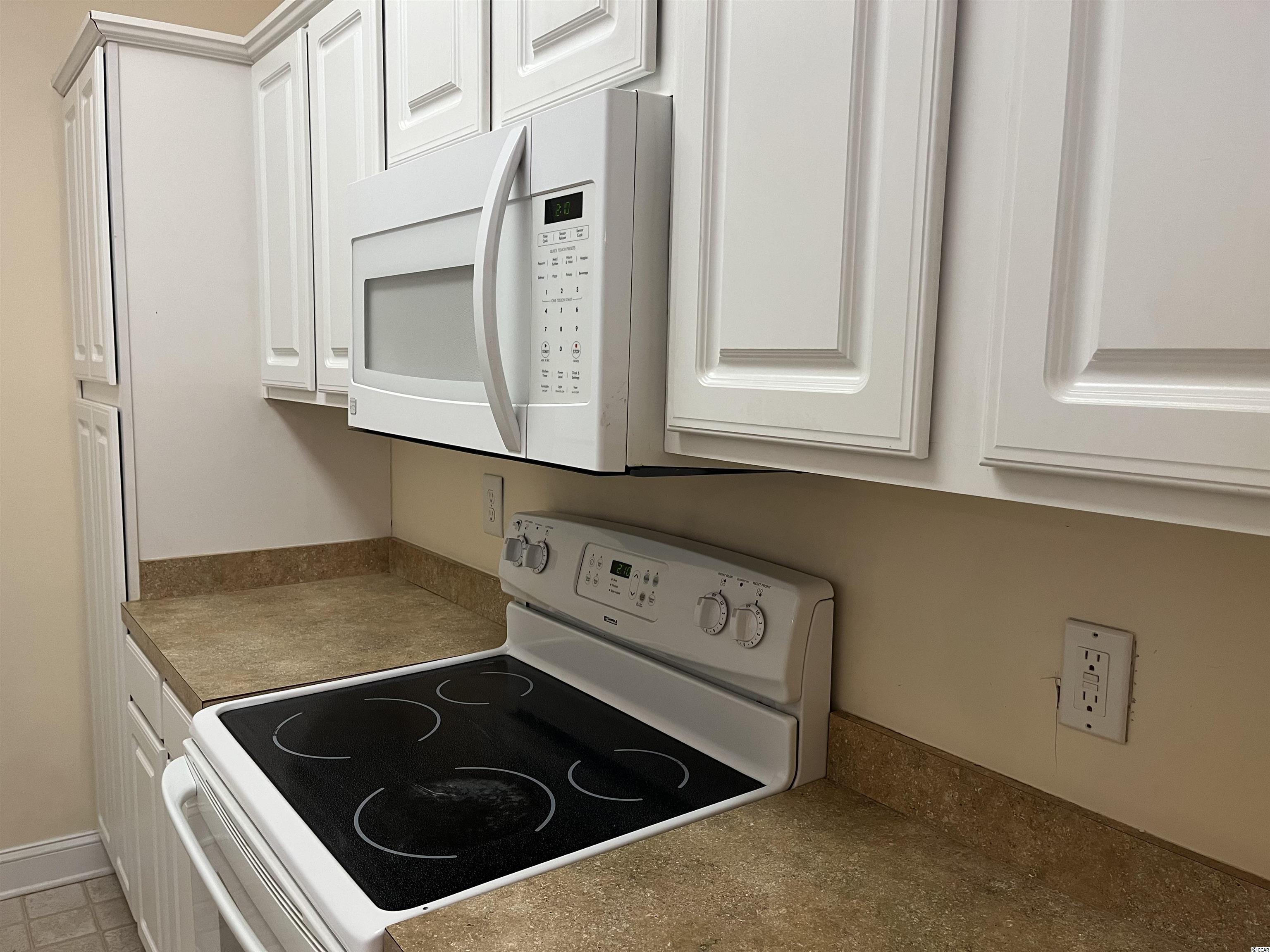First floor unit nestled in this gated community of Pawleys Pavilion and only one building over from the community pool. Very nice entranceway foyer giving access to two guest bedrooms and full bath and allows added privacy with this split bedroom floorplan. Your galley style kitchen boost lots of cabinet storage with additional cabinetry for pantry space, extended countertops to include a breakfast bar and features a Kenmore dishwasher and smooth top range. Dining/ Living room combo gives that open floor plan concept with plenty of room to enjoy. Owner's suite with triple vinyl windows allowing additional natural sunlight, ceiling fan, double closet space and an ensuite bath featuring large counter space vanity and garden tub. A private screen porch allows you to enjoy your morning coffee or your afternoon downtime. Litchfield Beach/Pawleys Island community is famous for its championship golf courses, boutique shopping, many incredible restaurants, fresh and saltwater fishing, biking and walking trails, Intra-Coastal Waterway for boating and of course, its wide sandy beach.