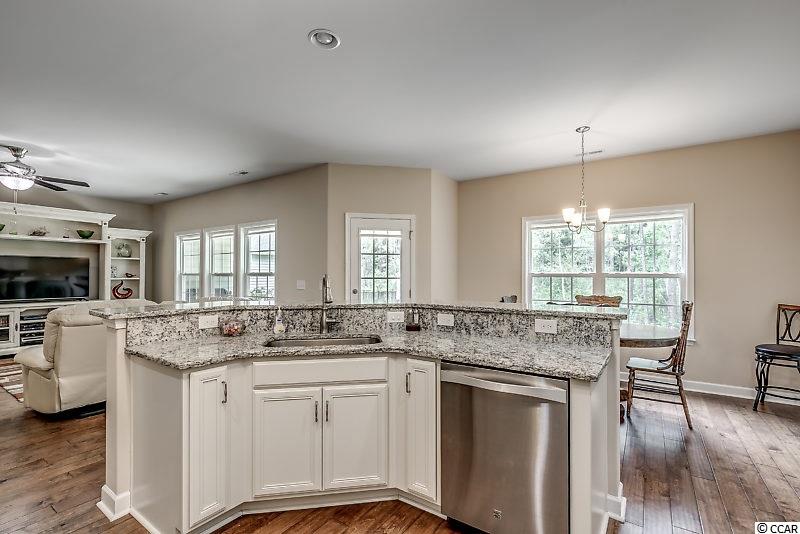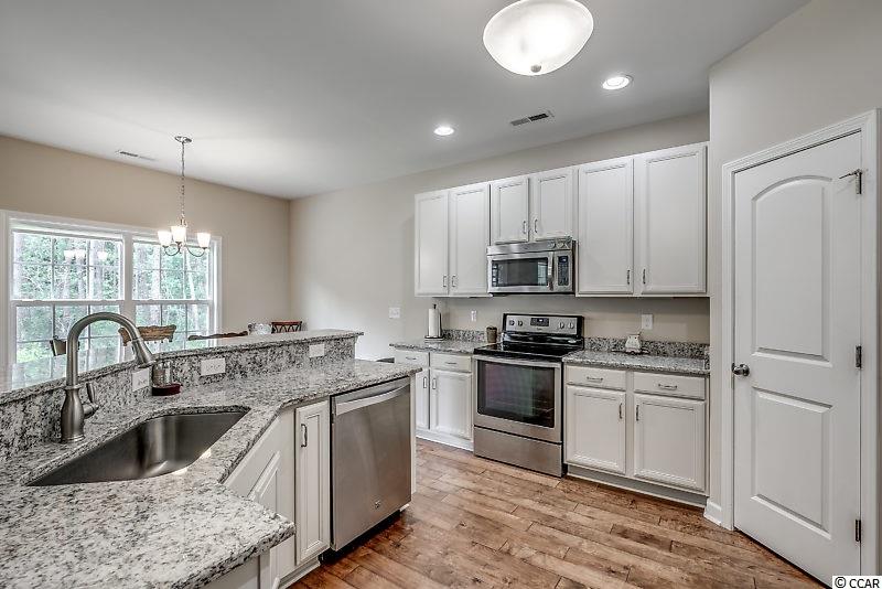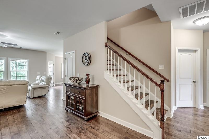 Better than new! This custom built 5 bedroom, 3 bath pristine home is located in the highly sought after Waterford Plantation. It features a spacious living area with hand scraped hardwood flooring, giving you a warm, classic touch. The modern kitchen has all the upgrades, stainless steel appliances, 42 inch cabinets, granite countertops, and under cabinet lighting. Master bedroom offers trey ceilings, a spacious bathroom with dual sinks, garden tub, and a walk in shower. First floor also provides you with two more bedrooms that share a full bath and plenty of closets for storage. Upstairs there are two bedrooms sharing a third full bathroom as well as a versatile bonus room. Each bedroom has newly upgraded carpet throughout . With an oversized garage and extended driveway youll have plenty of room for parking. The home sits on a beautifully landscaped lot with an extended patio overlooking conservation woodlands. You can enjoy all the amenities Waterford Plantation has to offer such as a junior olympic pool, tennis courts, a fitness center, basketball, volleyball, and much more. Dont miss the opportunity to live within minutes of sandy beaches, top rated schools, shopping, and all the Grand Strand has to offer .