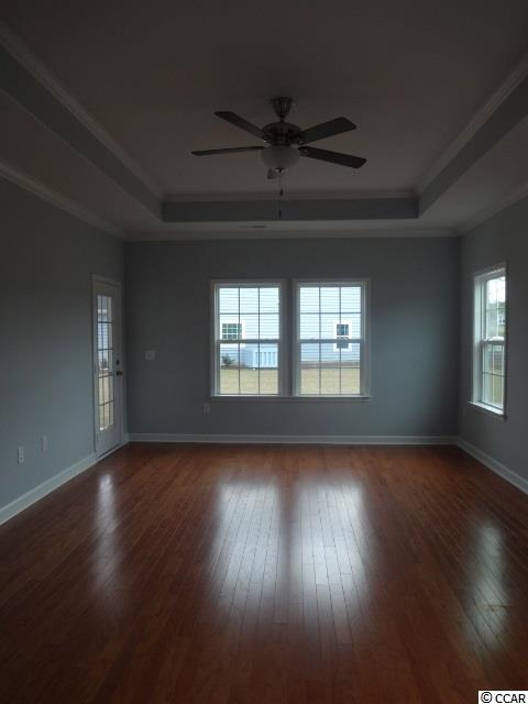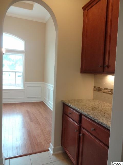 Plan: Somerset This has 3 bedroom, 2 baths, 2 car garage with large covered veranda. 12' ceilings welcome you in a formal foyer which opens to a large open great room. Open kitchen and dining room. Large bedrooms all with plenty of closets. Upgraded trim package, brushed nickel lighting. Moen plumbing fixtures. The kitchen is fully equipped SST Whirlpool appliances, butlers station with walk in pantry, 42"" cabinetry, granite counter tops. Ceramic tile is included in all wet areas of the home. Hardwood floors in the foyer, dining, hall to bedrooms 2/3 hall to garage and family room, carpet in all bedrooms. Customer has added built in bookcases around the fireplace and various additional electrical fixtures throughout the house. The dining room has Wainscoting. Crown molding has also been added to the foyer, dining, great room and master bedroom. Master bedroom has optional exterior door to veranda. Master bath has granite counter tops, tiled shower and tub surround and extra shower head. The Home sites come with landscaping, irrigation, and gutters on the entire home. A separate patio slab has been poured. The home is prewired for the taexx pest control system. Carolina Forest is centrally located to shopping, restaurants, hospitals and just minutes to the beach. RS Parker Homes is an Environments for Living builder. Photo's are for representation purposes only. Subject to ARB approval.