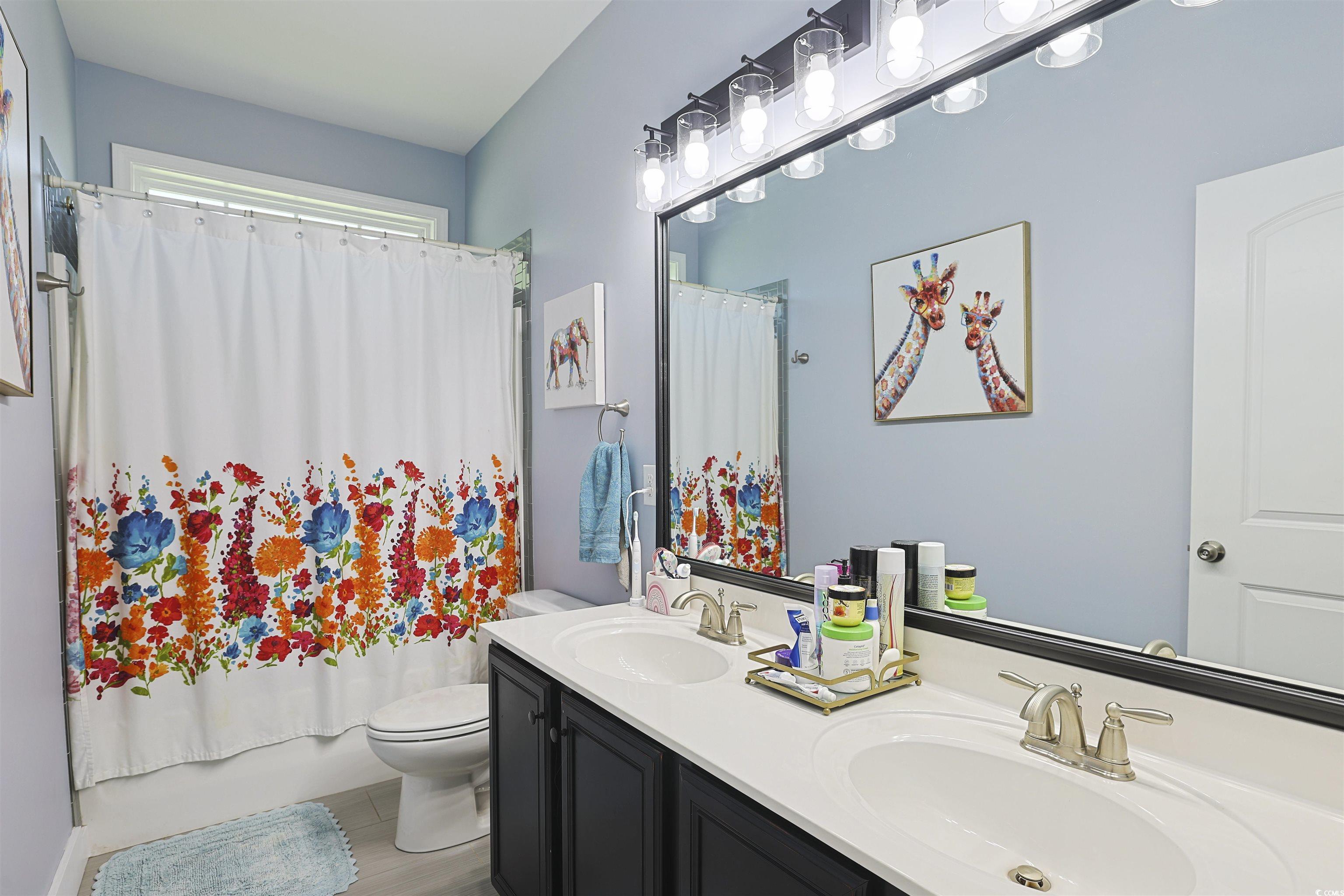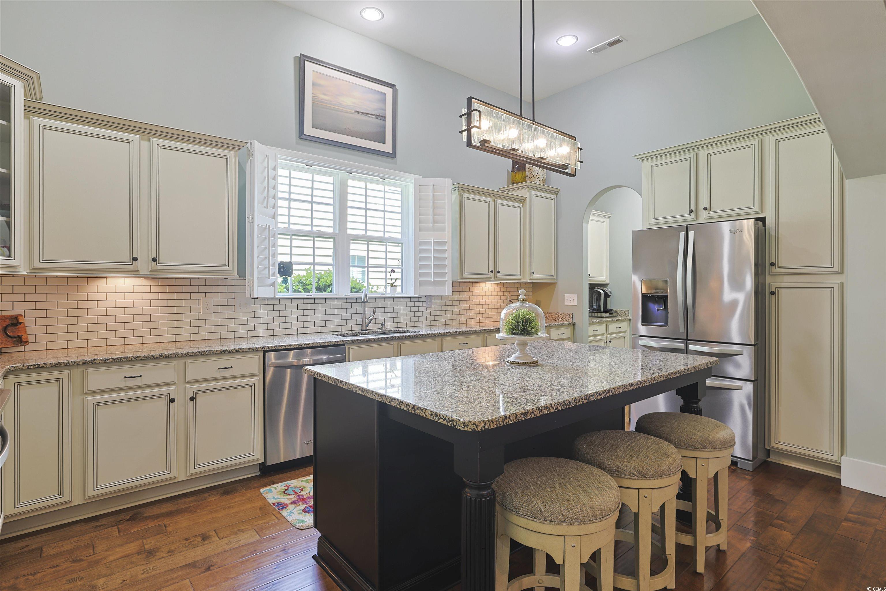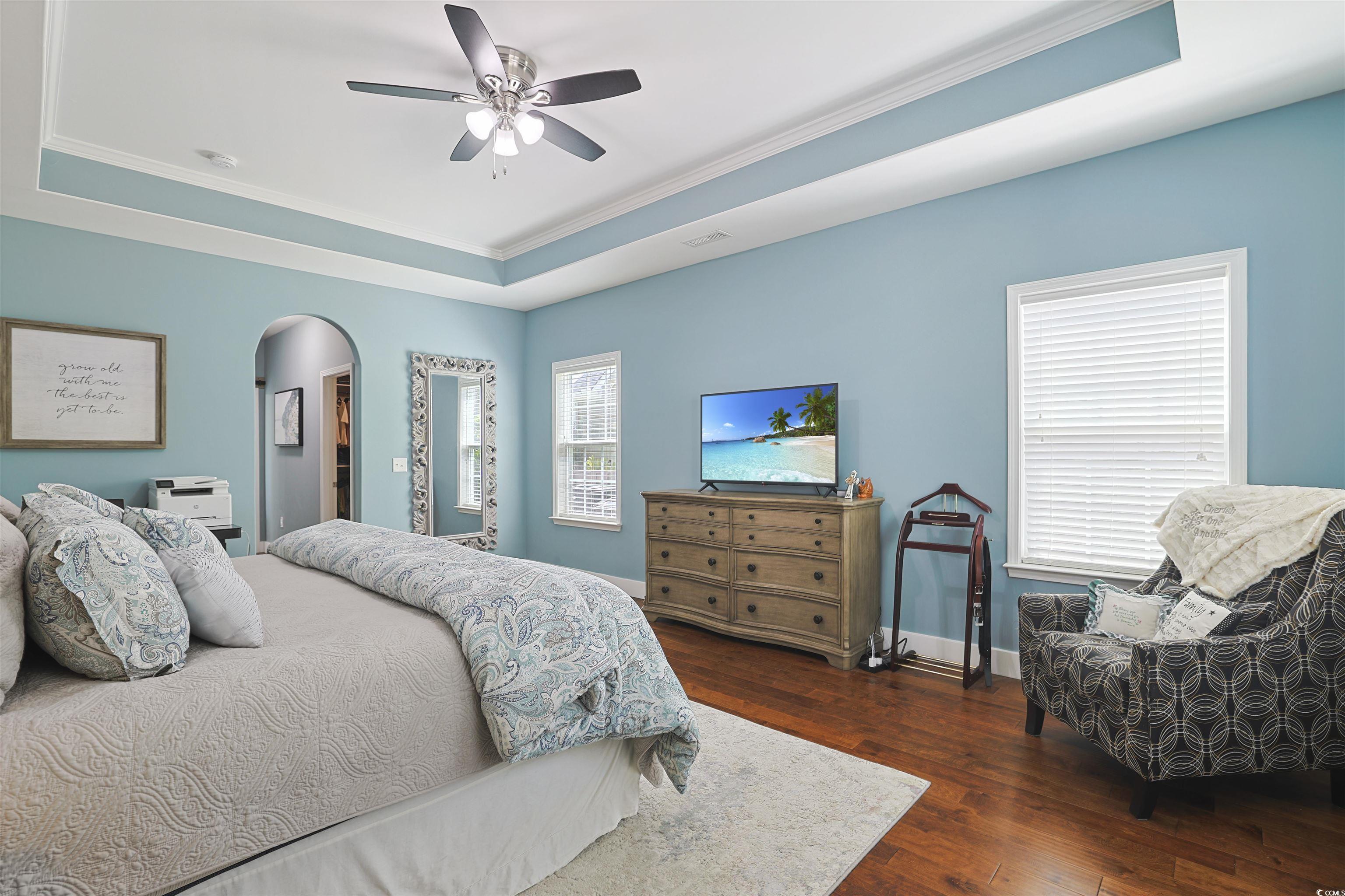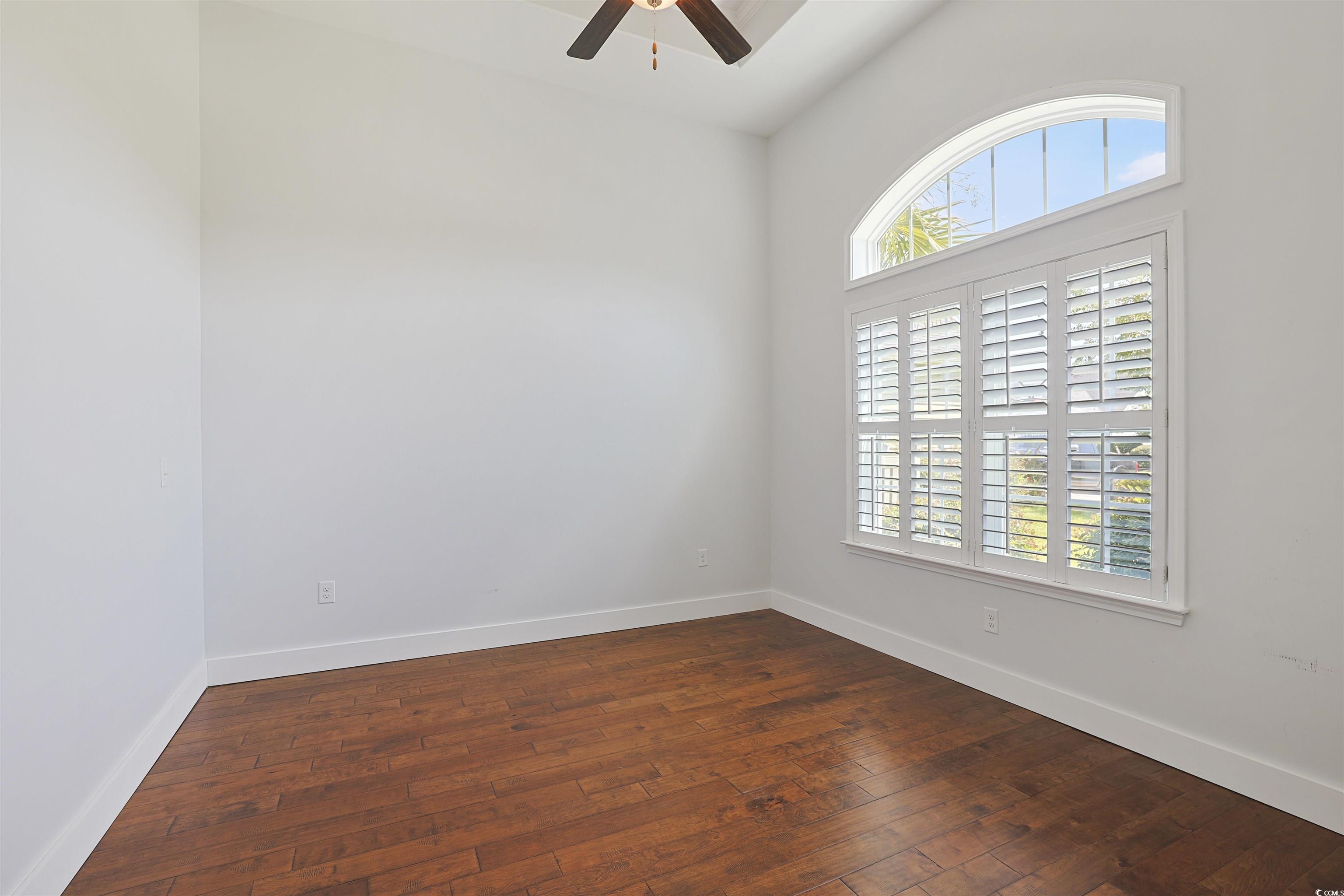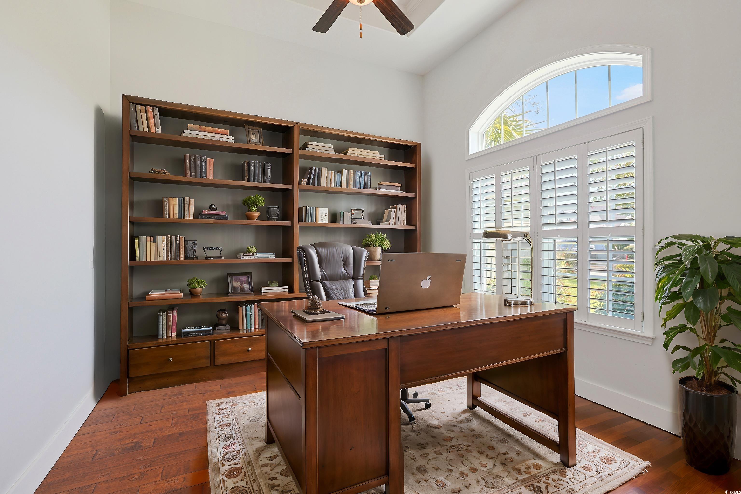 Presenting this exquisite Somerset model 4 bedroom 2.5 bath home located on a quiet cul-da-sac in the popular & mature Waterford Plantation community. The front porch offers a custom bead board stained ceiling as you make your way into this captivating home as you take notice of the elegance of this bright open floor plan that features 12 foot smooth flat ceilings, engineered hardwood & tile flooring, graceful arched entryways, rounded drywall corners throughout, custom plantation shutters, foyer with custom wall panels, recessed lighting, double door private office (could be a forth bedroom), guest powder room, recessed lighting, a living/dining room combo with a cozy gas log fireplace flanked by custom built-ins & a premium surround system, and a delightful Carolina room with ceiling to floor glass windows, remote controlled blinds along with a bead board stained ceiling. Prepare a delightful meal in your modern kitchen that is equipped with a stainless steel appliances package, granite counter tops, Delta ""touch"" faucet, kitchen island, breakfast bar, tile backsplash, cabinets topped with crown moulding and under cabinet lighting, and an ideal butlers pantry. The comfortable primary suite features a single step tray ceiling with a fan, dual large walk-in closets with custom built-ins, private sliding barn door style access to the upscale primary bath offering his & hers vanities, a water closet, a soothing garden tub, and a separate deluxe dual shower head step-in shower. This distinctive home is completed with three additional bedrooms, a full guest bath, a laundry room with a shiplap accent wall, 2 level paver patio, irrigation system, fenced back yard, and a two car attached garage with ceiling storage shelving. The Waterford Plantation community offers first resort amenities that include a community pool, a network of pathways and trails, picturesque lakes, a fitness center as well as a tennis & basketball courts. This home affords you easy access to the beach and golfing along with all of the other activities and happenings in Myrtle Beach including fun eateries, award winning off-Broadway shows, public fishing piers, and intriguing shopping adventures along the GrandStrand. Conveniently located to your everyday needs, including grocery stores, banks, post offices, medical centers, doctors offices, and pharmacies. Check out our state of the art 3-D Virtual Tour. Seller has an active SC real estate license.