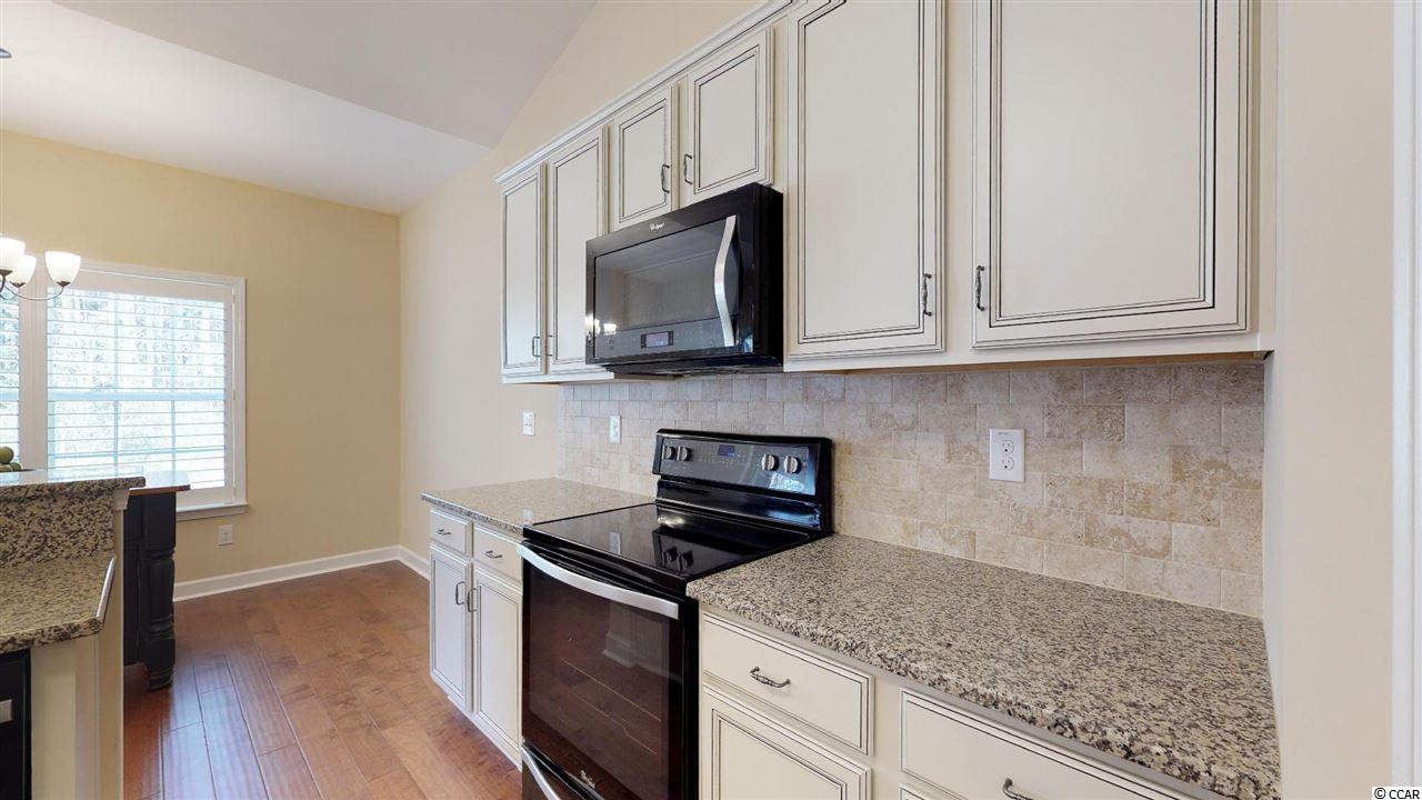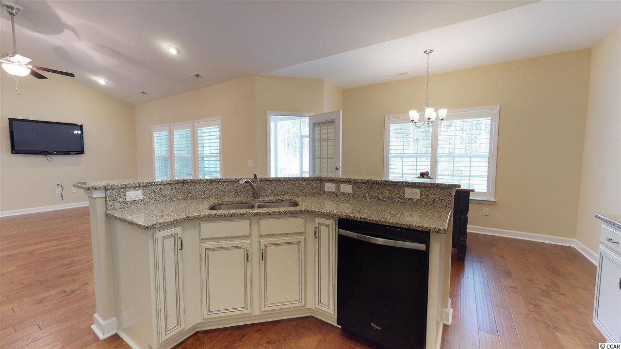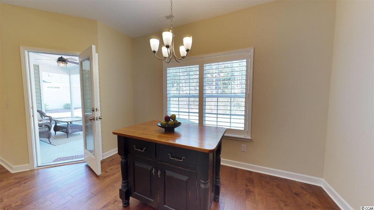 Enjoy the incredible location and peaceful living of this enchanting 3 bedroom 2 bathroom home. Magnificent floor plan and luxurious upgrades blend perfectly together to create a warm, elegant Welcome home environment. Spacious open floor plan with 9ft ceilings is perfect for entertaining friends and family! Home boasts handsome hardwood flooring, an excellent split bedroom floor plan, a delightful Sun room, Plantation shutters and a 2-car attached garage. Elegant Chef's dream kitchen offers Black Ice Whirlpool Refrigerator, sophisticated granite countertops, tile backsplash, beautifully tiled floor, upgraded wood cabinets and a walk-in pantry for ample storage! All bedrooms are spacious and offer walk-in closets! Master bedroom retreat offers walk in closet with custom built-in shelving and Master bath with beautifully tiled shower and tub surround, brushed nickel fixtures and marble vanity! You will love spending afternoons enjoying the Carolina breeze from the comfort of your screened porch or Lanai! Waterford Plantation offers a community pool as well as a tennis court. Located in the heart of Carolina Forest, Waterford Plantation is just minutes away from shopping, dining, Championship golf and the beach!