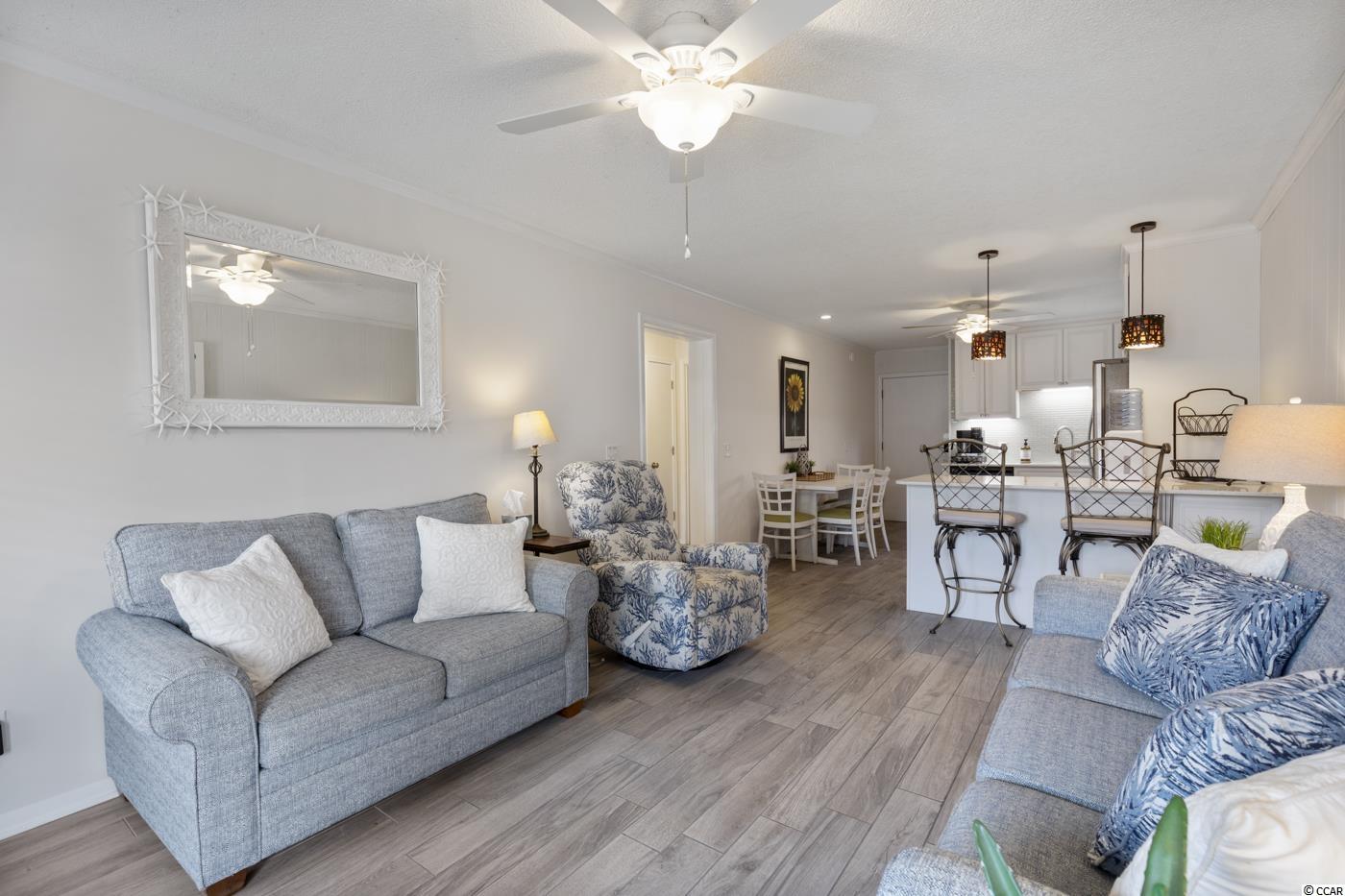 Rare find - this beautiful 2 Bedroom/2 Bath condo at A Place At The Beach III-II-2B has been renovated top to bottom and is fully furnished. Oceanfront building with a wonderful view of the beach and just steps to the Atlantic Ocean. Remodeled kitchen features soft close drawers, quartz countertops, Italian sea glass tile backsplash, stainless steel appliances, under-cabinet lighting for ambiance, and a breakfast bar with wrought iron pendant lighting. Beautiful, low maintenance, durable driftwood gray plank tile throughout the entire condo. Master bath was enlarged 2 feet and has a wall-to-wall tile shower and quartz vanity. Second bath also has a quartz countertop and beautiful river rock tile flooring. Crown molding, new ceiling fans and paneled doors throughout, mirrored closet doors, new walls installed Jan. 2022 in the den and master bedroom, 2 owners closets for storage, hot water heater replaced in 2019, and HVAC units are just 2 years old. The ultimate luxury that renters rave about are blue tooth speakers in both bathrooms. TVs in den and the two bedrooms, Den furniture is just 1 year old and features a Serta sleeper sofa that matches beautifully with the Benjamin Moore ""sand dollar"" paint. Gorgeous white resin deck furniture was made in Vermont and has a 20 year guarantee (5 years old). Low HOA dues include trash, water and sewer, basic cable, internet, pest control, and exterior maintenance. A Place At The Beach III-II-2B is located in the resort destination area of Shore Drive. Perfect second home and rental property that is turn key- rentals on the books for summer 2022! This area has always been an extremely popular area among owners and visitors because of the pristine beaches, and its convenience to many of Myrtle Beachs amenities. Just a short drive from your unit is the Carolina Opry and the Alabama Theatre, two of the most attractive family entertainment locations. For the shoppers, Tanger Outlets, Market Common, Broadway at the Beach, the Coastal Grand Mall and Barefoot Landing are just minutes away. In addition, the choices of dining are endless and challenging golf is close no matter what direction you drive.