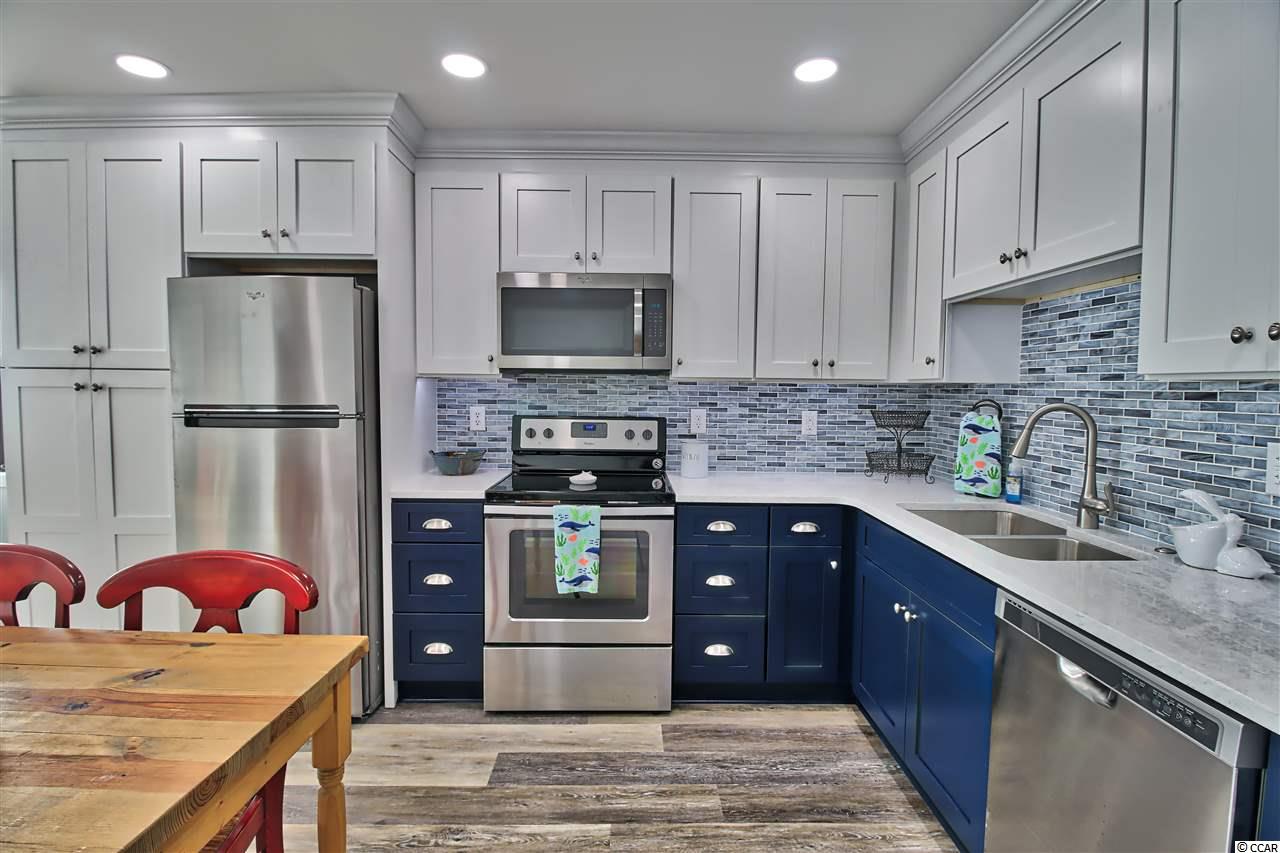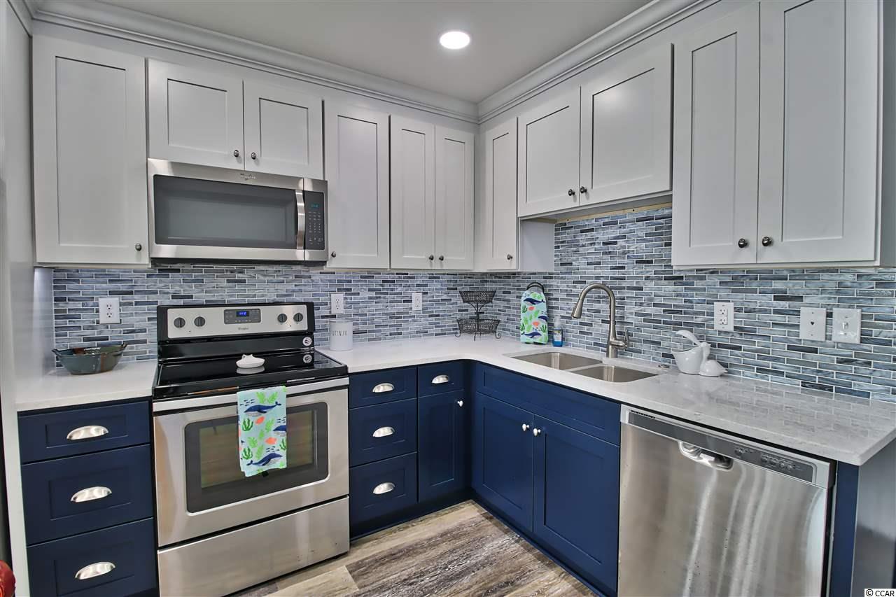 Oceanfront views abound from all the windows in this beautifully updated oceanfront end unit. The updated kitchen boasts quartz counter tops, soft close cabinets, tiled backsplash, under cabinet lighting, LED recessed lighting, Moen no-touch faucet and stainless steel appliances. Luxury waterproof vinyl plank flooring and smooth ceilings extend from the kitchen through the living area. More updates include new 2-inch cordless plantation blinds added throughout along with new ceiling fans and updated door hardware. Bedrooms have new carpet and baths have updated flooring and toilets. Kitchen, living room, master bedroom and baths have been freshly painted. Have a morning cup of coffee or just relax on your private balcony while enjoying the sea breezes and watching the waves roll in. The oceanfront master bedroom has it's own access to the balcony and wonderful ocean views. The complex offers owners two pools with grilling and picnic areas. Centrally located you can stroll to the popular Ocean Annie's Beach Bar or River City Cafe. In just minutes you can be shopping at Tanger Outlets or enjoying all the restaurants, golfing, theaters and other amenities the area offers. Schedule your appointment today to see this very special condo.