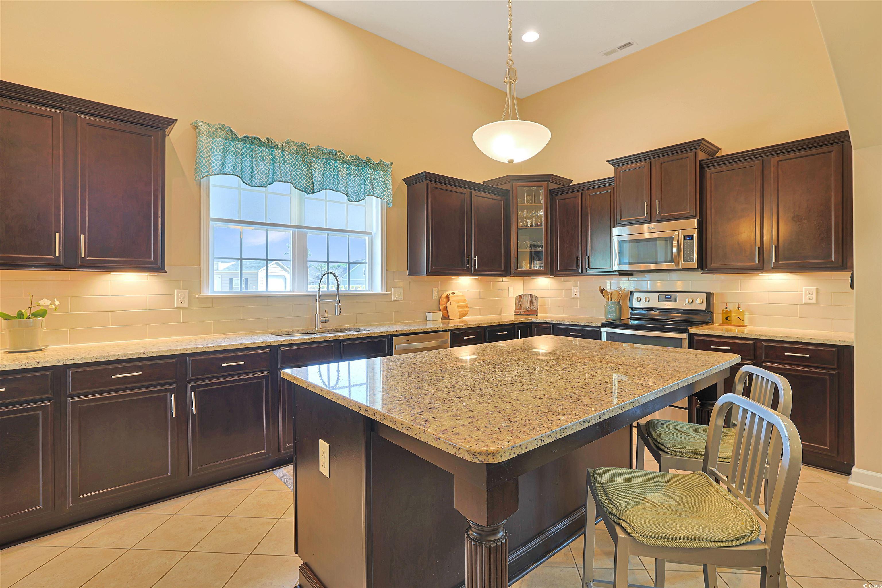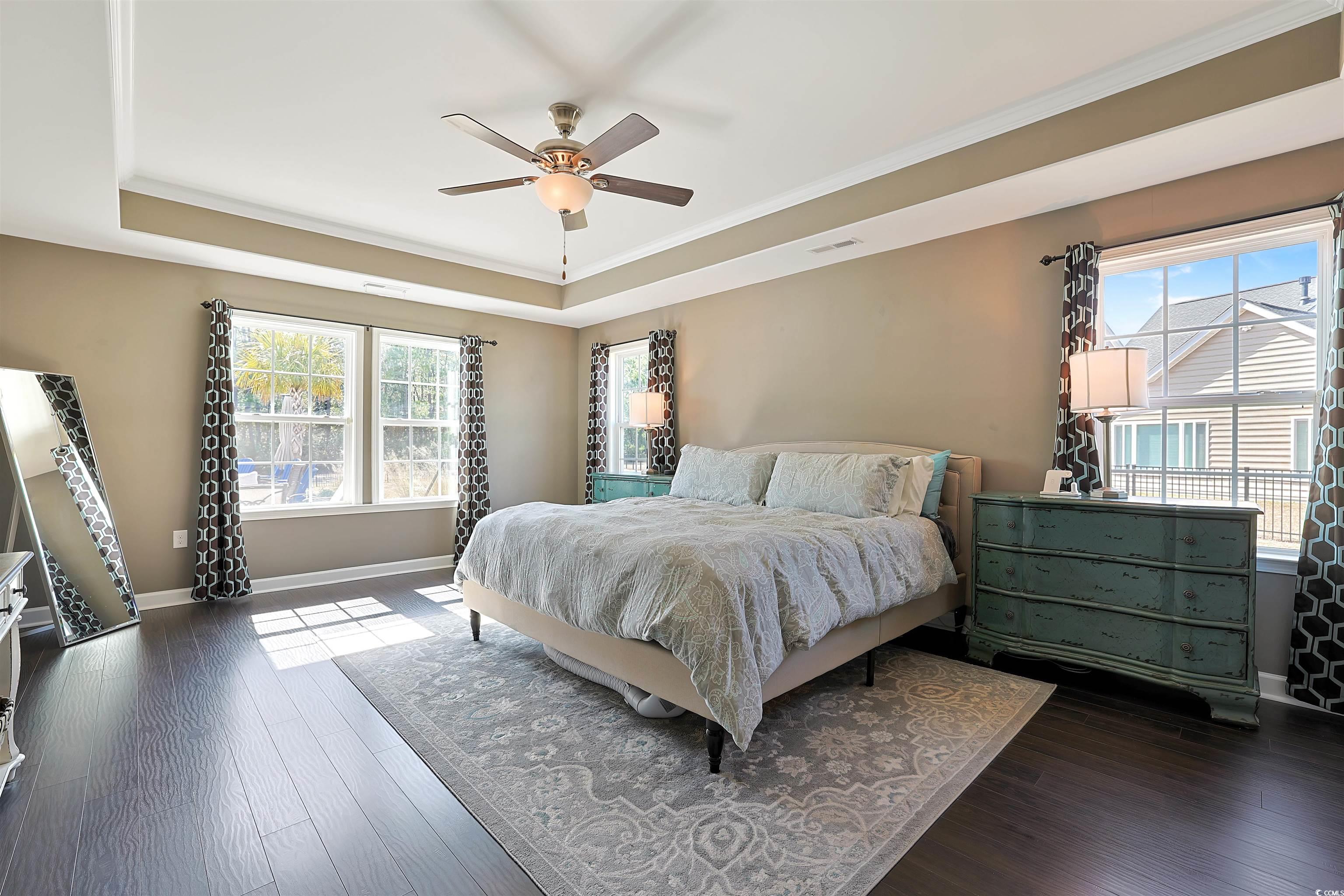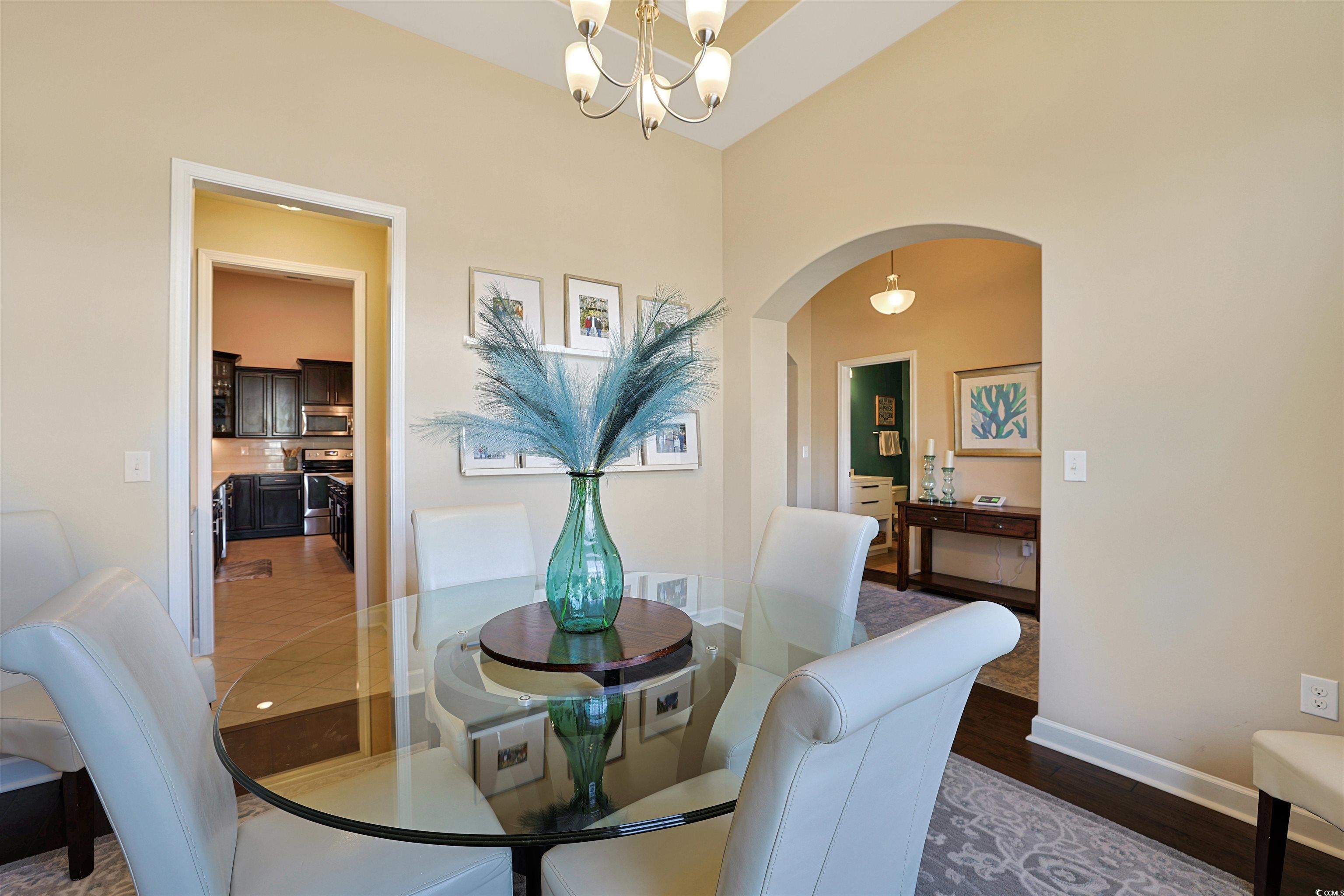 Introducing this exquisite 5 bedroom 3.5 bath home on a large lot with a sparkling in-ground pool and located in the popular Waterford Plantation community. As you enter this captivating home you take notice of the elegance of this bright open floor plan that features 10 foot smooth flat ceilings, hardwood, tile, wood look LVP, & carpet flooring, graceful arched entryways, recessed lighting, a formal dining room with a single step tray ceiling, a living room with built-ins, and showcases a cozy gas log fire place. Prepare a delightful meal in your modern kitchen equipped with a stainless steel appliances package, granite counter tops, kitchen island with a breakfast bar, tile backsplash, cabinets topped with crown moulding, and an ideal butlers pantry. The comfortable main level master suite features a single step tray ceiling with crown moulding & a fan, memorable pool views, his & her large walk-in closets, private access to the up scale master bath offering dual single sink vanities, a water closet, a soothing garden tub, a linen closet, and a separate deluxe step-in shower. As you venture upstairs you will find a tranquil second level bedroom with the third level hosting an inviting bonus room, a bedroom, and a full guest bath. This delightful home is completed on the main level with two additional bedrooms, a full bath, a powder room, a practical laundry room, a sensational screen-in porch with access to the vibrant pool deck, and a two car attached garage. The Waterford Plantation community offers first resort amenities that include a community pool, a network of pathways and trails, picturesque lakes, a fitness center as well as a tennis & basketball courts. This home affords you easy access to the beach and golfing along with all of the other activities and happenings in Myrtle Beach including fun eateries, award winning off-Broadway shows, public fishing piers, and intriguing shopping adventures along the GrandStrand. Conveniently located to your everyday needs, including grocery stores, banks, post offices, medical centers, doctors offices, and pharmacies. Check out our state of the art 3-D Virtual Tour.