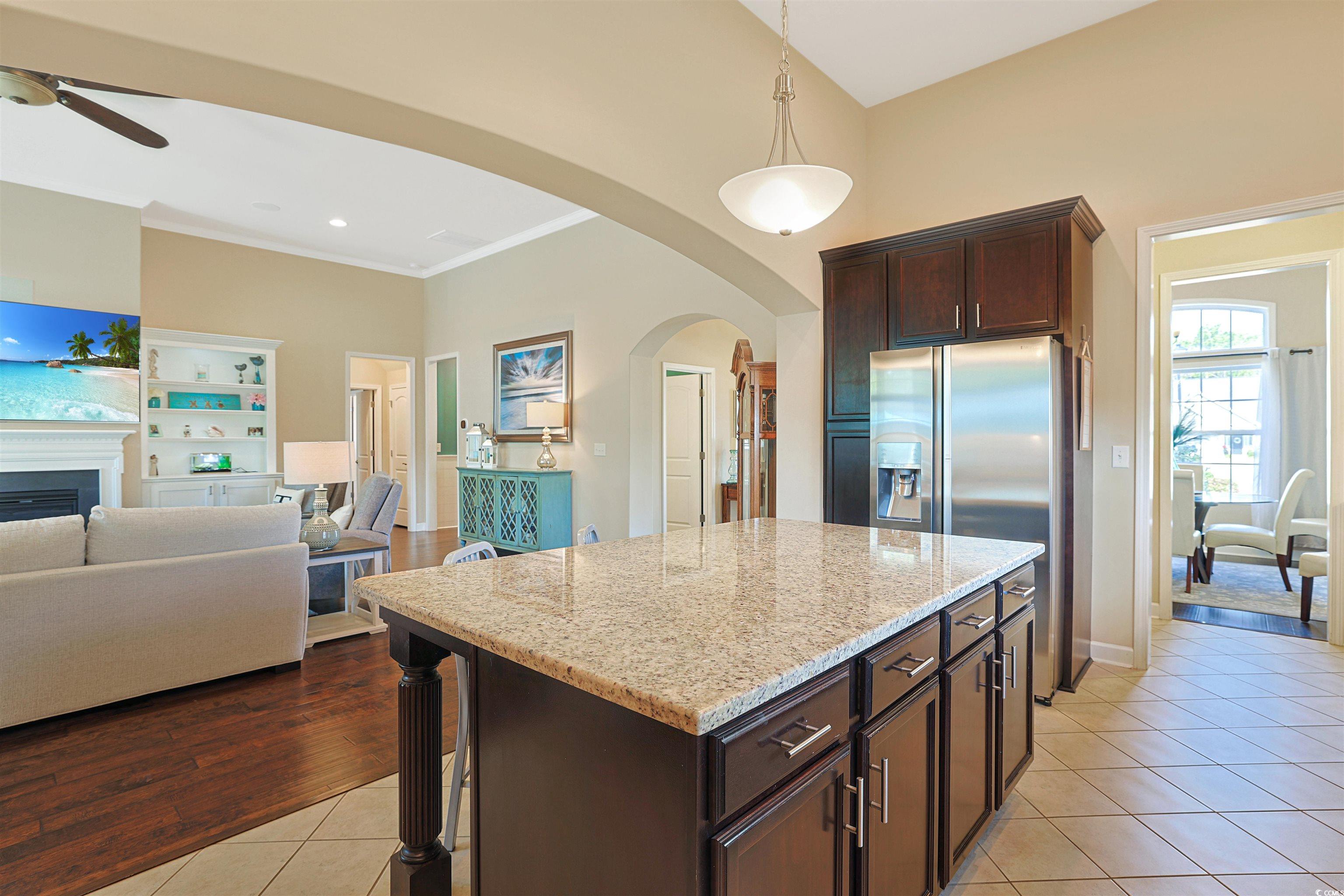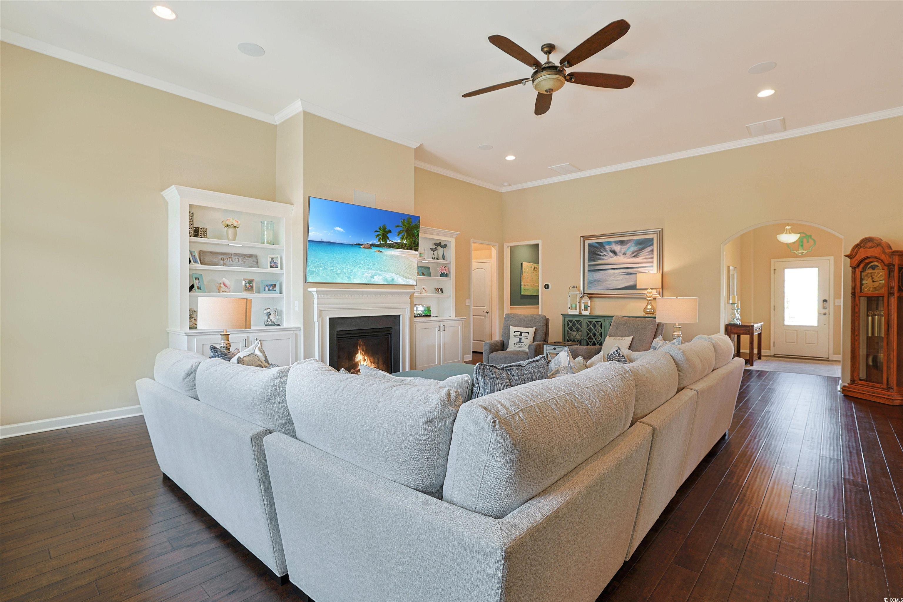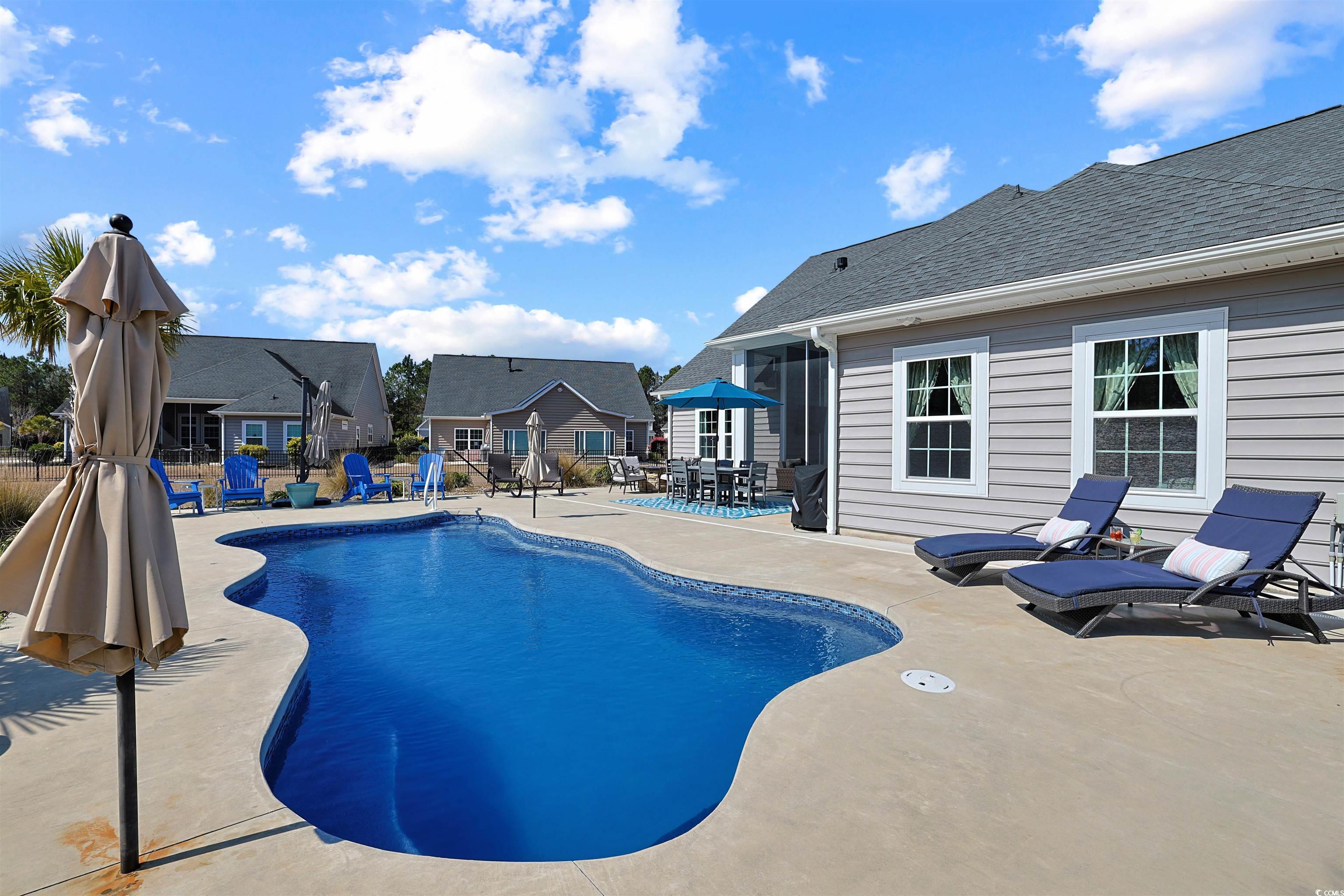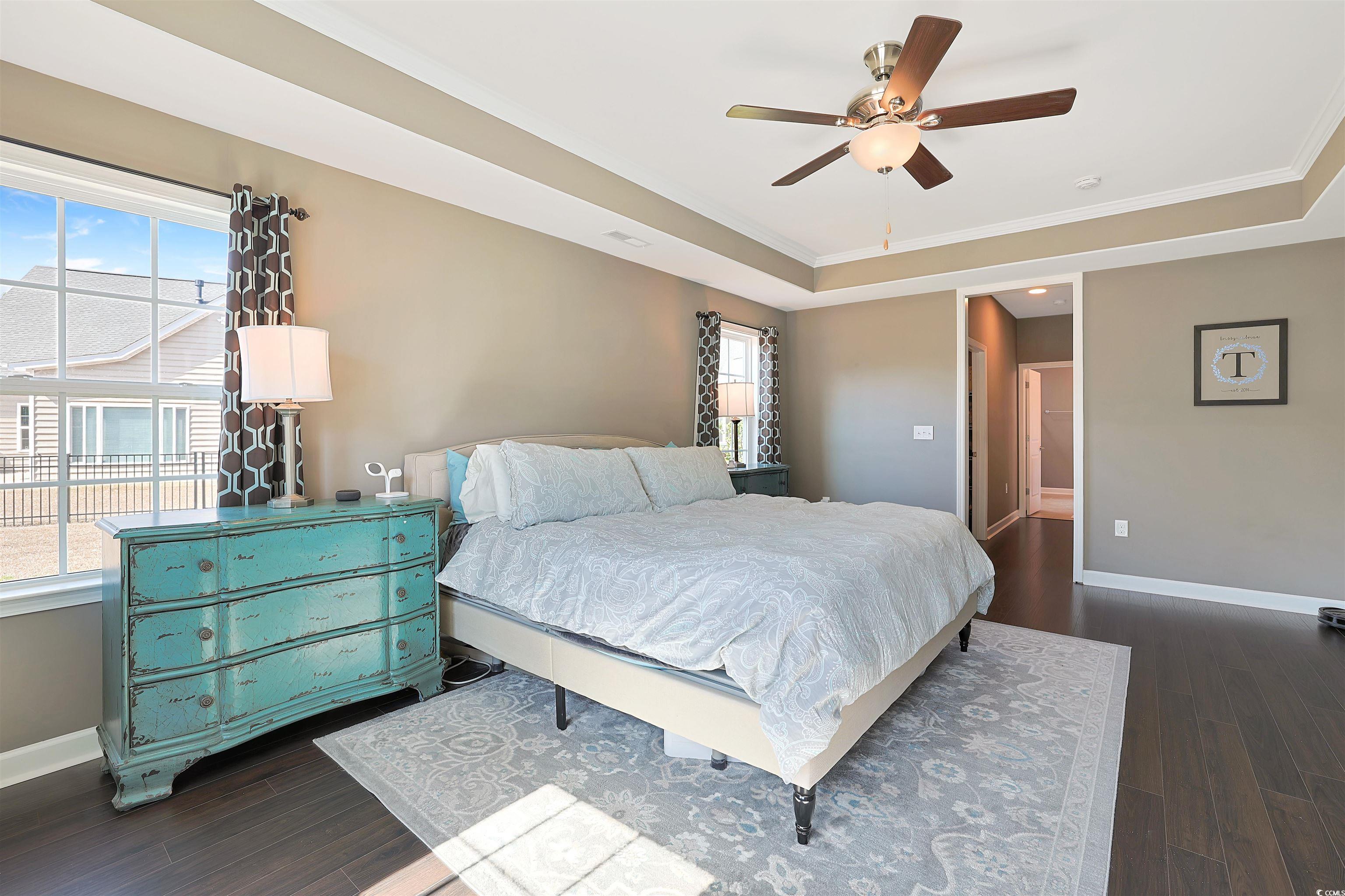 Introducing this exquisite 5 bedroom 3.5 bath home on a large lot with a sparkling in-ground pool and located in the popular Waterford Plantation community. As you enter this captivating home you take notice of the elegance of this bright open floor plan that features 10 foot smooth flat ceilings, hardwood, tile, wood look LVP, & carpet flooring, graceful arched entryways, recessed lighting, a formal dining room with a single step tray ceiling, a living room with built-ins, and showcases a cozy gas log fire place. Prepare a delightful meal in your modern kitchen equipped with a stainless steel appliances package, granite counter tops, kitchen island with a breakfast bar, tile backsplash, cabinets topped with crown moulding, and an ideal butlers pantry. The comfortable main level master suite features a single step tray ceiling with crown moulding & a fan, memorable pool views, his & her large walk-in closets, private access to the up scale master bath offering dual single sink vanities, a water closet, a soothing garden tub, a linen closet, and a separate deluxe step-in shower. As you venture upstairs you will find a tranquil second level bedroom with the third level hosting an inviting bonus room, a bedroom, and a full guest bath. This delightful home is completed on the main level with two additional bedrooms, a full bath, a powder room, a practical laundry room, a sensational screen-in porch with access to the vibrant pool deck, and a two car attached garage. The Waterford Plantation community offers first resort amenities that include a community pool, a network of pathways and trails, picturesque lakes, a fitness center as well as a tennis & basketball courts. This home affords you easy access to the beach and golfing along with all of the other activities and happenings in Myrtle Beach including fun eateries, award winning off-Broadway shows, public fishing piers, and intriguing shopping adventures along the GrandStrand. Conveniently located to your everyday needs, including grocery stores, banks, post offices, medical centers, doctors offices, and pharmacies. Check out our state of the art 3-D Virtual Tour.
