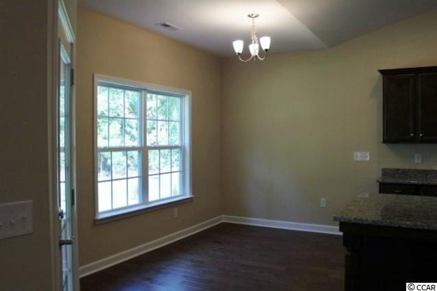 - the Hawthorne plan. One story with bonus room is now ready for you r family. This has a Wicker color with craftsman Bordeaux shutters and front door. Stone column will be in a vintage wine. Hardwood floors in a 5"" burlap birch will be located in the foyer, foyer extension, dining room, great room, kitchen, breakfast nook, hall to bedrooms 2 and 3 and the hall to the Master bedroom. Upgraded tile will be in the bathrooms and laundry room with carpet in the three bedrooms. This home as a designer kitchen layout which includes 36"" cabinet style island. 36 and 42"" staggered cabinets with designer crown molding and light bar. Cabinetry hood vent, vented to the exterior. Kitchen aid double oven with convection microwave and flat top cooking surface. Dishwasher and garbage disposal. Brushed nickel plumbing fixtures, accessories and hardware throughout the home. Large 5"" tiled shower complete with accessories and shower door. Raised vanities in both bath rooms. Upgraded lighting package. Utility sink in the garage, service door to the exterior and gutters on the remainder of the home. Located in the heart of Carolina Forest. This convenient and quiet community is close to schools, shopping, hospitals and the beach. This home has 4 bedrooms; 2 baths, 2 car garage extended covered porch. Open floor plan with split bedrooms. Large kitchen comes complete with granite counters; tile floors; wood cabinetry; Whirlpool appliances and a walk in pantry. All the bedrooms are large and spacious and have walk in closets. Our standard construction features include Bull nose interior corner, 9ft smooth ceilings on the lower level and wood casings on the doors and windows along with loads of architectural features. Act quickly and you can pick your own colors and features from our design center to make this your own unique home. This home comes with a design incentive which will be in the design options. Photo's shown are actual! RS Parker Homes is an environments for living builder which is our energy program that is backed with a written guarantee for maximum energy efficiency. Call for details about this program and this months builders incentives. Pictures are of a previous Hawthorne model home and are for representation purposes only. Subject to ARB approval.