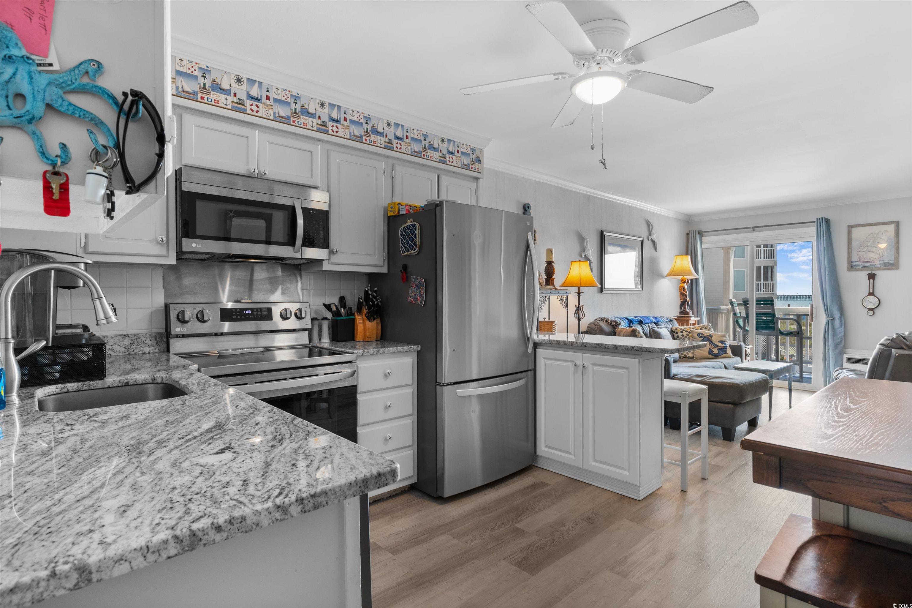 Welcome to your dream coastal retreat! This exquisite 2-bedroom, 2-bathroom condo is located on the second floor, offering breathtaking ocean views and just steps away from the pristine beach. The condo features vinyl plank flooring throughout. The open kitchen is equipped with stainless steel appliances, a breakfast bar, and granite countertops. 2 spacious bedrooms, including a master bedroom with spectacular ocean views and an en-suite bathroom. Amenities of the HOA includes building insurance, water, cable, internet, pool, trash, and security cameras. Perfect for a vacation home, primary residence, or a short-term rental, this condo combines luxury and convenience in one. This beautifully maintained condo invites you to enjoy the best of beachside living. Dont miss out on this rare opportunity to own a piece of paradise. Contact us today to schedule a viewing!