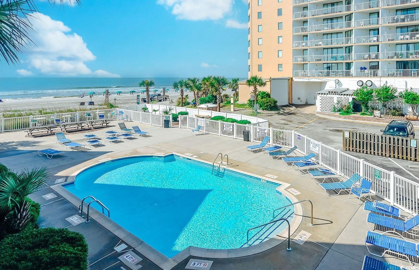 The beach is practically at your feet from this beautiful two bedroom ocean view and pool view condo on Shore Drive. Youll fall in love with this true ocean view condominium located in A Place at the Beach I, with one of the lowest HOA amounts in the highly desired Shore Drive area on the north end of Myrtle Beach. Whether youre ready to live your own permanent beach vacation or are looking for a turnkey rental property, youll be thrilled with this perfectly appointed, sunshiny space. Indulge in coastal living at its finest with this charming condo boasting stunning ocean and pool views in the coveted Shore Drive area of Myrtle Beach. Whether youre seeking a permanent beach retreat or a lucrative rental investment, this meticulously maintained beach retreat is sure to enchant you. Step onto the ocean view deck, where endless vistas await, creating an inviting space for outdoor gatherings and relaxation. Convenient walk-in storage ensures all your beach essentials are neatly tucked away, ready for your next seaside adventure. Inside, the airy open-concept layout that creates a welcoming ambiance throughout. Prepare culinary delights in the sleek open renovated kitchen, outfitted with pristine white Shaker-style cabinetry, quartz countertops, and tile backspace. Experience the ultimate coastal lifestyle at A Place at the Beach I, where residents enjoy access to a refreshing pool, inviting grilling areas, and direct beach access. Nestled in the serene Arcadian Area between Myrtle Beach and North Myrtle Beach, this community offers a serene escape with a laid-back atmosphere, making it the perfect seaside getaway.