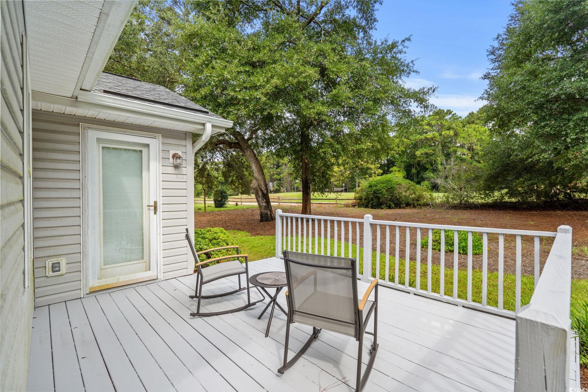Located in the heart of Pawleys Island, this move-in ready 2-bedroom home sits on a spacious golf course homesite in the desirable Hagley Estates community. The open floor plan is filled with natural light, creating a warm and welcoming atmosphere throughout. Enjoy the privacy of a generous backyard, complete with a large deck perfect for relaxing or entertaining. This home delivers outstanding value and a lifestyle that blends comfort with the beauty of the Lowcountry. Conveniently close to beaches, shopping, dining, and everything Pawleys Island has to offer. Schedule your private showing today! This one wont last long.