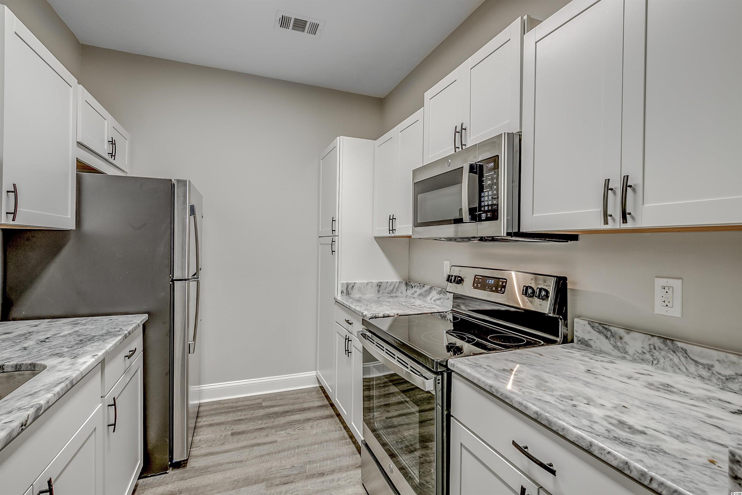 LIKE NEW! First Floor 3 Bedroom, 2 Bath condo with almost everything BRAND NEW! ALL NEW Air Handler and HVAC, Hot Water Heater, LVP Flooring, Paint, Refrigerator, Range, Microwave, Dishwasher, Toilets, Fixtures, Ceiling Fans, Cabinets, Granite countertops and MORE!. Move-In ready, this spacious condo is located in a gated community just minutes from the heart of Pawley's Island. Galley-style kitchen boasts tons of cabinet space, granite countertops, new stainless steel appliances, and a breakfast bar. Large Master Bedroom features double closets and a luxurious Master Bath. Spacious Family Room makes this split bedroom floorplan private, yet features generous room sizes and plenty of storage, along with a huge laundry room. The private screened porch is perfect for that morning coffee or evening cocktail! Just minutes to many incredible restaurants, shopping, dining, and the beach! All measurements are approximate and not guaranteed. Owner is licensed SC agent.