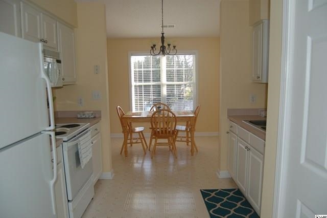This bright and well maintained two bedroom two bath home backs to a pond. This home features vaulted ceilings in the living and dining areas. Master bedroom has a tray ceiling. Master bathroom has a spacious tiled shower. Kitchen comes with range, dishwasher, refrigerator and microwave. Home may be purchased with or without furnishings. TV will not convey.