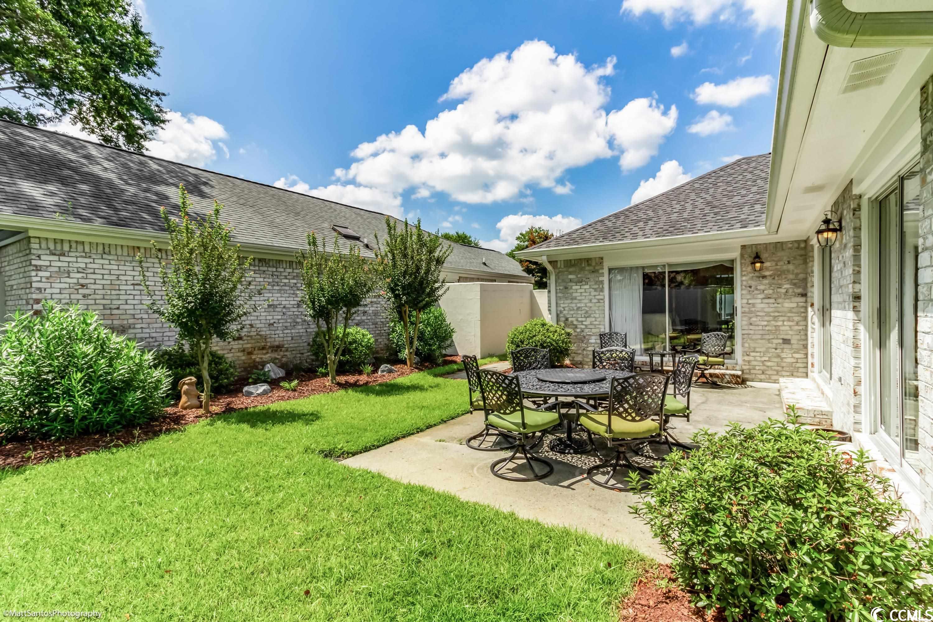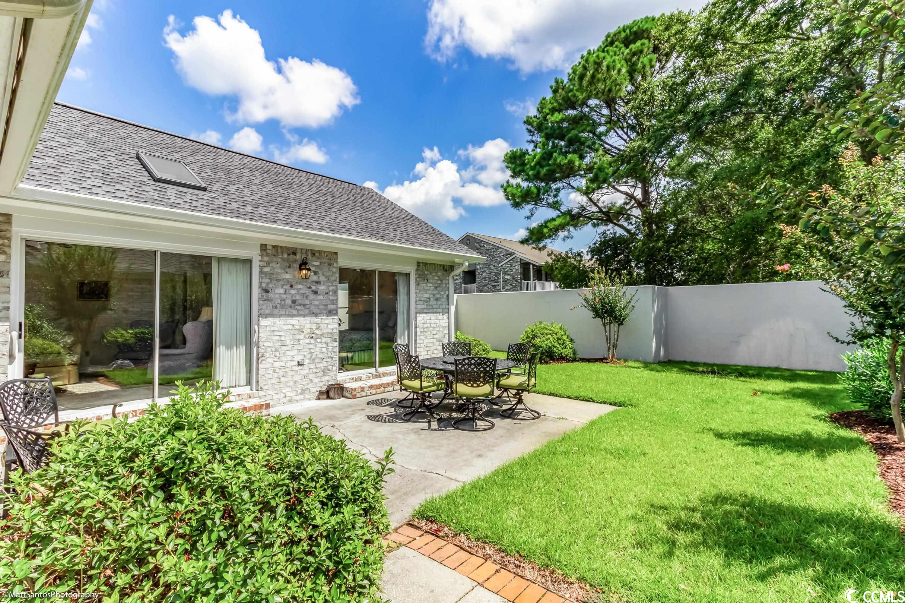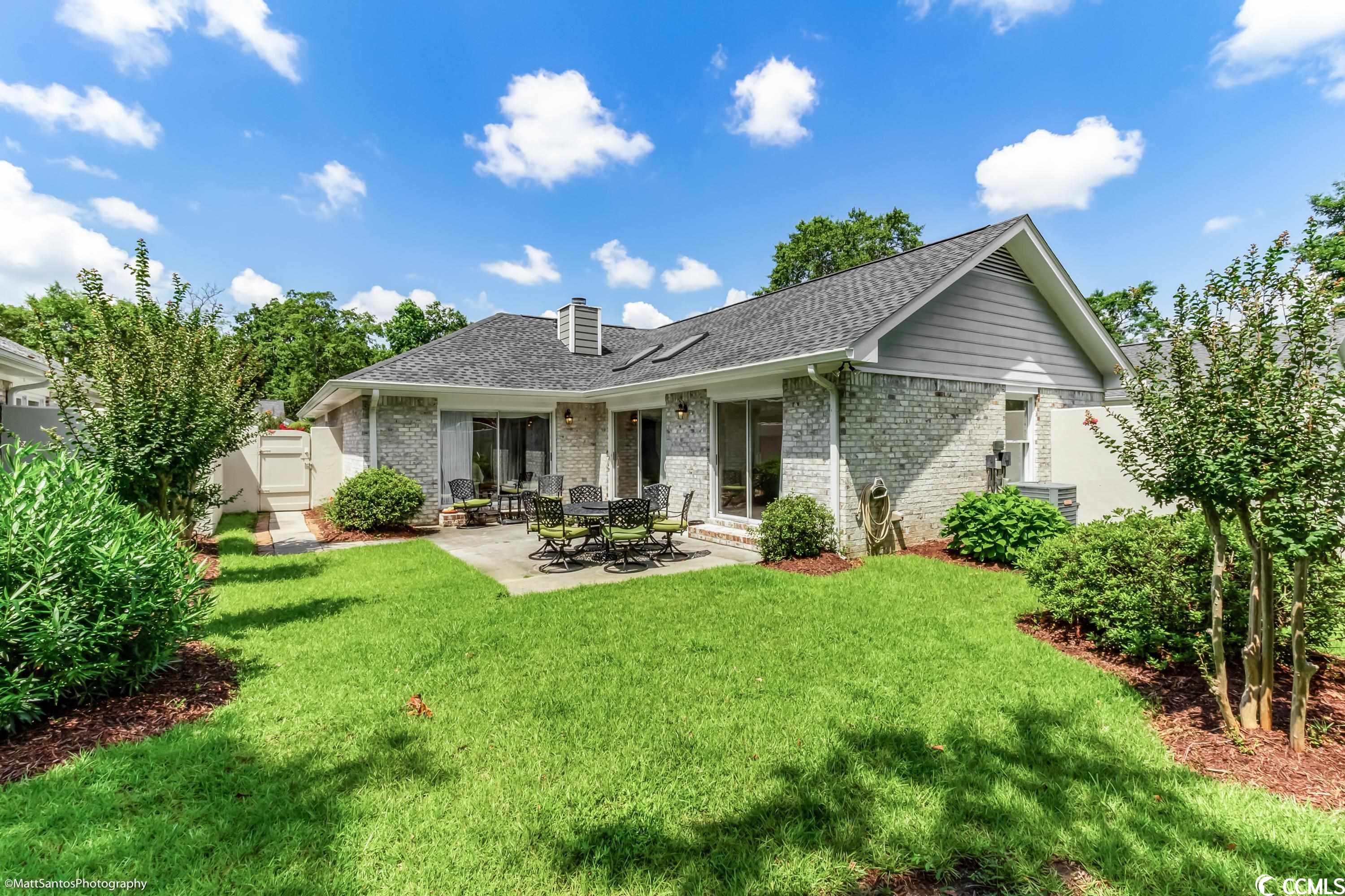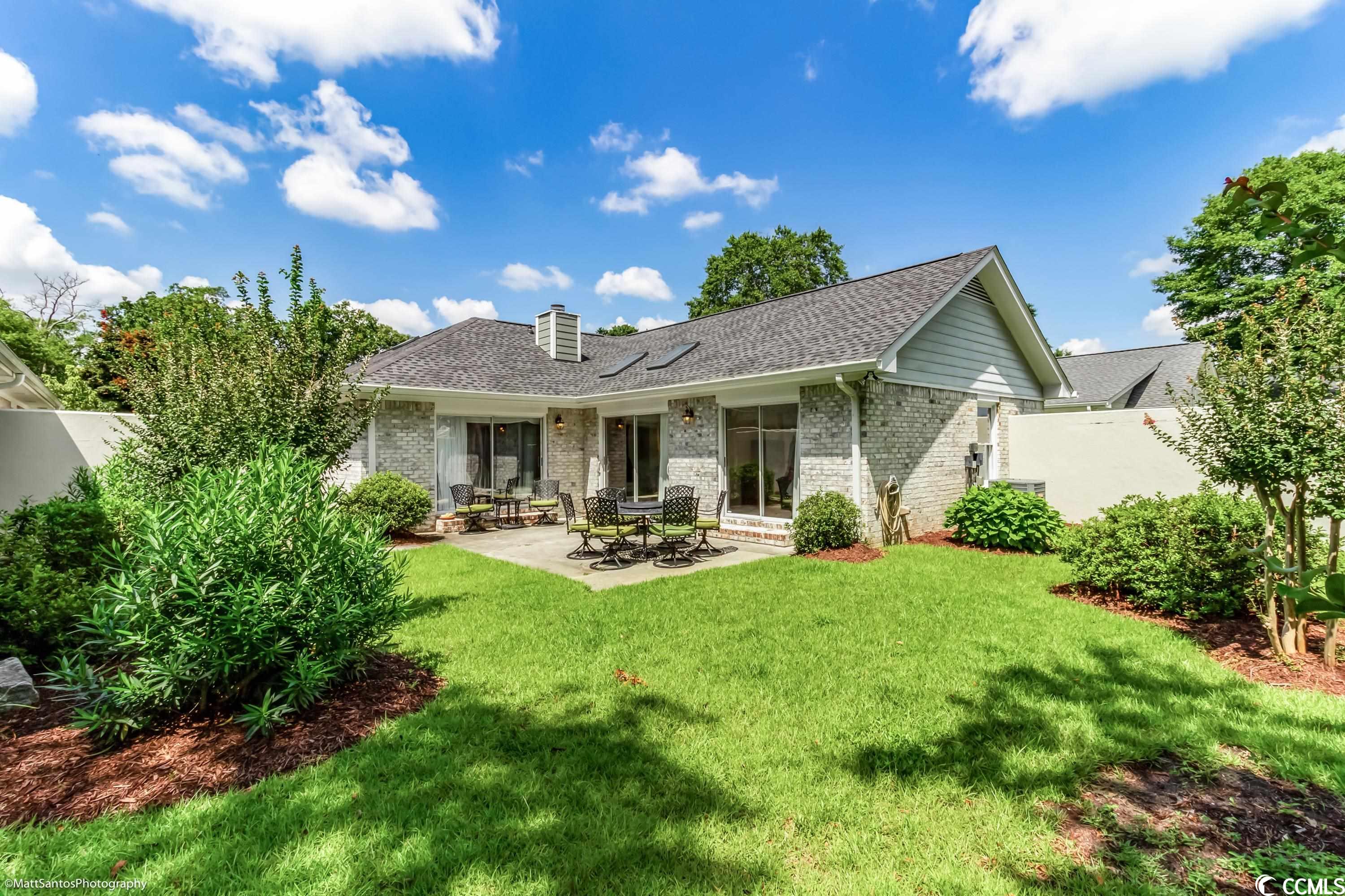 Check out this spacious move-in ready 2 BR 2 BA all brick house a short cart ride to the Beach!! Very Rarely does a home this perfect come on the market! Talk about carefree living at its finest! Wonderfully located within a mile of the beach, and easy access to everything you need! This beautiful and spacious 2 BR 2 BA home can be an excellent primary residence or the much sought after 'beach bungalow' WITH a 2 Car garage AND a private fenced in backyard/courtyard! Gorgeously landscaped, all brick home with a brand new roof and gutters, new garage door, full exterior and interior paint, luxury vinyl plank and tile plus high-end plantation shutters in the entry, kitchen, and dining areas! The spacious living room looks out onto the generous patio space and lush backyard - perfect for grilling and outdoor entertaining! The primary bedroom and the second bedroom are on opposite ends of the house and also have tons of natural light with sliding glass door access to the backyard PLUS each has a private and spacious bathroom and walk in closets! Central heat and air plus an abundance of ceiling fans for summertime breezes, and a cozy fireplace for the winter months! The Park is a small community nestled amidst mature landscaping with a nice community pool. HOA Dues are very affordable! Don't miss your chance to call this one Home!!