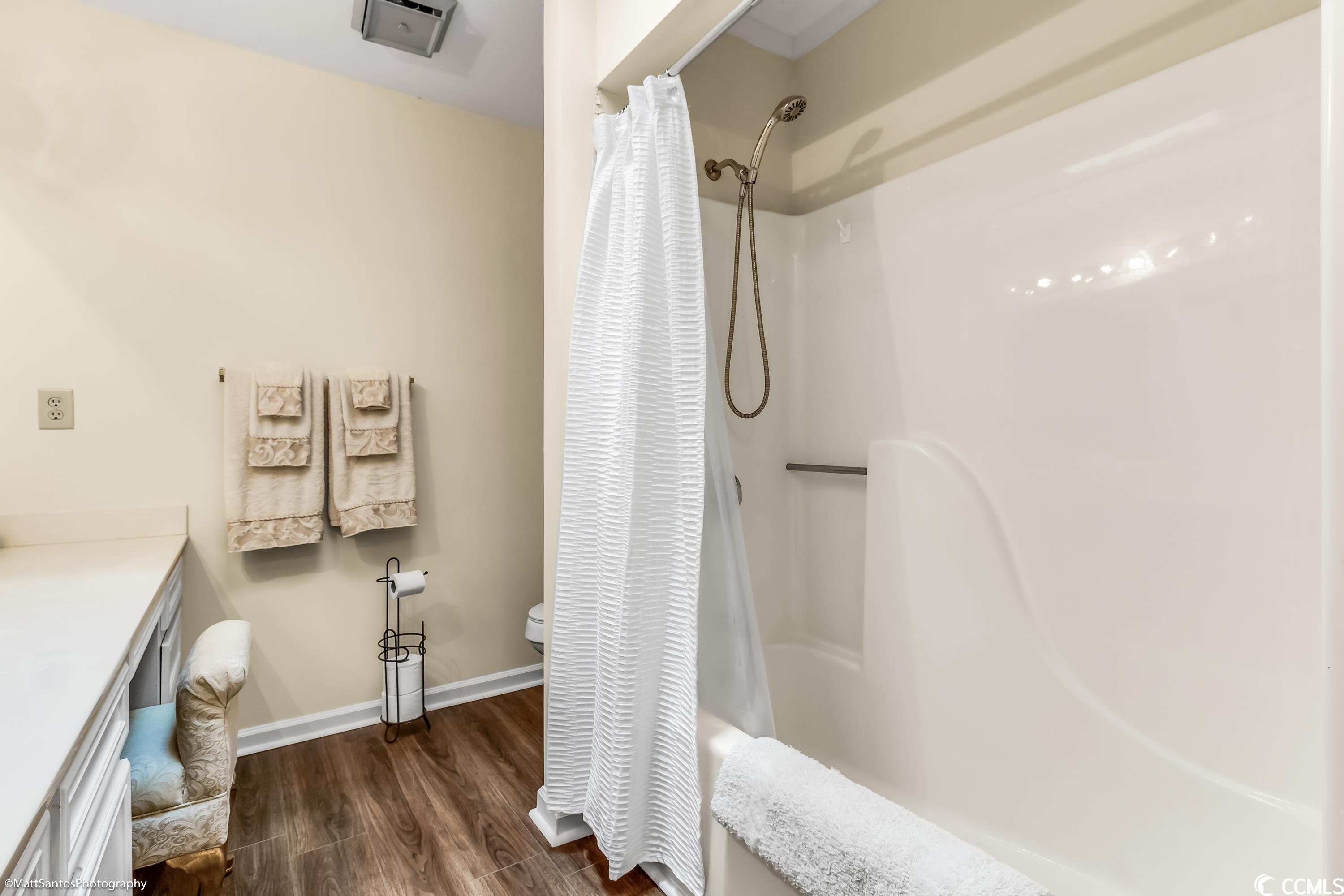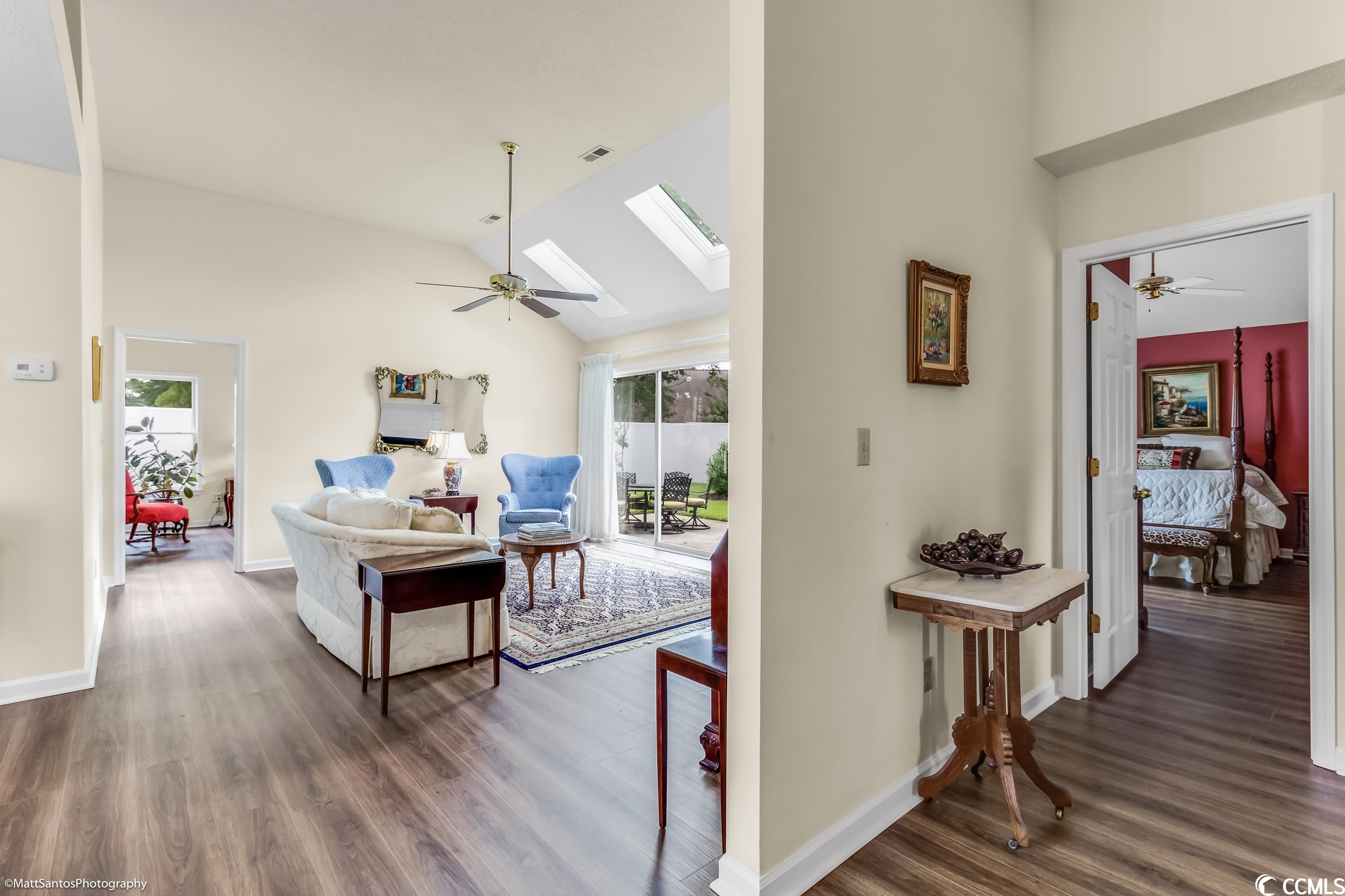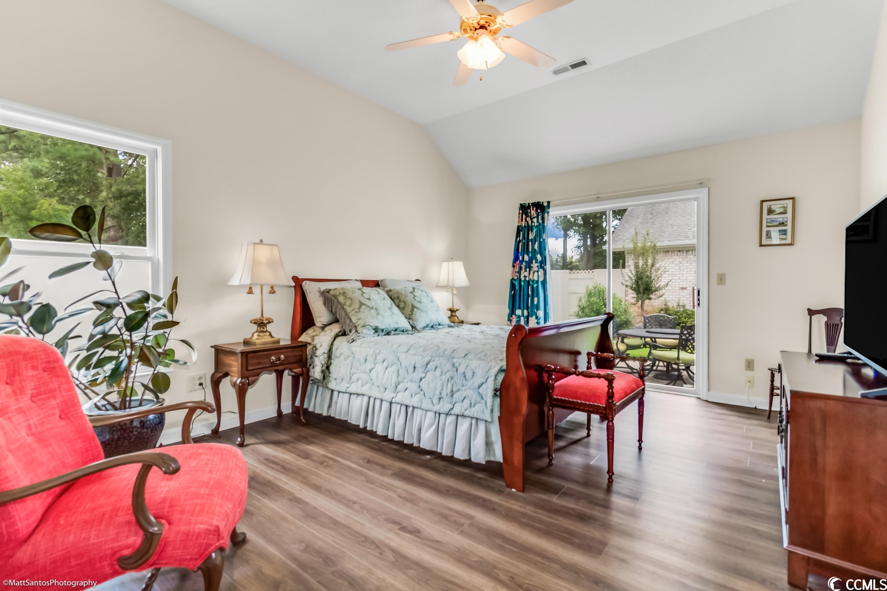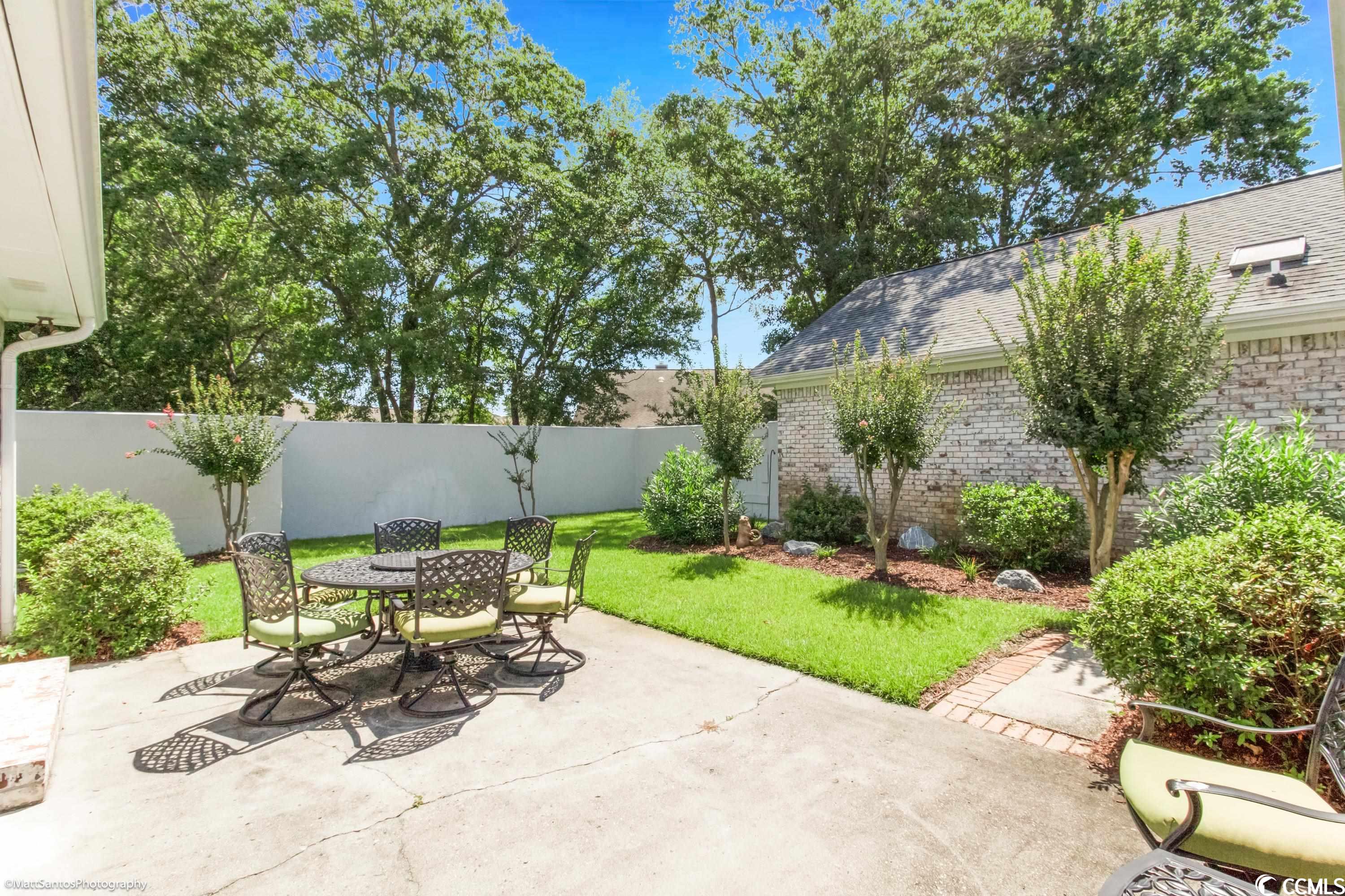 Check out this spacious move-in ready 2 BR 2 BA all brick house a short cart ride to the Beach!! Very Rarely does a home this perfect come on the market! Talk about carefree living at its finest! Wonderfully located within a mile of the beach, and easy access to everything you need! This beautiful and spacious 2 BR 2 BA home can be an excellent primary residence or the much sought after 'beach bungalow' WITH a 2 Car garage AND a private fenced in backyard/courtyard! Gorgeously landscaped, all brick home with a brand new roof and gutters, new garage door, full exterior and interior paint, luxury vinyl plank and tile plus high-end plantation shutters in the entry, kitchen, and dining areas! The spacious living room looks out onto the generous patio space and lush backyard - perfect for grilling and outdoor entertaining! The primary bedroom and the second bedroom are on opposite ends of the house and also have tons of natural light with sliding glass door access to the backyard PLUS each has a private and spacious bathroom and walk in closets! Central heat and air plus an abundance of ceiling fans for summertime breezes, and a cozy fireplace for the winter months! The Park is a small community nestled amidst mature landscaping with a nice community pool. HOA Dues are very affordable! Don't miss your chance to call this one Home!!