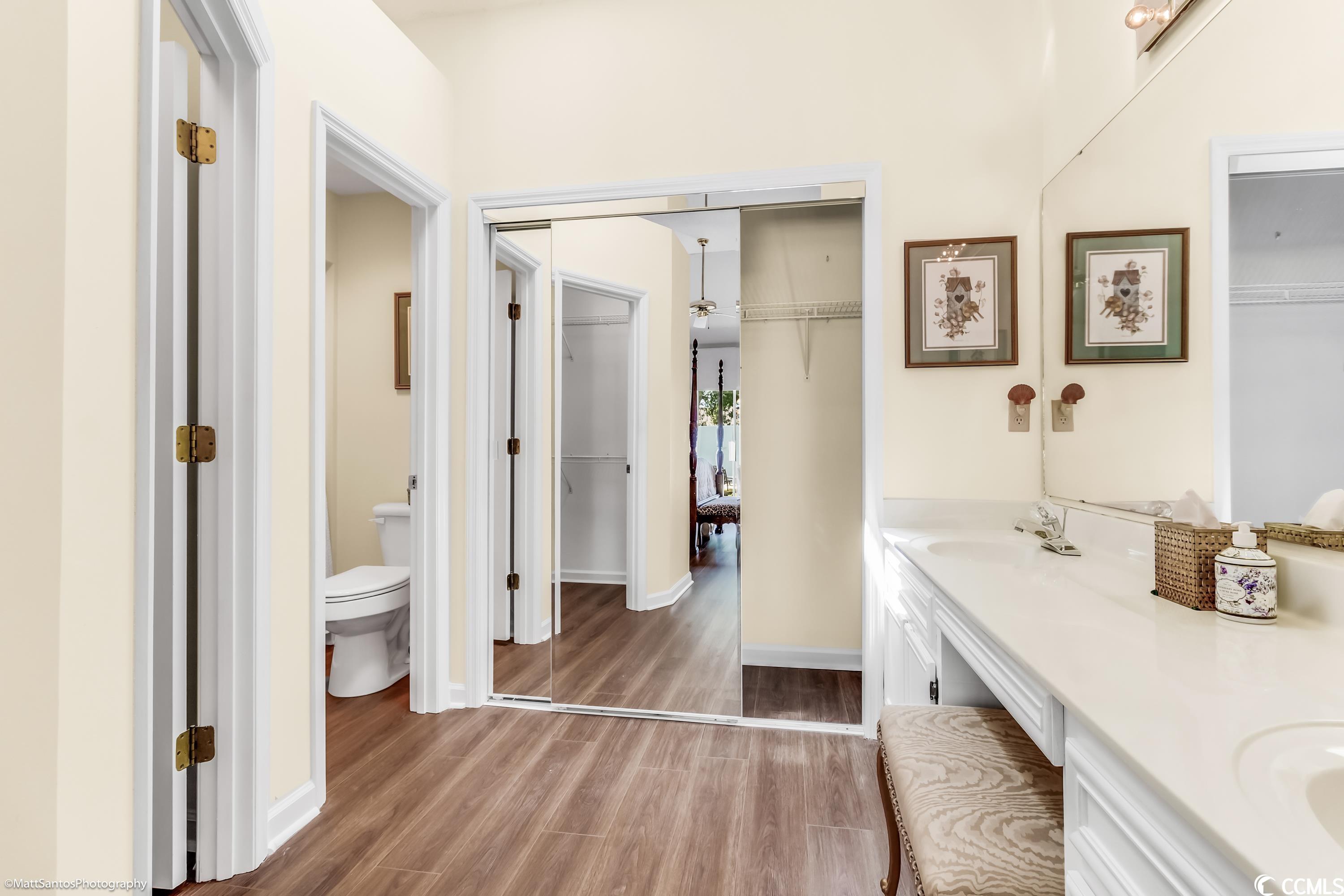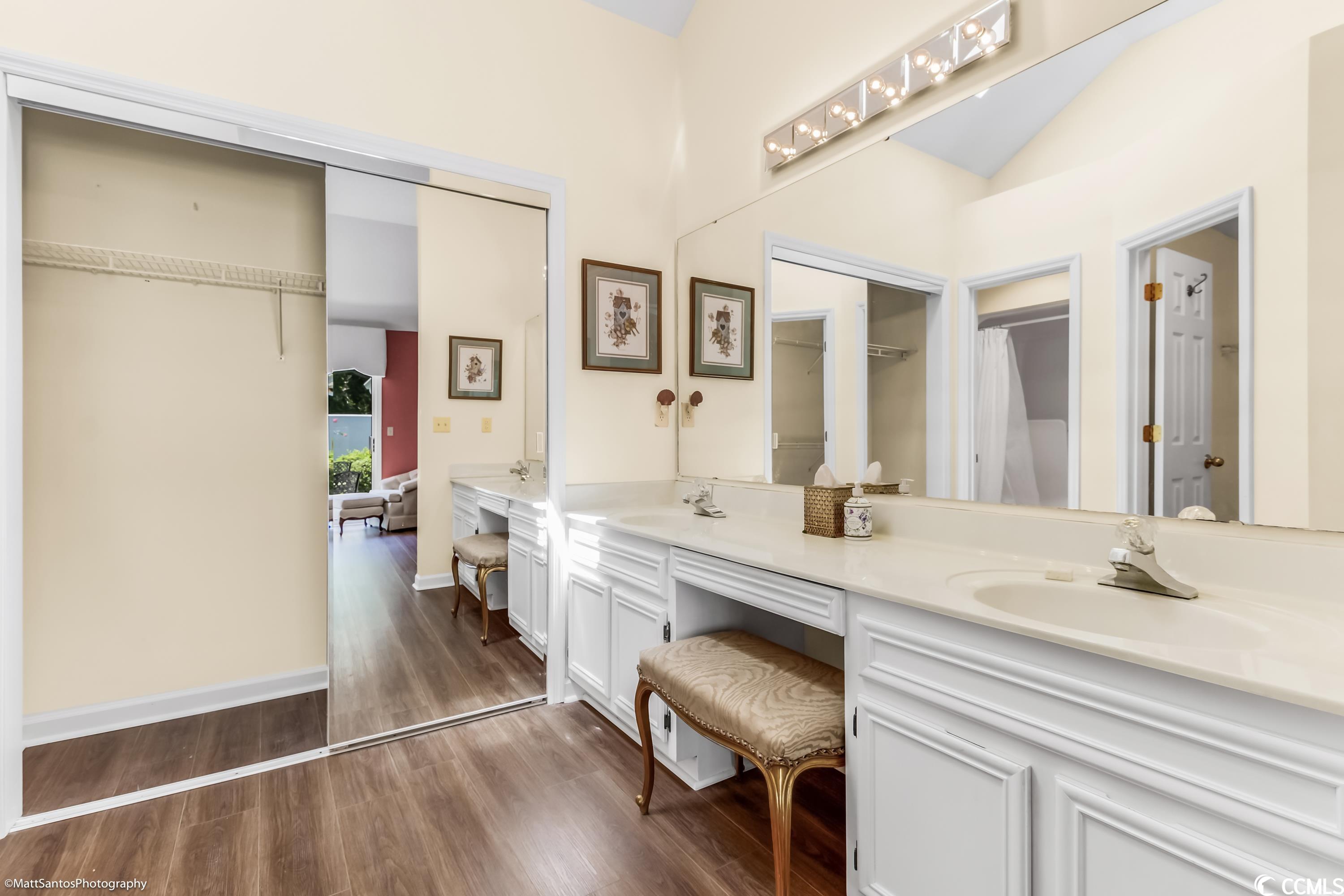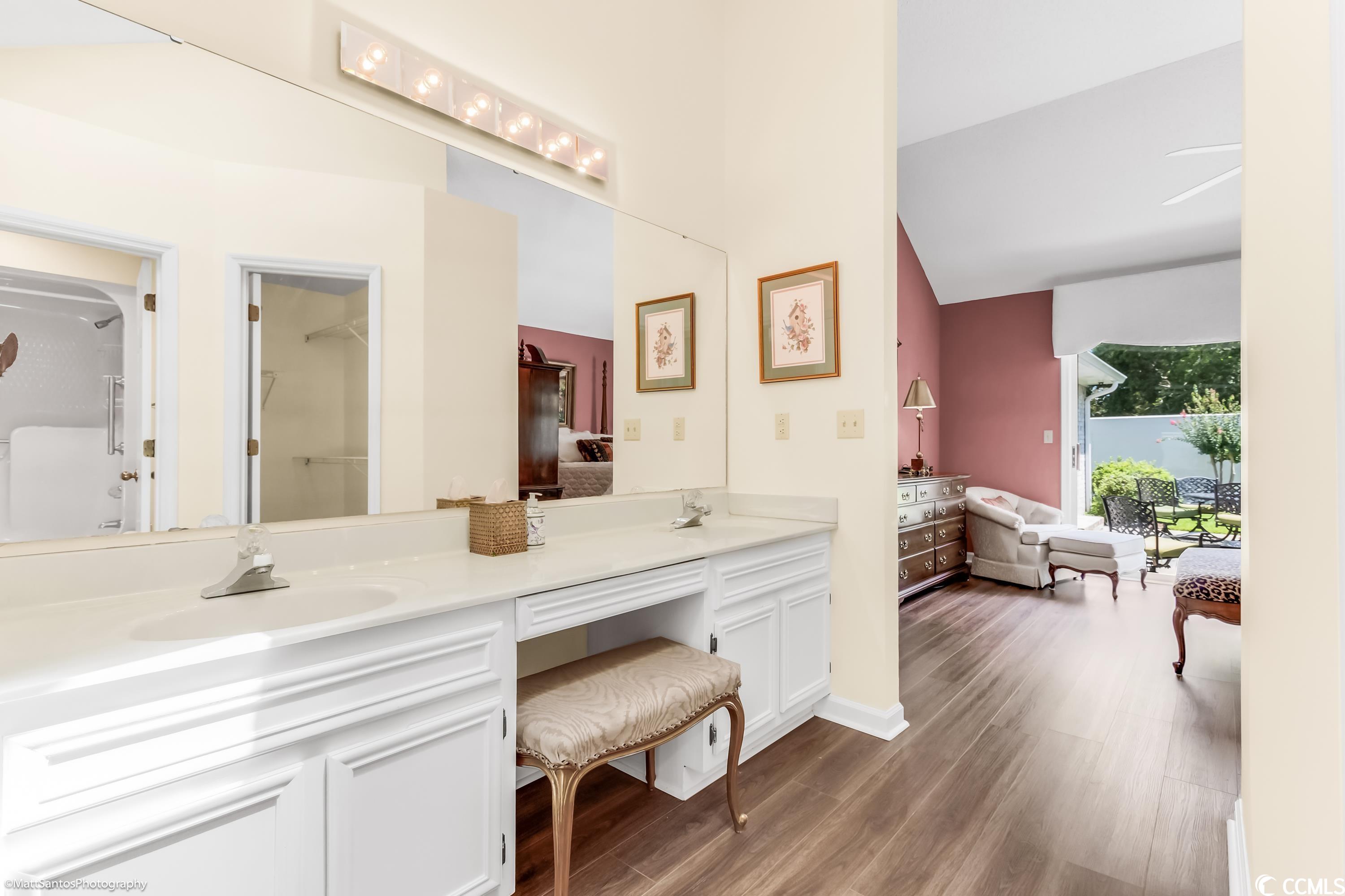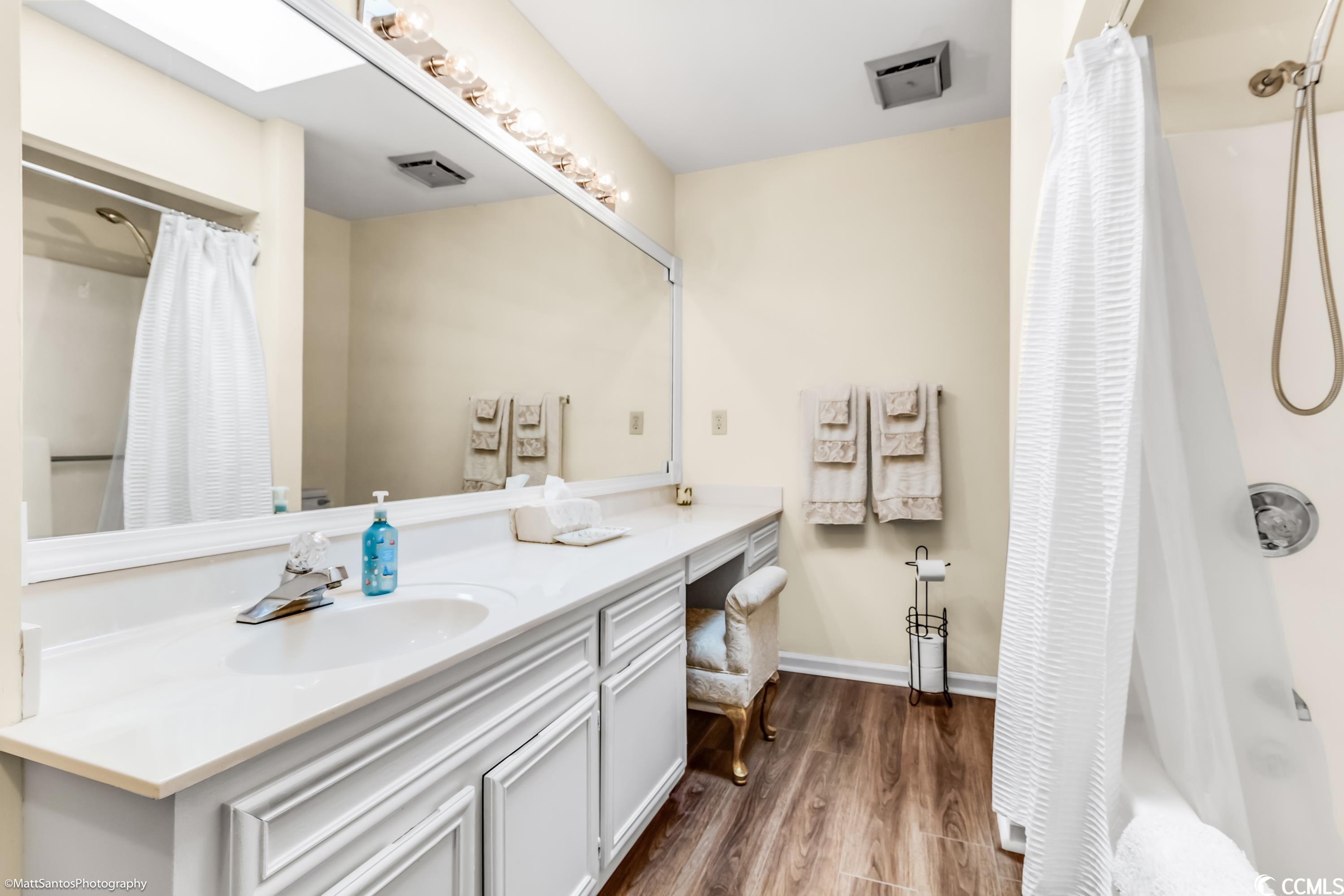 Check out this spacious move-in ready 2 BR 2 BA all brick house a short cart ride to the Beach!! Very Rarely does a home this perfect come on the market! Talk about carefree living at its finest! Wonderfully located within a mile of the beach, and easy access to everything you need! This beautiful and spacious 2 BR 2 BA home can be an excellent primary residence or the much sought after 'beach bungalow' WITH a 2 Car garage AND a private fenced in backyard/courtyard! Gorgeously landscaped, all brick home with a brand new roof and gutters, new garage door, full exterior and interior paint, luxury vinyl plank and tile plus high-end plantation shutters in the entry, kitchen, and dining areas! The spacious living room looks out onto the generous patio space and lush backyard - perfect for grilling and outdoor entertaining! The primary bedroom and the second bedroom are on opposite ends of the house and also have tons of natural light with sliding glass door access to the backyard PLUS each has a private and spacious bathroom and walk in closets! Central heat and air plus an abundance of ceiling fans for summertime breezes, and a cozy fireplace for the winter months! The Park is a small community nestled amidst mature landscaping with a nice community pool. HOA Dues are very affordable! Don't miss your chance to call this one Home!!