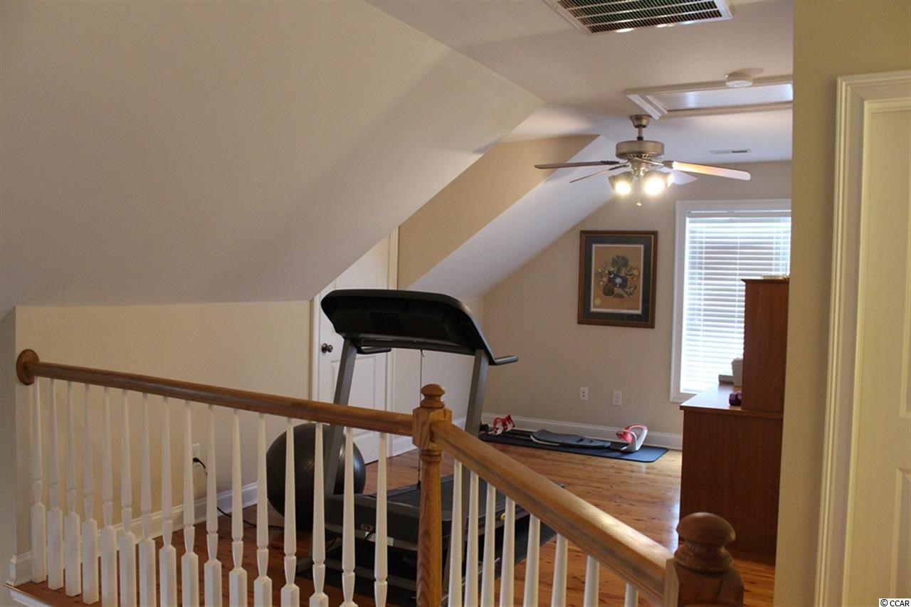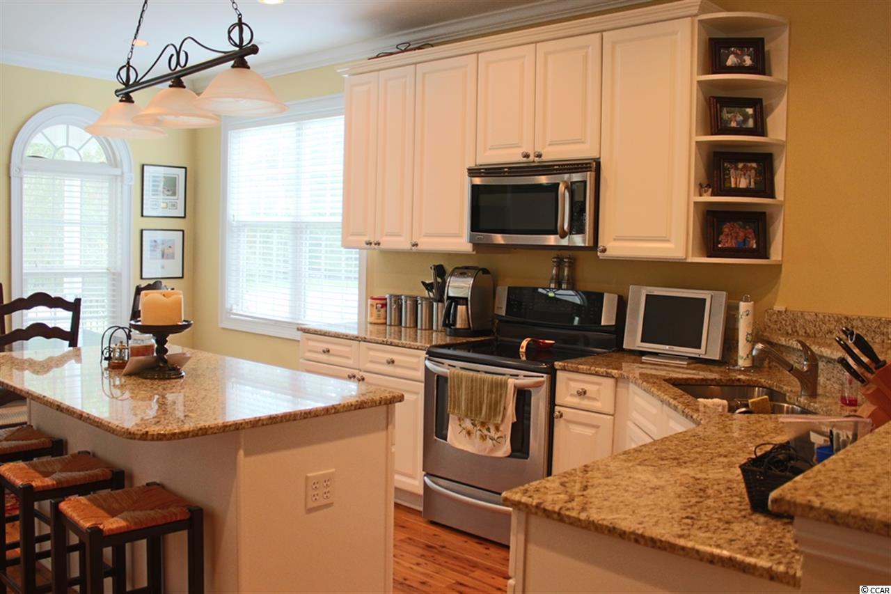 Quality built home with wonderful floor plan. 3 Bedrooms, 3.5 Baths + Bonus Room over garage. Hardwood floors in main living areas, tall ceilings with crown moldings, living room with gas fireplace, vaulted ceiling, and a wet bar with ice maker and wine cooler. Spectacular kitchen features granite counter tops, stainless appliances, lots of cabinets and a pantry. Living room is wired for surround sound and opens to screened porch. Master suite is on the main level, with walk-in closet, and large bath with over-sized shower with glass enclosure, over-sized whirlpool tub, vanity with double sinks. Upstairs features a loft area for office or exercise room, two bedrooms and a hall bath with double sink vanity. The large garage is accessed through the laundry room off the kitchen and has staircase to bonus room over garage. The bonus room is very spacious and has Heart Pine floors and a full bath. This home is on a corner lot, is beautifully landscaped, and has great curb appeal with front circular concrete driveway, and separate concrete driveway for garage.