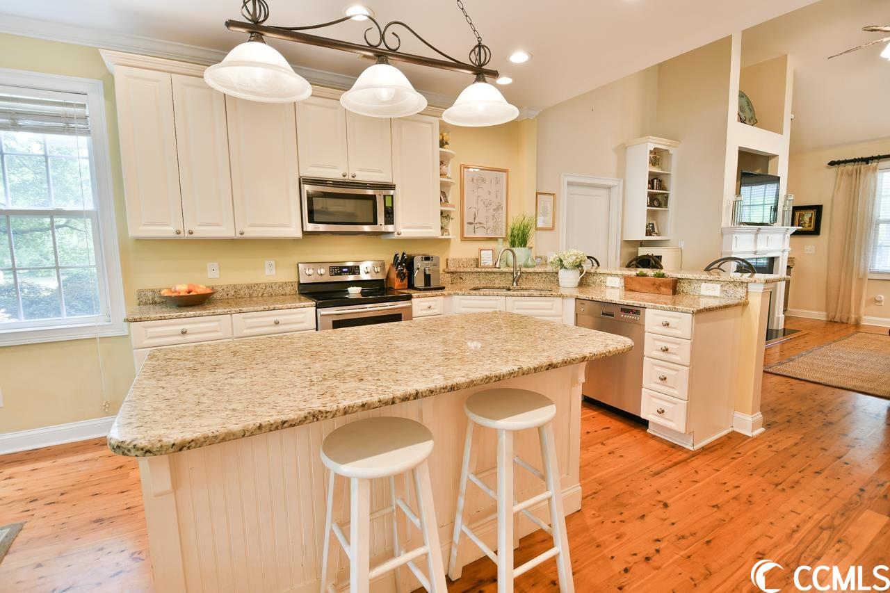 Welcome to 97 Arcadia Road in Pawleys Island's ""Hagley Estates"" community. This 3 bed / 3.5 bath home has an open floor plan with a large master suite on the ground floor and a bonus 4th room above the garage! As you enter the home, you will immediately appreciate the beautiful Australian cypress flooring throughout. With stainless appliances, a large center island, barstool seating and granite counters, the kitchen is well-equipped for cooking and entertaining guests. The living room has tall, vaulted ceilings, a gas fireplace and a wet bar with an ice maker and a wine cooler. From the living room, you can access the large screened porch and private back yard, which are great extensions of the total living area. The master suite is spacious and features a walk-in closet, a huge shower with glass doors, double vanity sinks and a whirlpool tub. Upstairs offers two bedrooms, a full bathroom and a loft that could be used as a play area, office, or additional sitting area. The bonus room (or optional 4th bedroom) above the garage is extremely spacious and has heart pine flooring and its own full bathroom, making it a great option for accommodating guests and extended family. 97 Arcadia is on a corner lot with irrigation, mature landscaping and has an oversized garage with lots of space for vehicles and storage. The home is only 1 mile from the Hagley boat ramp at the intracoastal waterway and 2 miles from Pawleys Island beach, which are both accessible by golf cart. Recent upgrades include 2 new HVAC units and a new roof in 2019. Don't miss this opportunity to own an incredible home in one of Pawleys Island's most sought-after locations and neighborhoods.