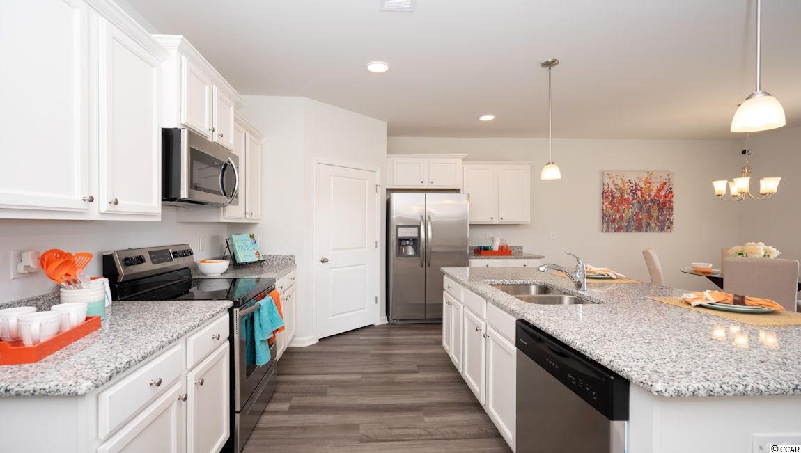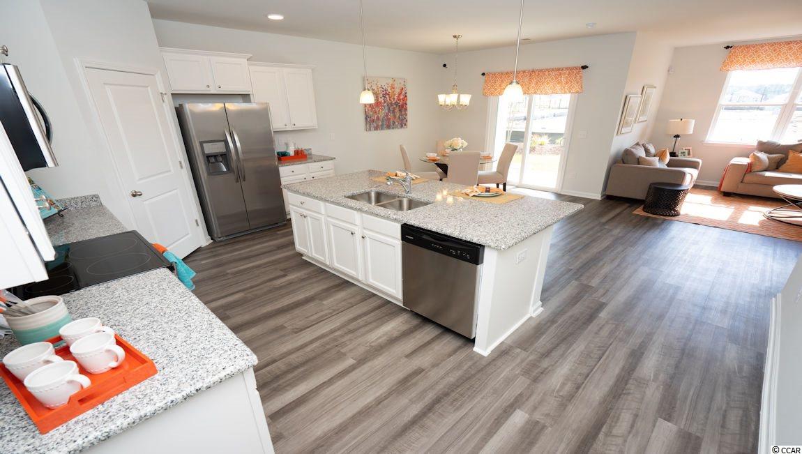 Our Cali plan is the perfect one level home with a beautiful, open concept living area for entertaining. The kitchen features granite countertops, oversized island, 36"" staggered cabinets, walk-in pantry, and stainless appliances. The large owner's suite is tucked away at the back of the home, separated from the other bedrooms, with double vanity and 5' walk-in shower in the private master bath. Low maintenance rigid core board flooring in the main areas, baths, and laundry gives the look of wood with easy care and cleanup! Spacious covered rear porch adds additional outdoor living space. Ask about our Home Is Connected package! *Photos of a similar Cali plan. (Home and community information, including pricing, included features, terms, availability and amenities, are subject to change prior to sale at any time without notice or obligation. Square footages are approximate. Pictures, photographs, colors, features, and sizes are for illustration purposes only and will vary from the homes as built. Equal housing opportunity builder.)
