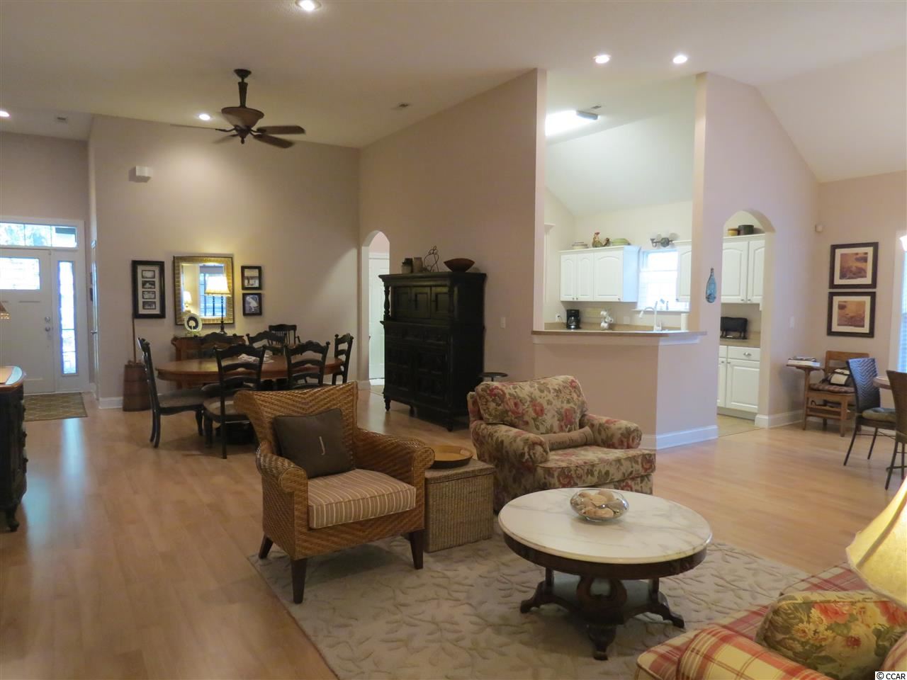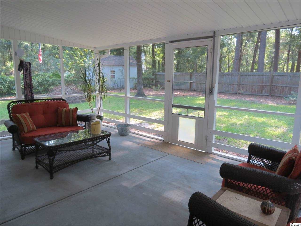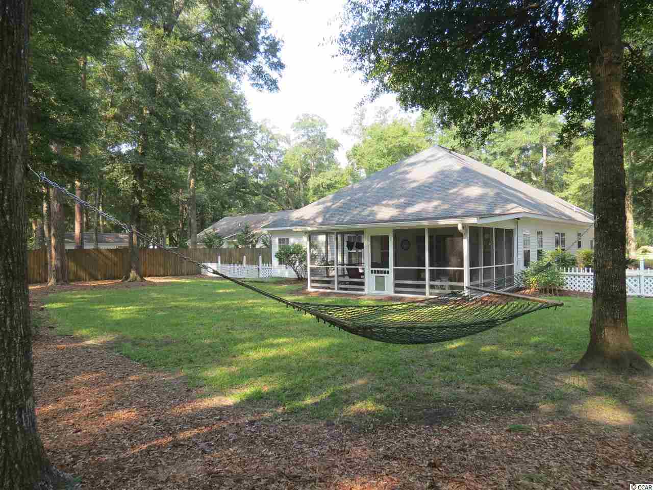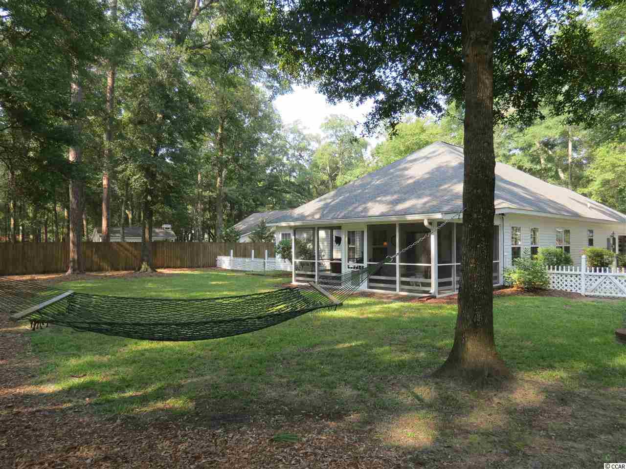 Hagley Estates, Old Plantation Drive, Pawleys Island. Adorable open floor plan low country style home with upgraded landscaping and fenced back yard. Home features 12 ft. ceilings throughout , recess lighting, 20.6 x 11.11 Carolina room, breakfast area off kitchen, new carpet, fresh paint, new kitchen faucet, new fixtures, shelving in garage, new gutters and new irrigation pump on lawn well. Screened porch with new treated post and new concrete floors. Tile floors in bathrooms, trey ceiling in Master Bedroom, two car garage, lots of storage plus floored attic storage. This home is in excellent condition, clean as a whistle and ready to move into.