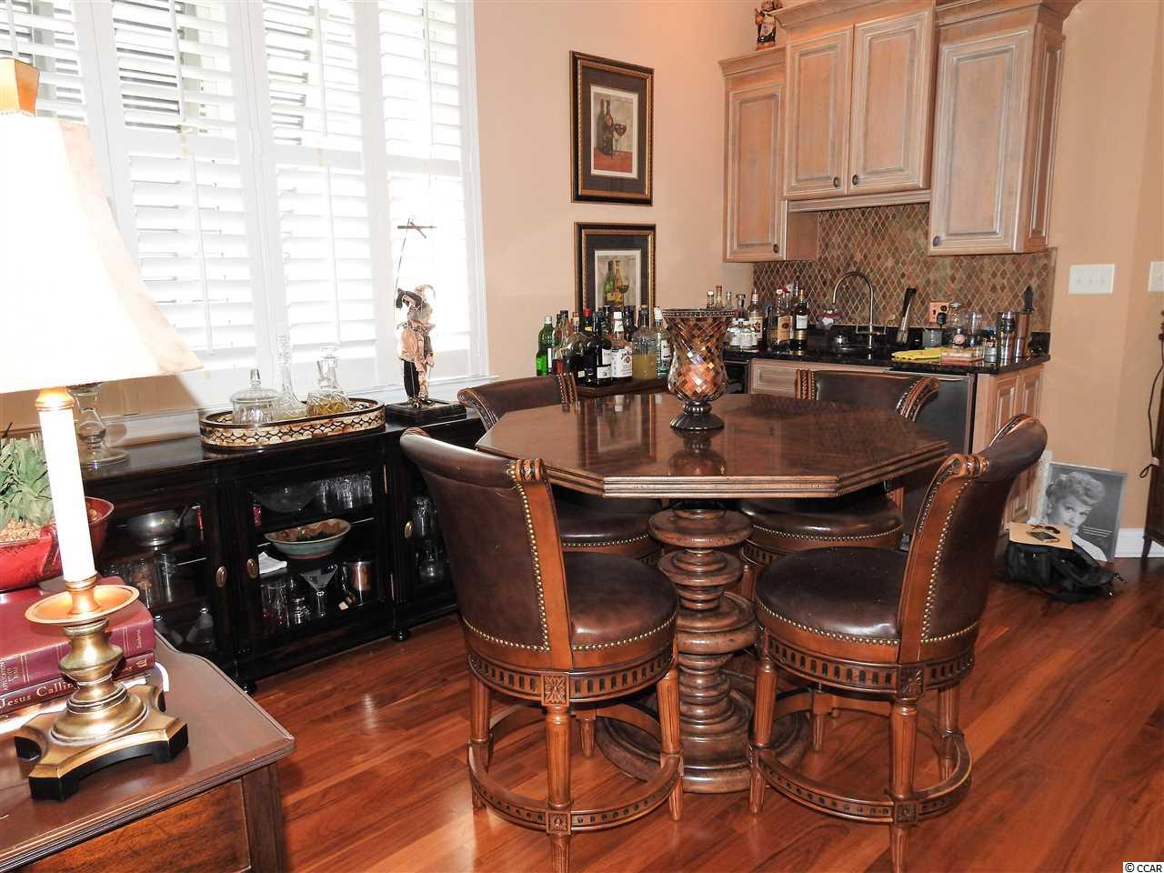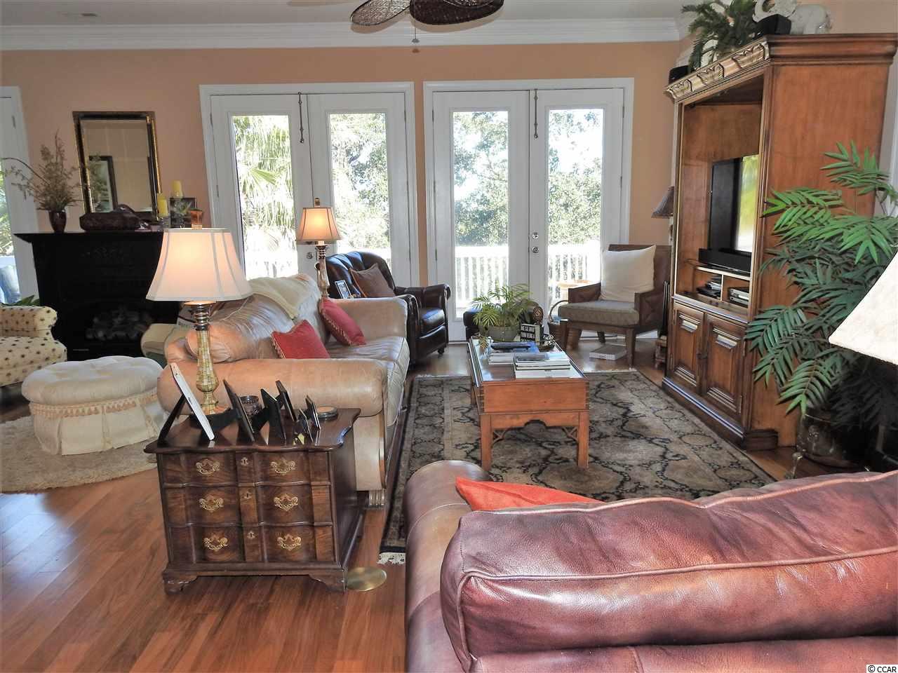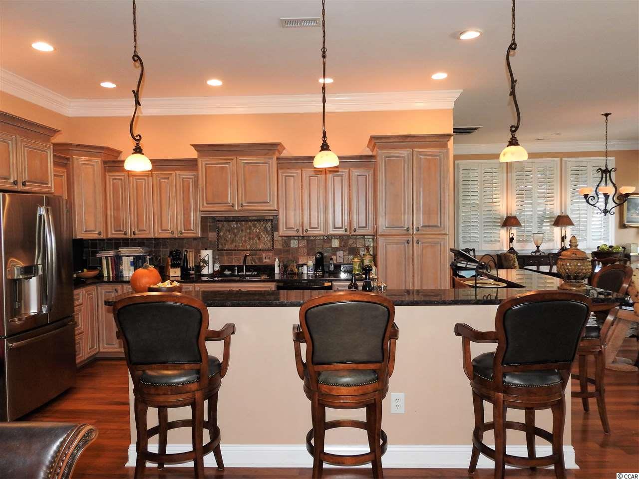 From either of the two spacious decks enjoy an amazing view of the beautiful salt water marsh and the ocean waves breaking through the jetties between the Litchfield Peninsula and historic Pawleys Island. Watch dozens of species of birds living in the natural bird sanctuary provided by the marshland. All three levels of this four bedroom/3.5 bath home are served by an oak paneled elevator providing easy access to each floor. On the top floor with its ten-foot ceiling and crown molding, youll find the living and dining areas that include a built-in wet bar. A gas fireplace provides a warm cozy atmosphere in the winter season. The kitchen features plenty of granite countertop space with stainless-steel appliances and custom-built cabinets. There is also a second master suite with master bath and walk-in closet which provide luxurious accommodations for overnight guests. On the second floor you will find the main entrance foyer leading to two roomy guest bedrooms, a guest bath and the master bedroom suite that stretches across the entire ocean view side of the home. Relax in a spacious sitting area or take in the ocean views from the screened porch. There is plenty of closet space with twin butler closets plus a walk-in closet. The master bath includes a large jet tub, twin sinks and a stand-up shower. The three-car garage includes a kitchen sink with extra cabinets and two storage rooms. On the back patio is a permanent outdoor gas grill leading out to the entire yard which is adorned with extensive landscaping creating a botanical garden feeling. There is a separate water meter to serving the inground irrigation system to keep the landscape looking lush and fresh. Plantation shutters provide the interior window treatment while working Bahama and Colonial shutters provide outdoor protection. This home is in the Litchfield Breezes community which is just three miles away from Brookgreen Gardens, the largest outdoor sculpture garden in the world. Sea turtles nest in protected areas on the beach where conscientious neighbors quietly watch over their protected nesting locations. The beach stretches for six miles making a paradise for bathers, walkers and runners. Watching the moon rise over the ocean is a popular evening activity. Myrtle Beach, one of the country's top tourist destinations, is only a twenty-minute drive to the north and historic Charleston is just 70 miles to the south. Make this part of South Carolina your new destination to create your own treasured family memories. Property on termite bond with TERMINIX