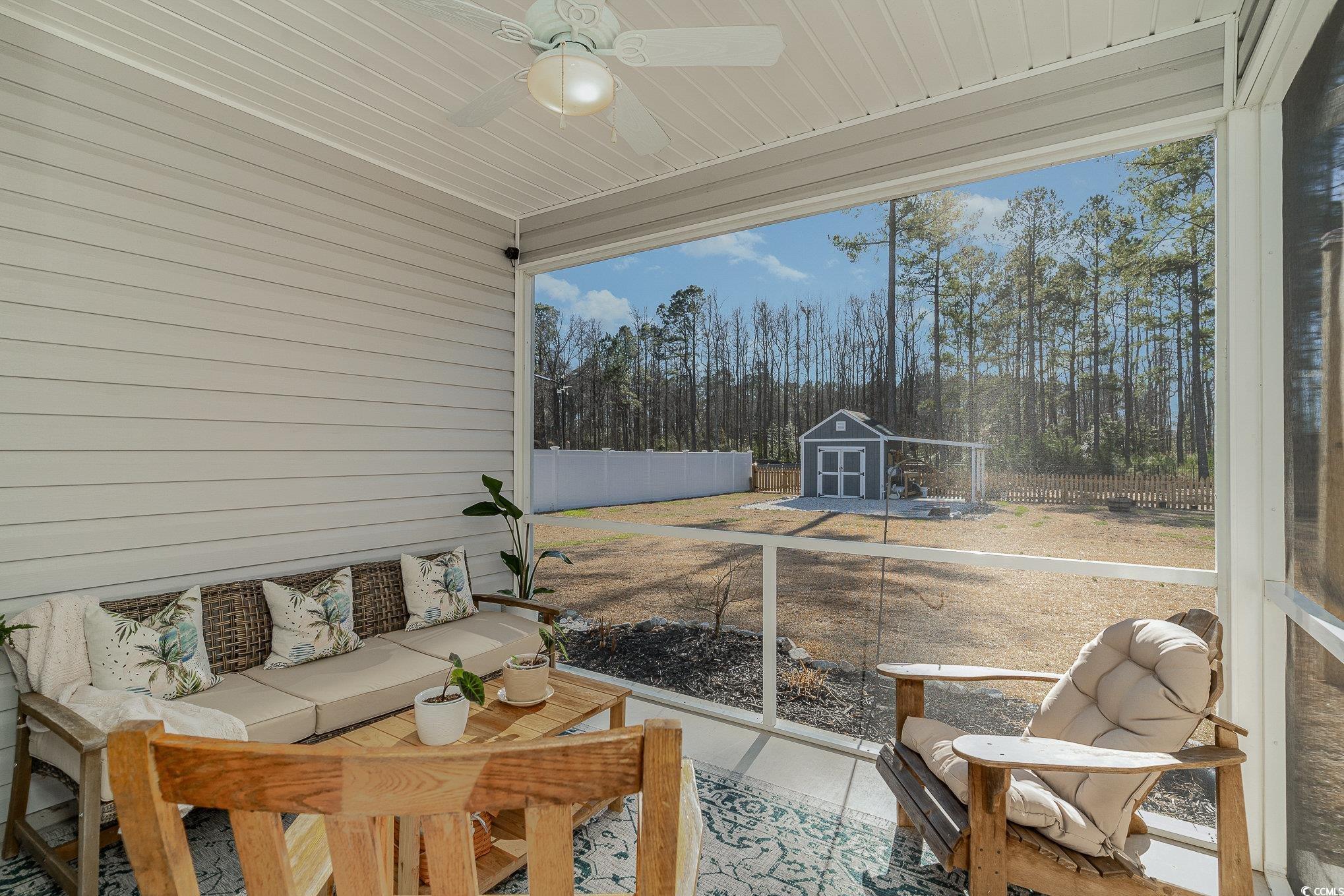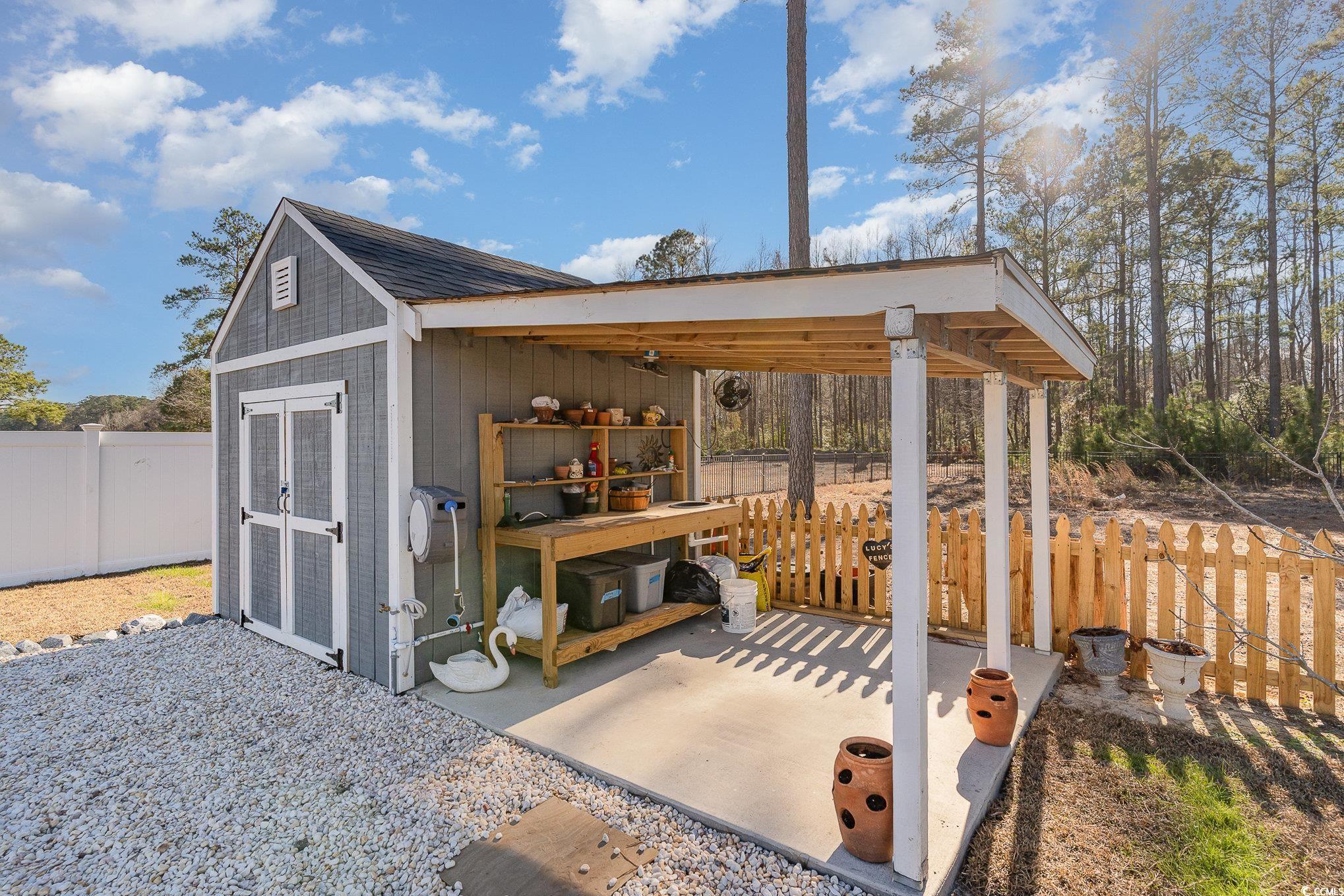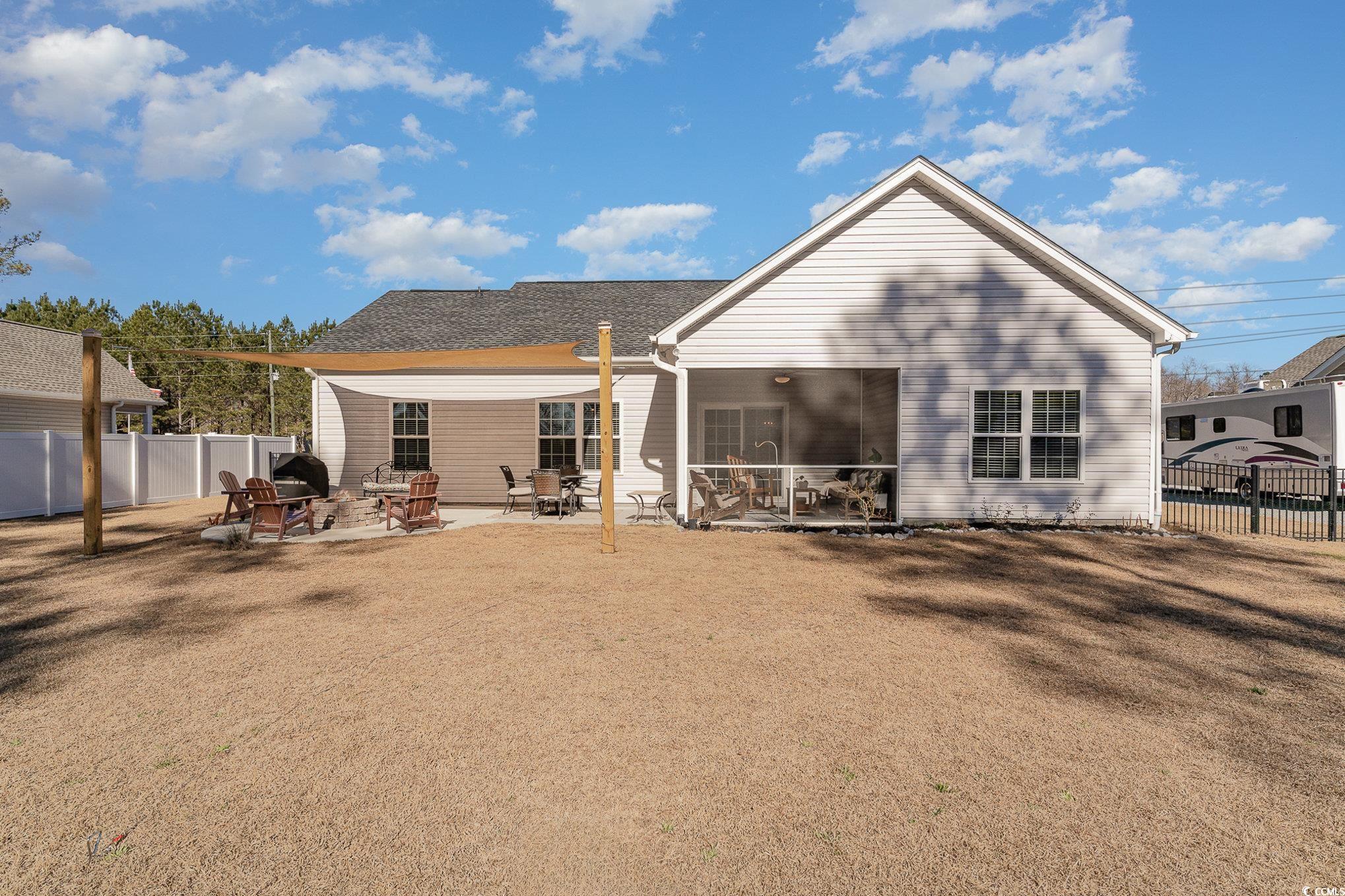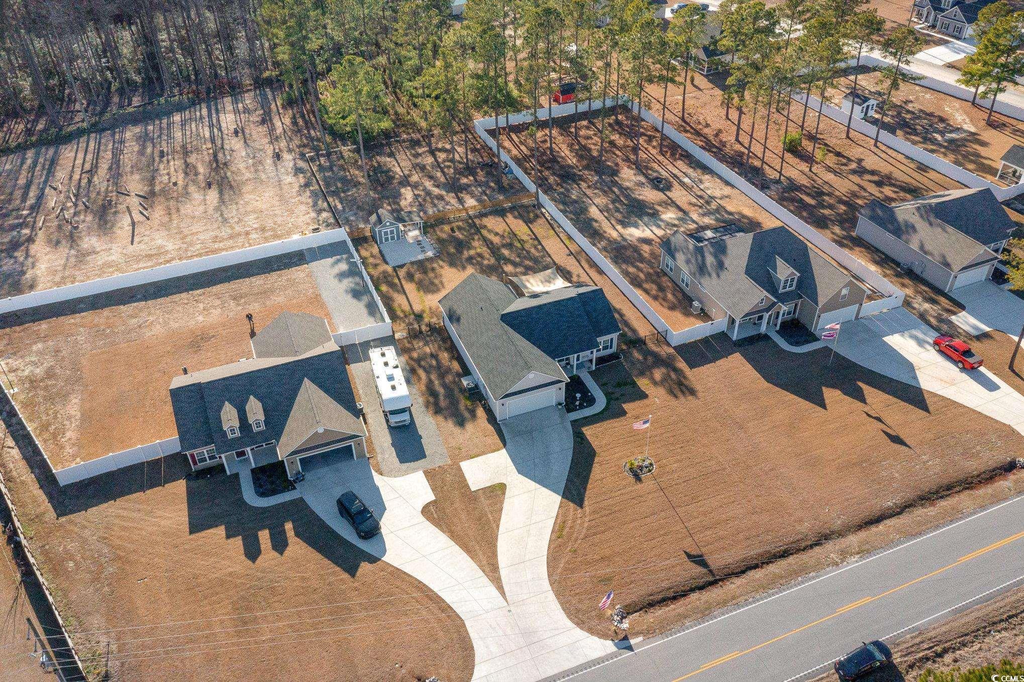 Welcome to this beautifully crafted 3-bedroom, 2-bathroom home, built in 2023 and situated on a spacious 0.76-acre lot in the sought-after Mt. Pillar Estates. From the welcoming front porch to the thoughtfully designed interior, this home combines modern elegance with everyday functionality. As you step inside, you'll find a formal dining room with a tray ceiling and arched entryway, flowing seamlessly into the open living area featuring vaulted ceilings and a ceiling fan. The kitchen is equipped with granite countertops, stainless steel appliances, a breakfast bar, recessed lighting, and has a charming breakfast nook. Sliding glass doors from the nook lead to a screened-in porch and a large concrete patio with a shaded area and a fire pit, perfect for outdoor gatherings. The owners suite is situated in the rear of the home with vaulted ceilings, a ceiling fan, a spacious walk-in closet, and an ensuite bath that includes double sinks, a large vanity, a walk-in shower, a linen closet, and plenty of natural light. Two additional bedrooms, both with ceiling fans, are conveniently located near the guest bath. A large pantry is located in the laundry room. Luxury Vinyl Plank (LVP) flooring runs throughout the living areas and bathrooms, while carpeting adds comfort to the bedrooms. The two-car garage features an epoxy-coated floor, built-in shelving, and pull-down stairs for attic storage. The outdoor space is impressive with a fully fenced yard, an irrigation system, and a 10x10 shed equipped with electricity and water. This home offers the tranquility of small-town living while being just minutes from downtown Loris, the Nature Park, shopping, dining, and medical facilities. Combining modern design with exceptional functionality, this home is the perfect place to live, entertain, and relax. Schedule your showing today!***Be sure to ask about special interest rate***