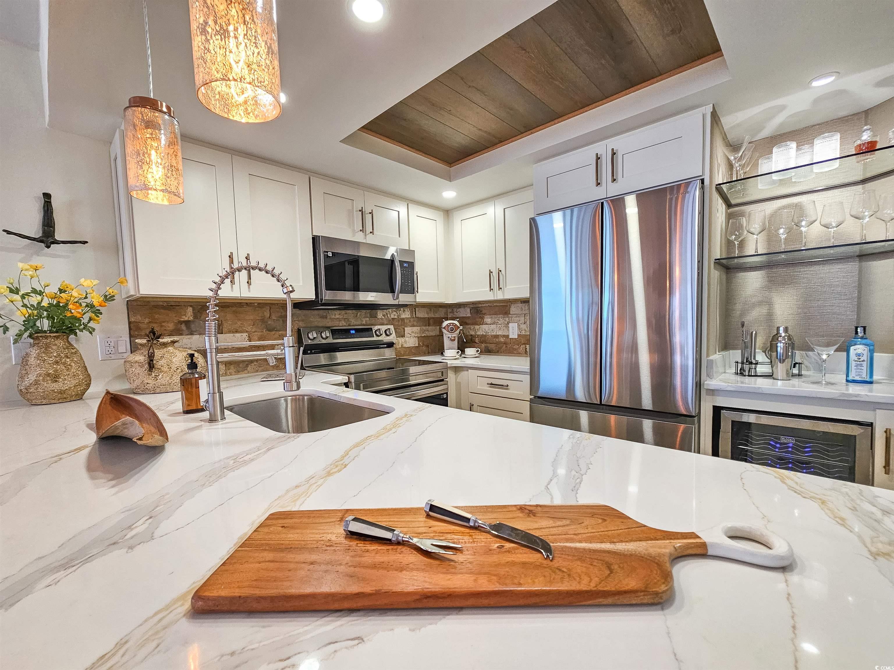 ***BE SURE TO WATCH THE VIRTUAL WALK-THRU VIDEO INCLUDED WITH LISTING*** Refined yet easy. Elegant but unfussy. You'll be mesmerized by this completely renovated and professionally decorated three bedroom, oceanview residence. As stunning as it is, you won't feel like you can't put your feet up. It's just that comfortable. There isn't anything that hasn't been touched. New flooring, molding, paint, doors, hardware, lighting, kitchen, bathrooms... on and on and on!! Couple that with a tasteful dcor that will withstand the test of time. 20 years from now, this style still won't look dated. The bedrooms are spacious. You'll find two queen beds in each of the guest bedrooms. It's also a lockout, whereas you can use or rent it as a three bedroom, or break it up to a one bedroom and a two bedroom; offering you the ultimate in flexibility. Kingston Plantation is a 145-acre, master planned community in the heart of Myrtle Beach. Kingston offers a combination of amenities and preserved natural environment that's unparalleled. One-half mile of white sand beach, twelve acres of freshwater lakes and mature trees, all surrounded by beautifully manicured grounds. The Plantation offers amenities such as a magnificent Spa and Fitness Center, four clay and hard surface tennis courts, four pickleball courts, multiple pools, badminton, croquet, beach volleyball and much more! Kingston offers a selection of one, two, three and four bedroom villas, townhomes, lakefront lodges and oceanfront high-rises through the community. Use of developer-owned amenities is subject to change.