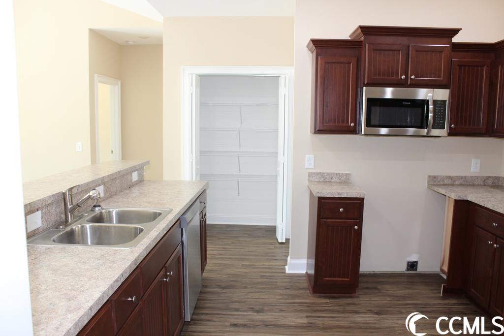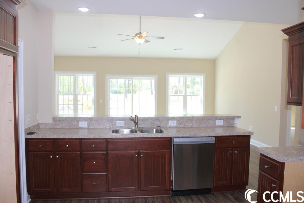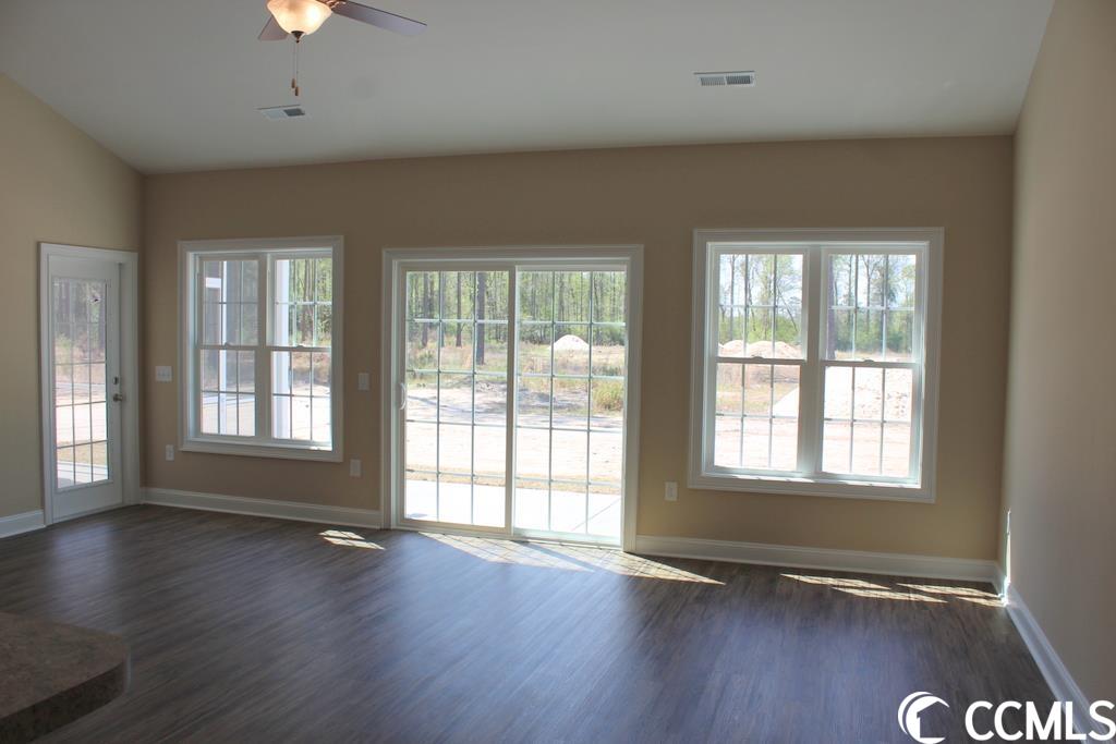 .63 acres, premium lot, with No HOA. Basic Deed Restrictions. Can park your RV or Boat on your property. Open floor plan with a formal dining room that has a tray ceiling, the living room has an abundance of windows, a vaulted ceiling with a ceiling fan. The kitchen has solid wood cabinets with crown molding and knobs, a large pantry closet, stainless steel appliances include a microwave, dishwasher, and electric range. Enjoy this split bedroom floor plan which features a luxurious master bedroom with a tray ceiling with a fan and light. The en-suite has a raised-height double vanity and a large walk-in closet, a garden tub and separate shower. Stunning luxury vinyl plank flooring thru-out the common living areas with waterproof vinyl in the bathrooms and laundry room, and carpet in the bedrooms. Blinds package is included. 30-year architectural roof shingles, Interior trim included 3 1/4"" inch casings and 5 1/4"" baseboards throughout. Low E glass windows. Spacious finished and painted, sideload 2-car garage with automatic door openers, keypad, windows with blinds, and pull-down stairs to floored attic storage. Gutters, sodded and landscaped yard, with irrigation system. Enjoy the peace and quiet of small-town living, conveniently located and just minutes from downtown Loris, Nature Park, shopping, restaurants, and hospital. Desired Green Sea Floyds school district! Video is for illustrative purposes only and may be of a similar house built elsewhere. Square footage is approximate and not guaranteed. The buyer is responsible for verification.